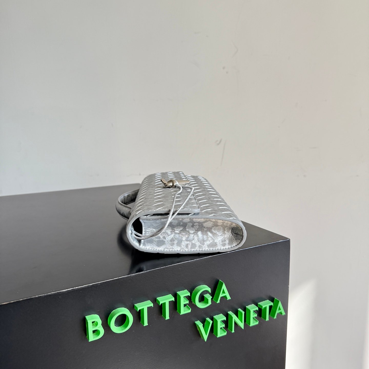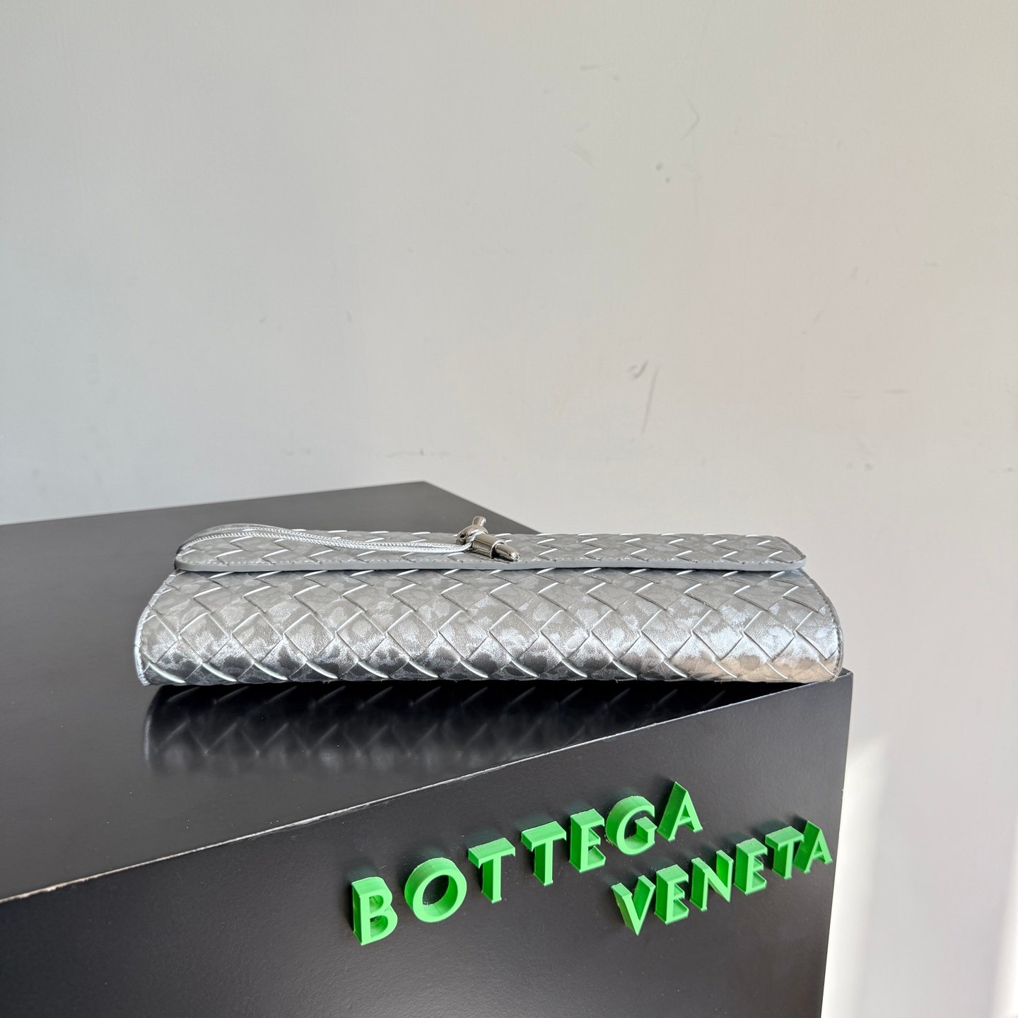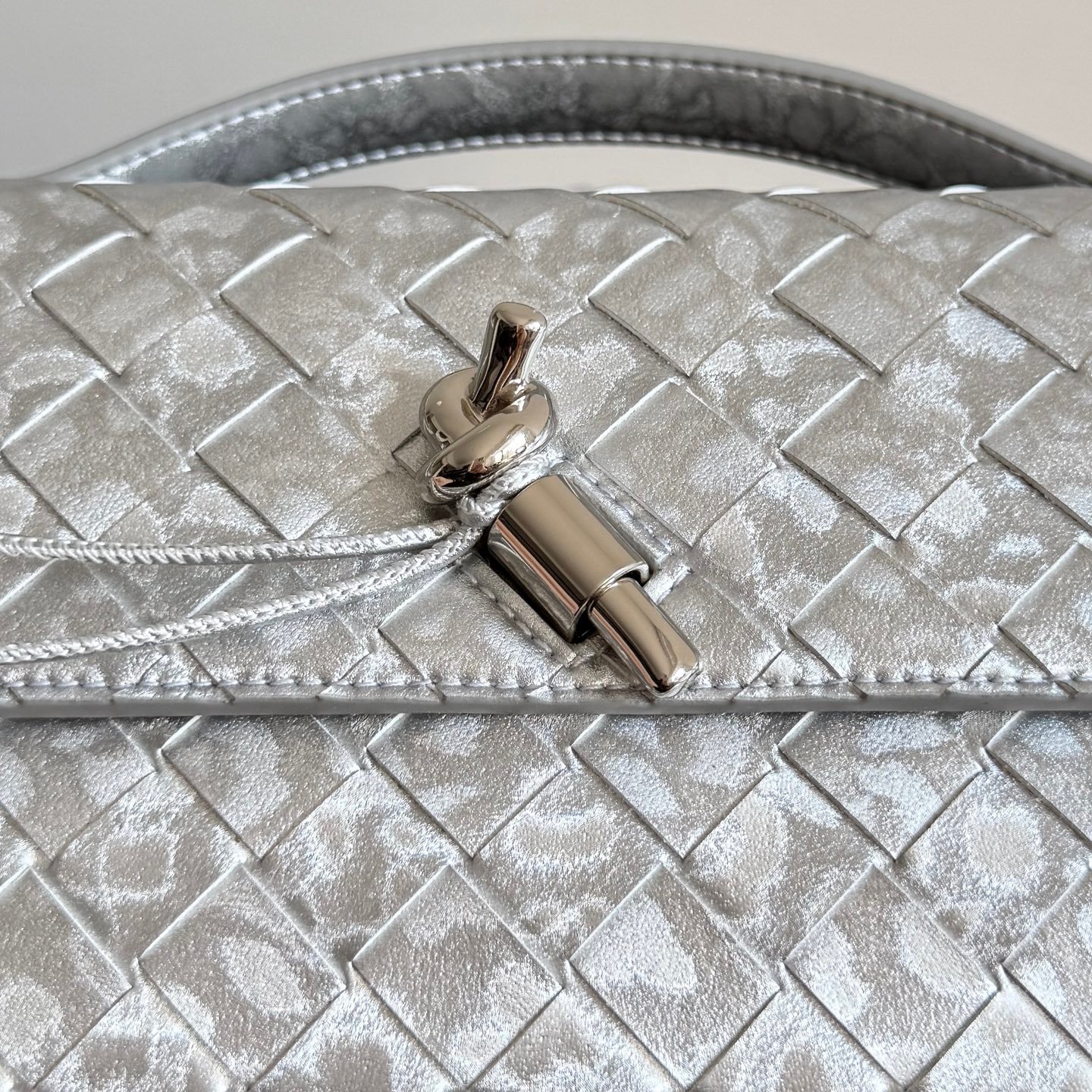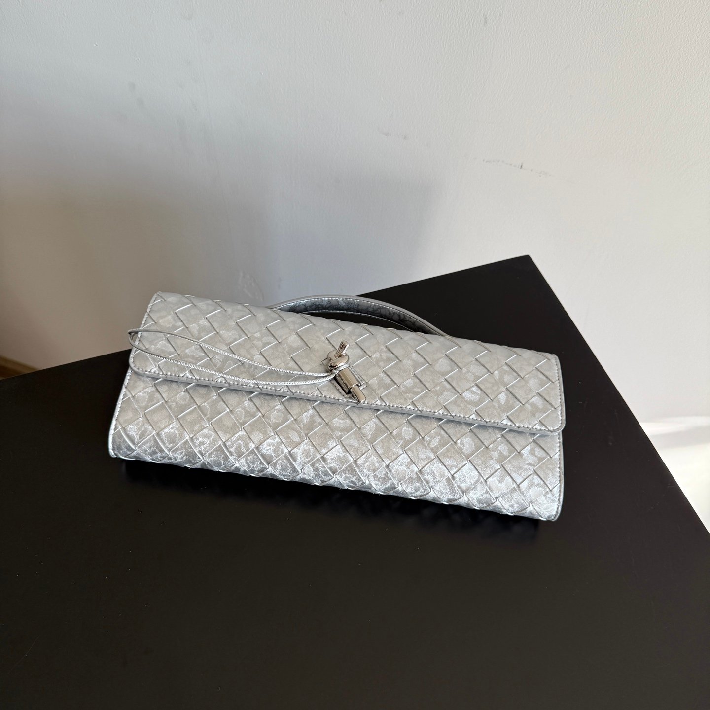 Clutch de piel Intrecciato con asa superior y cierre de nudo metálico