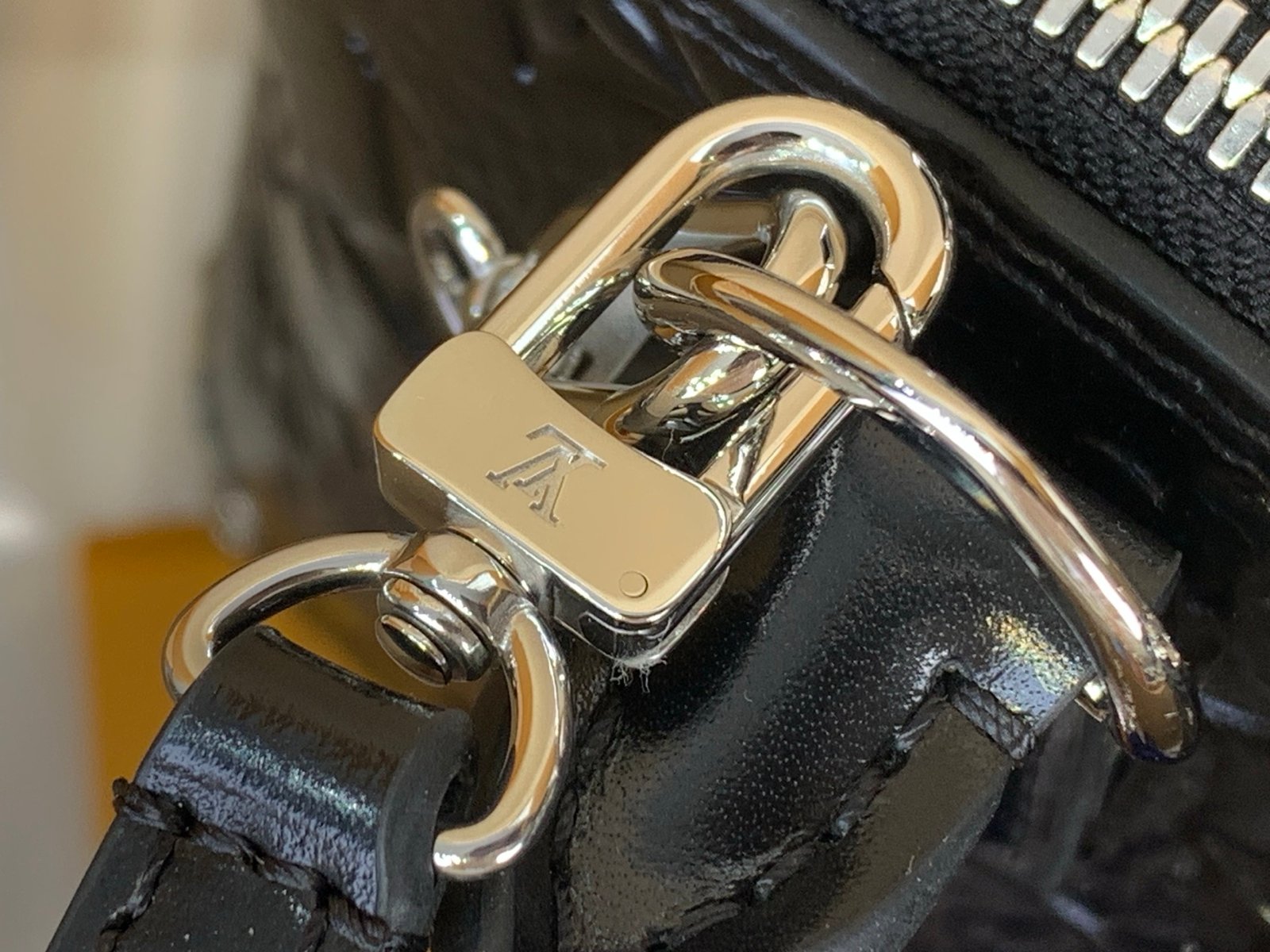 - Capacidad suficiente para un teléfono móvil de 6,7″, un monedero Rosalie, auriculares, llaves y un labial
