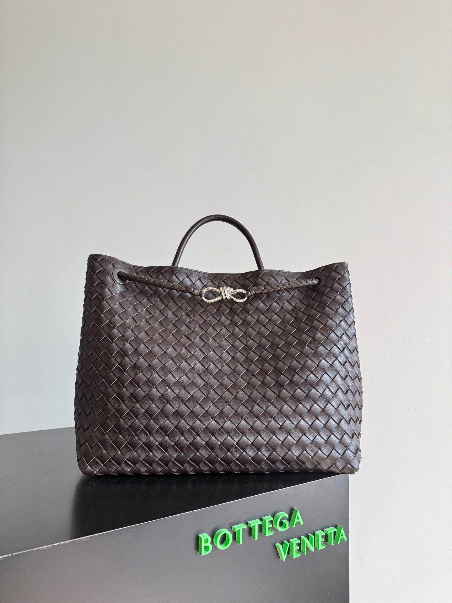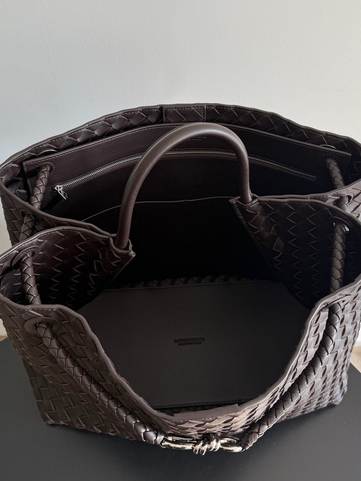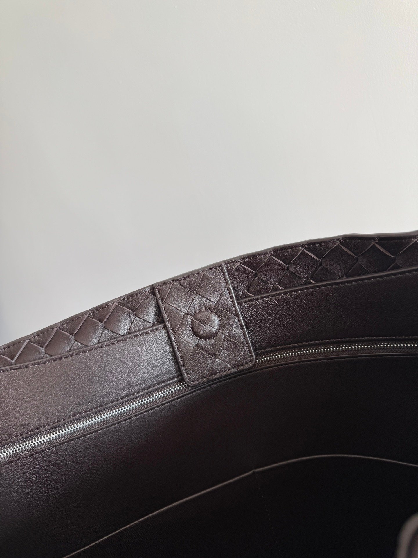 Bolso de asa superior de piel Intrecciato grande con correa transversal deslizante