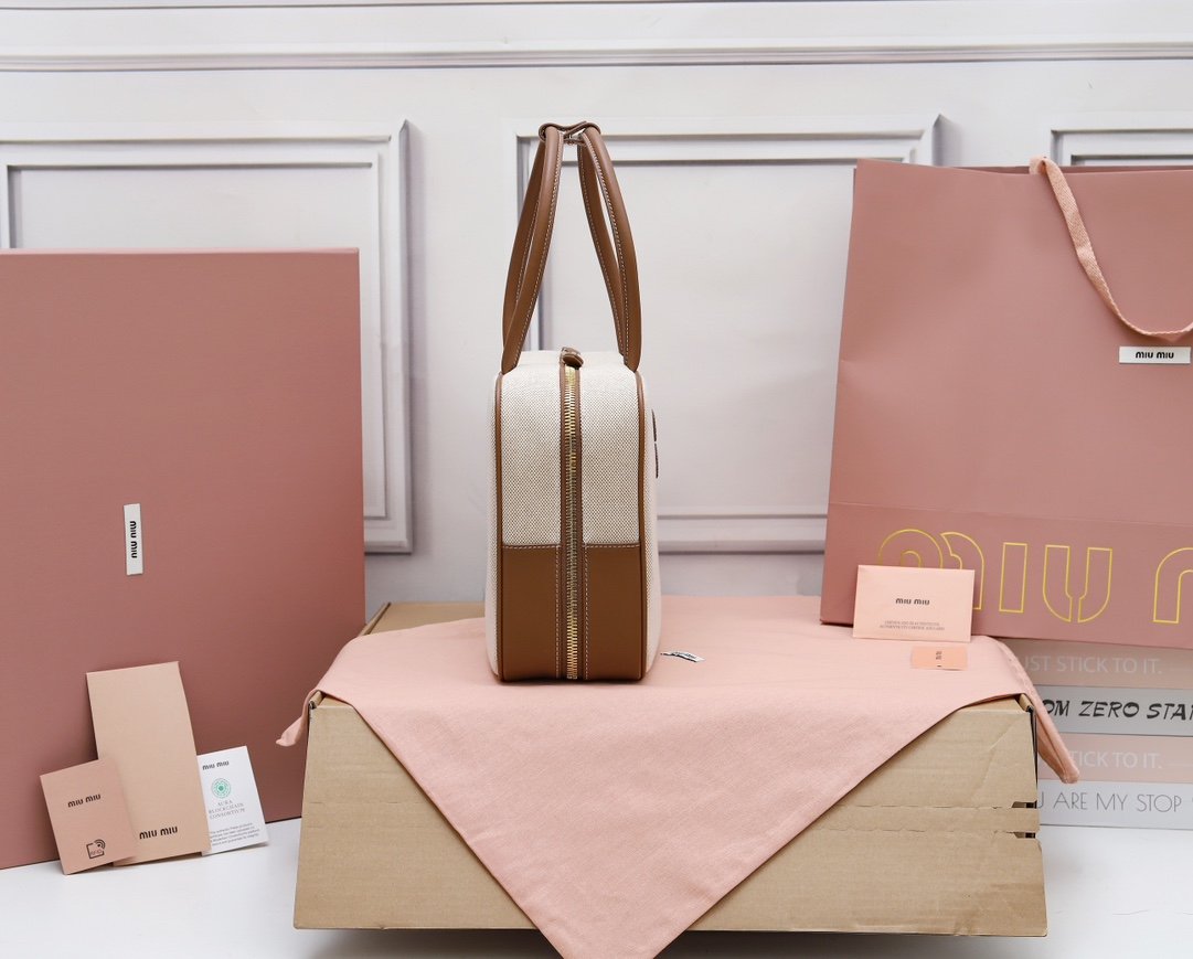 - Cierre de cremallera. Interior de lino con bolsillo con cremallera doble.