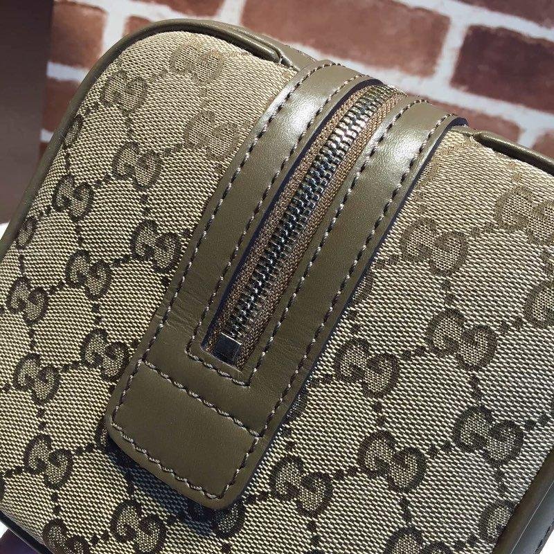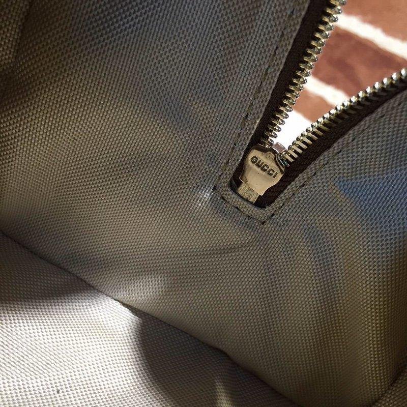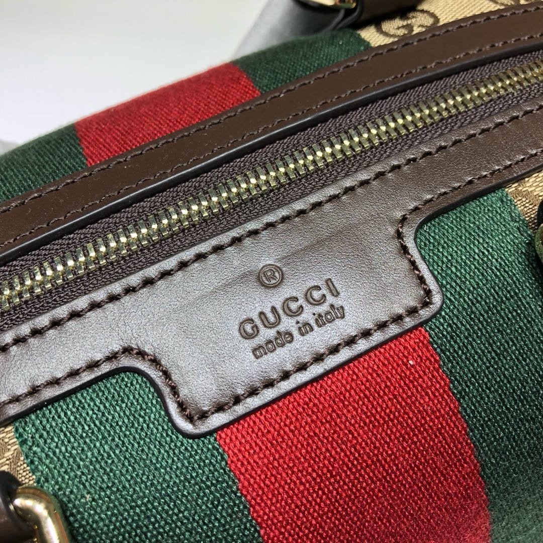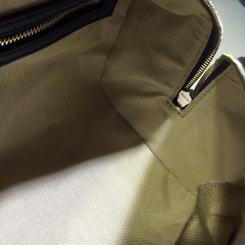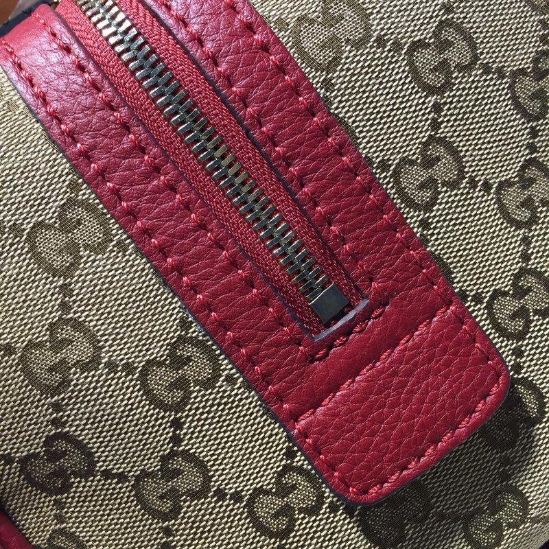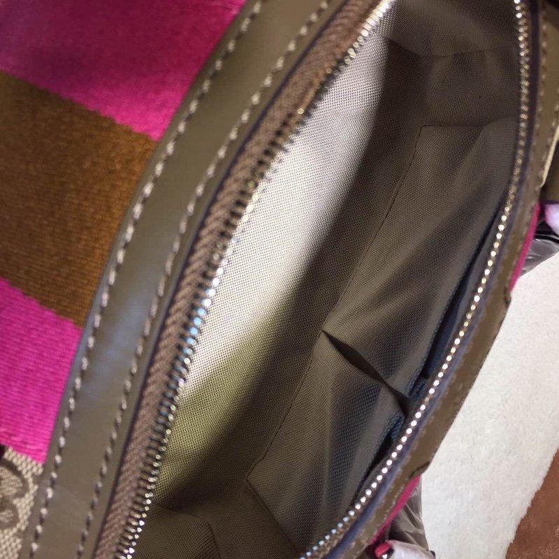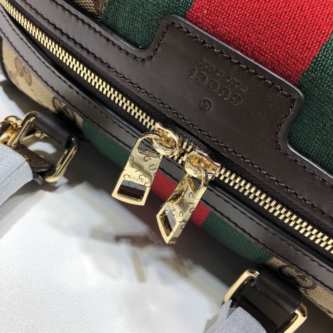 .Lona GG original beige / ébano con tribanda verde y roja y adornos de cuero marrón