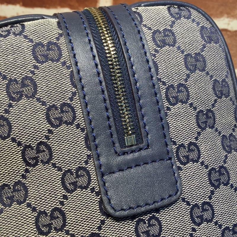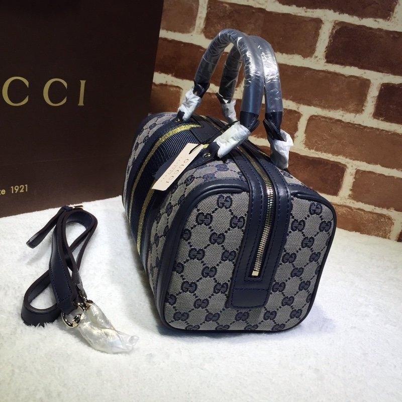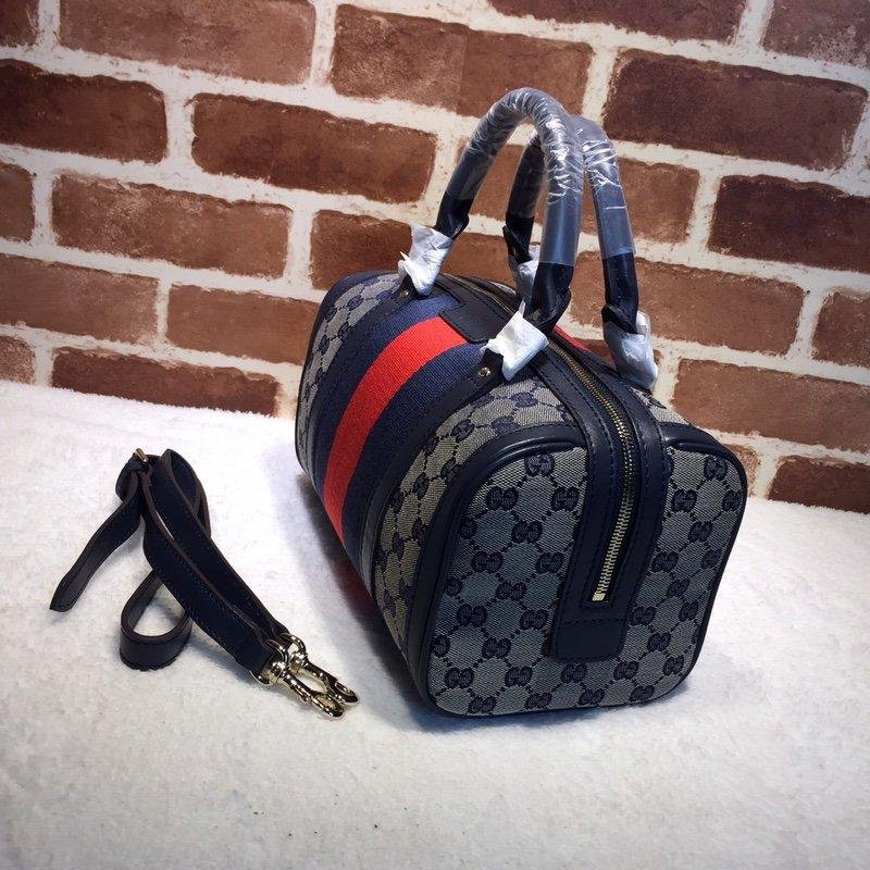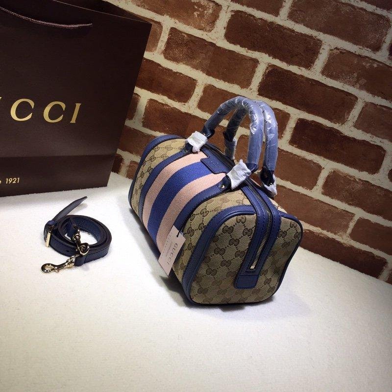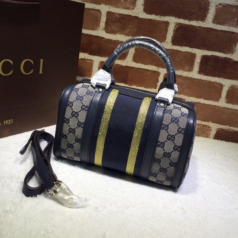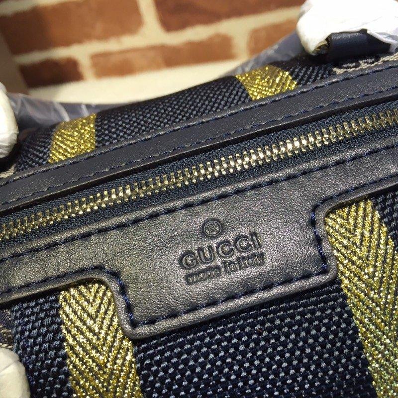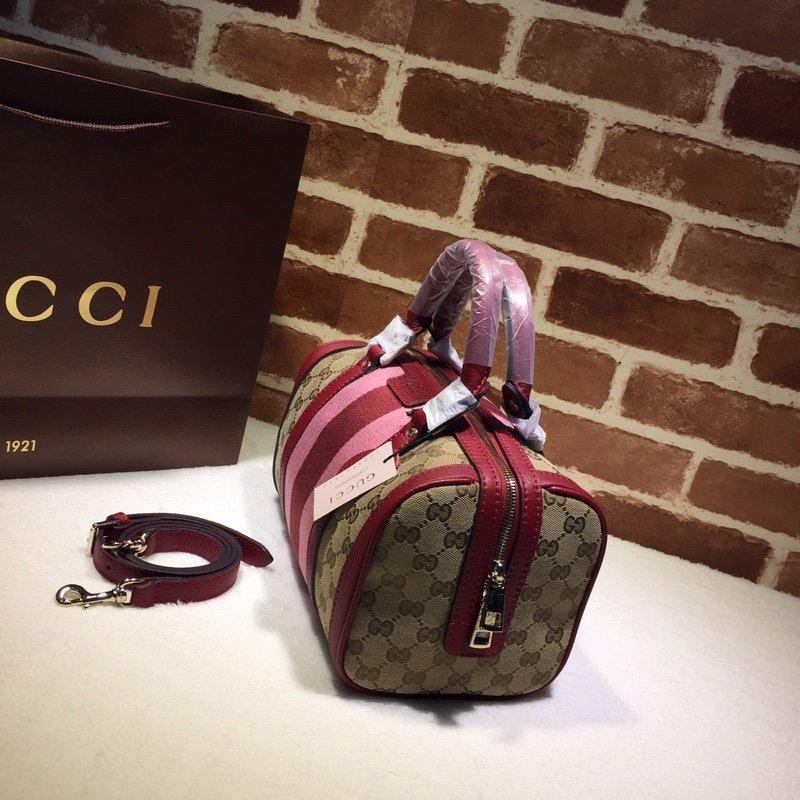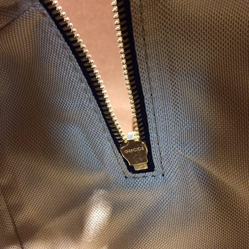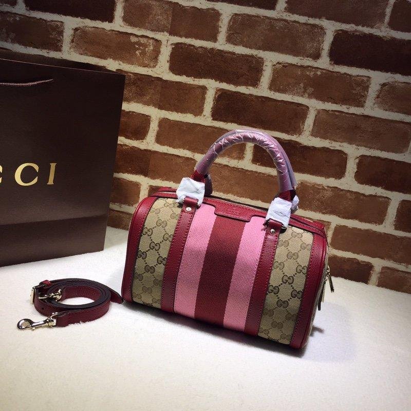 .Lona GG original beige / ébano con tribanda verde y roja y adornos de cuero marrón