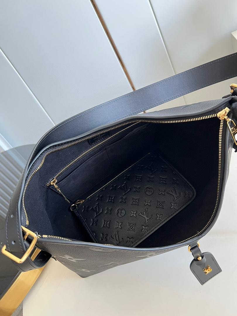 •    Cartera de mano extraíble con cremallera, acoplada con un cordón en piel