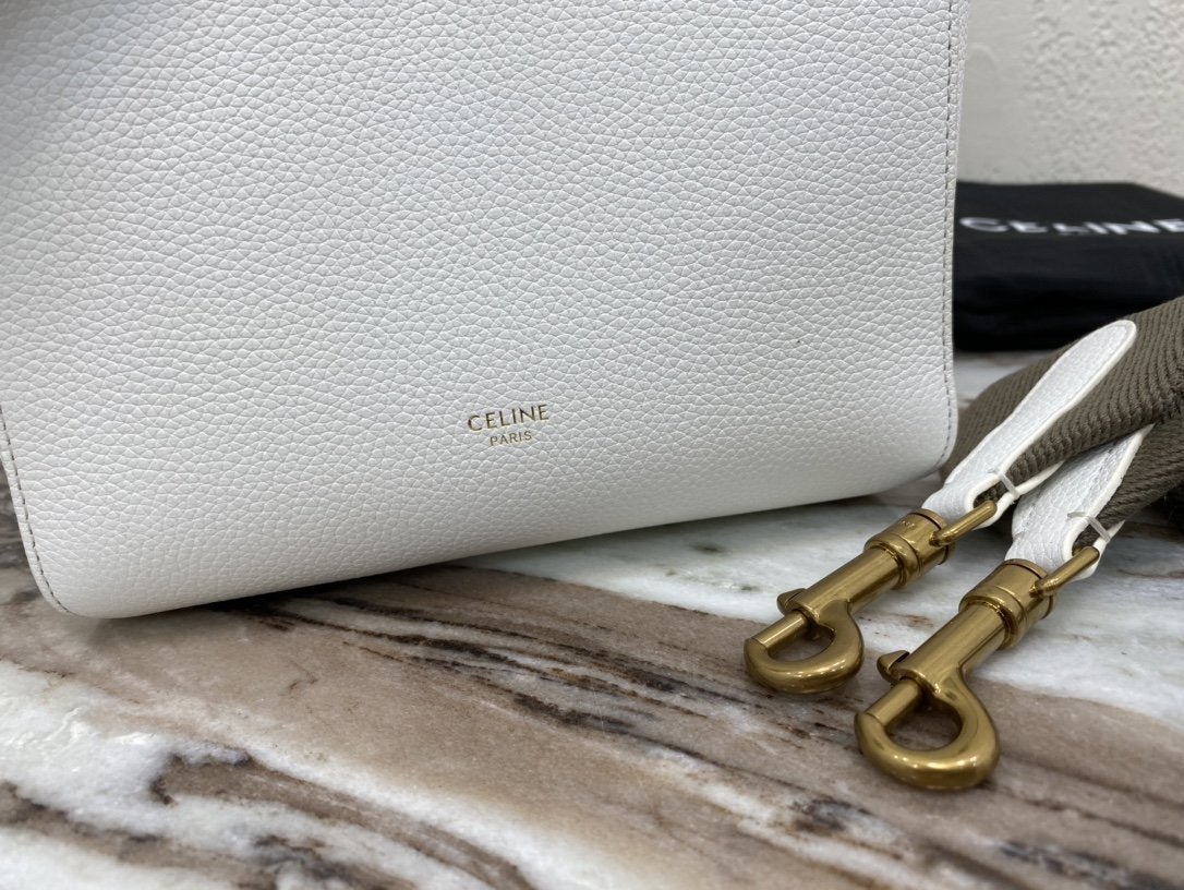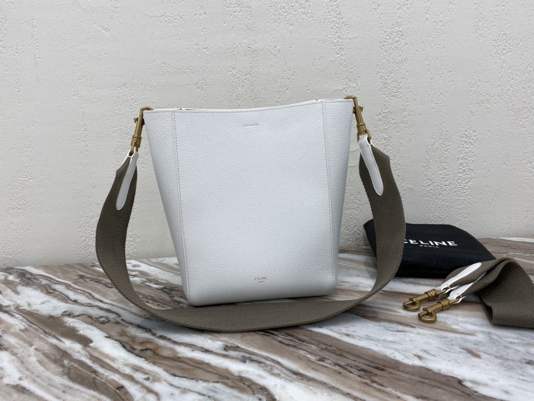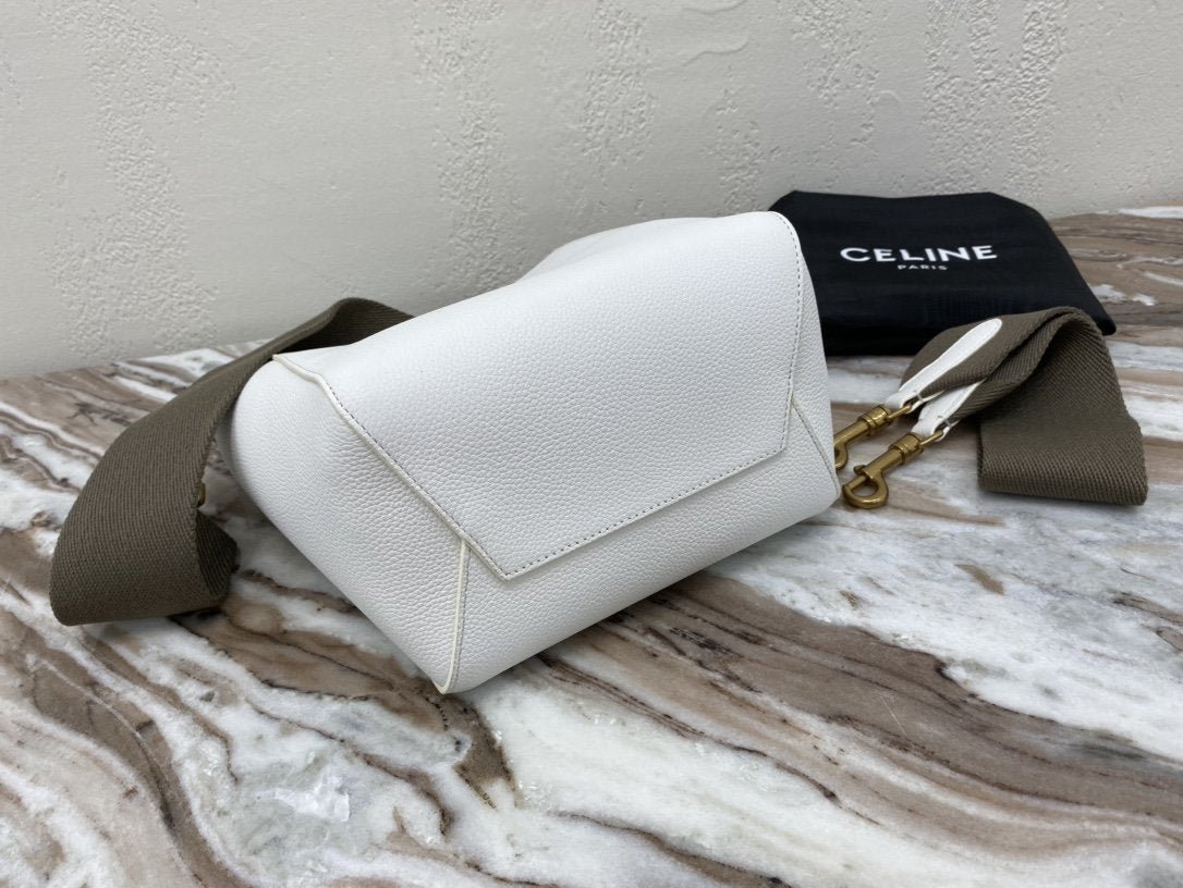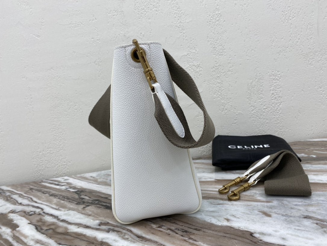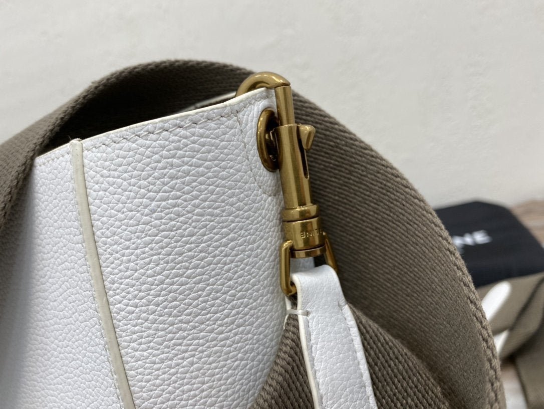 BOLSO CUBO SANGLE PEQUEÑO DE PIEL  SUAVE CON TEXTURA GRANULADA, BANDOLERA DE LANA DESMONTABLE Y CIERRE MOSQUETÓN INTERIOR.