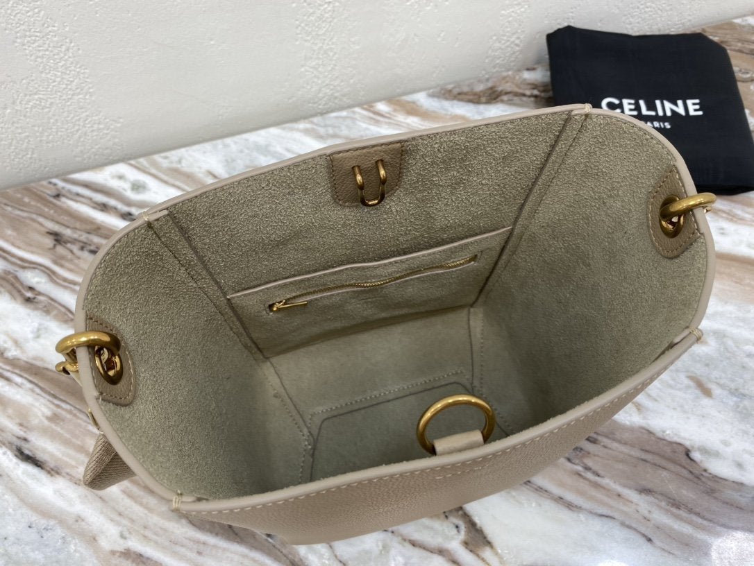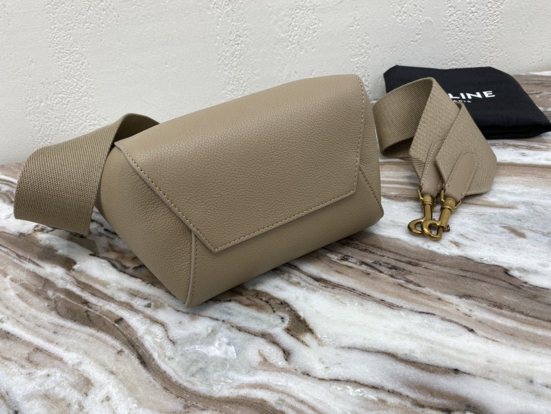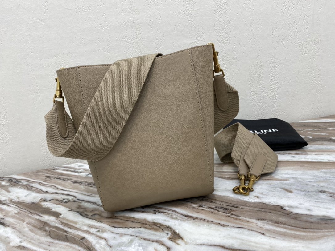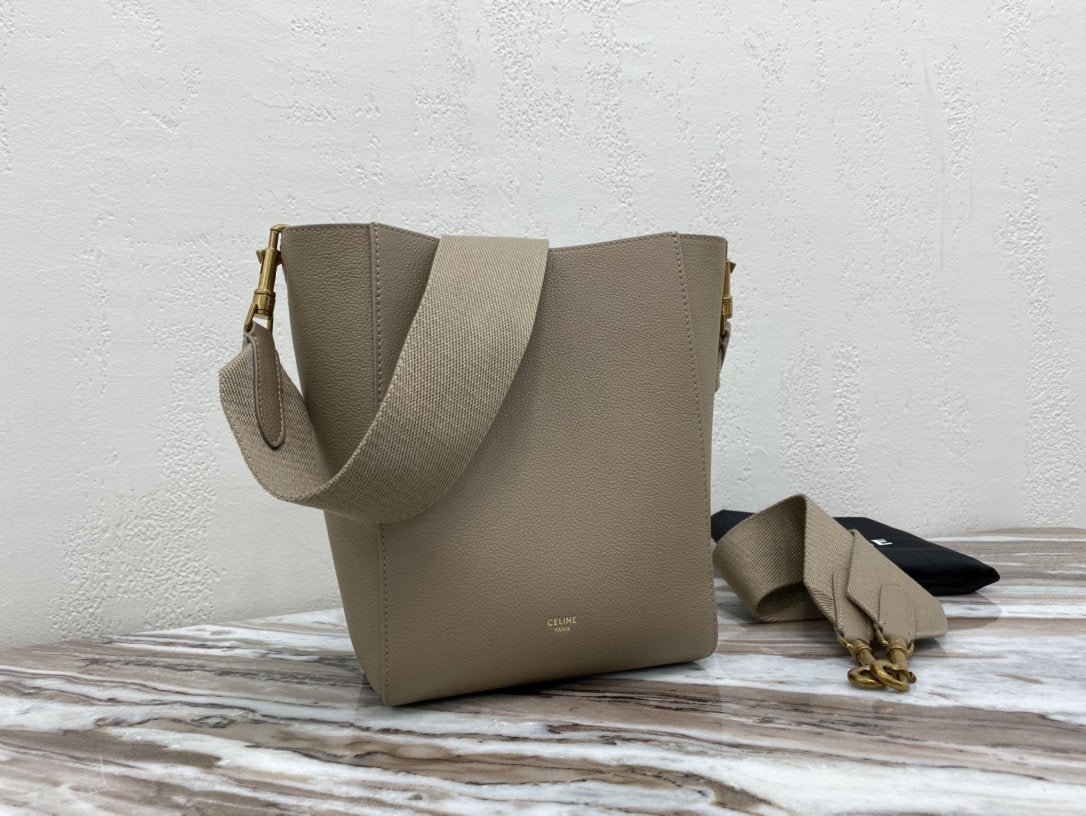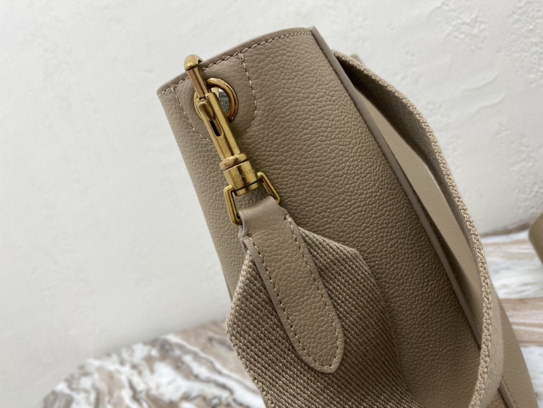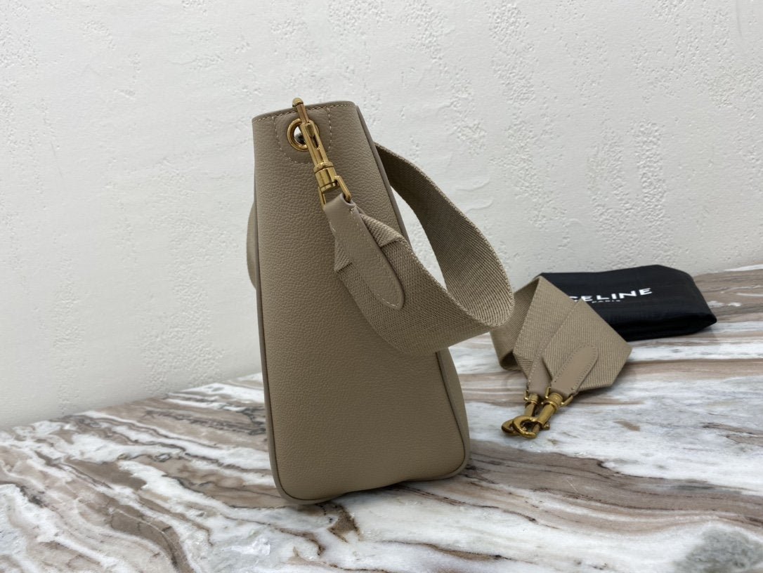BOLSO CUBO SANGLE PEQUEÑO DE PIEL  SUAVE CON TEXTURA GRANULADA, BANDOLERA DE LANA DESMONTABLE Y CIERRE MOSQUETÓN INTERIOR.