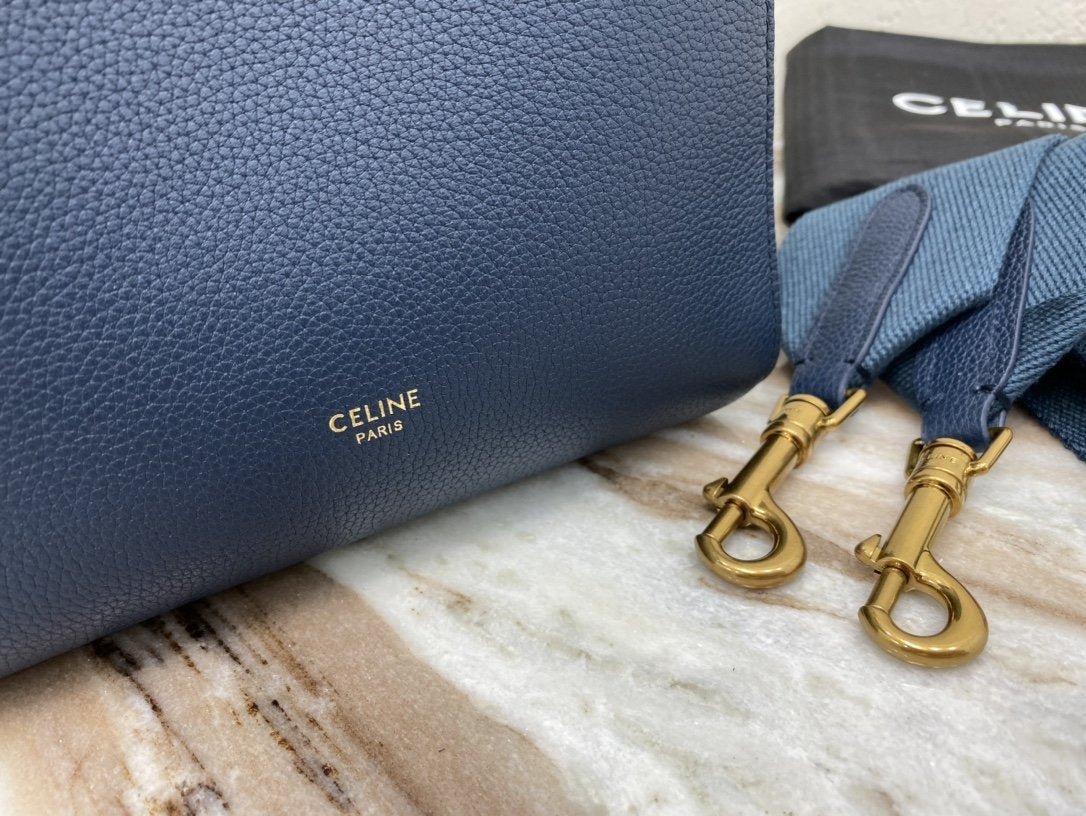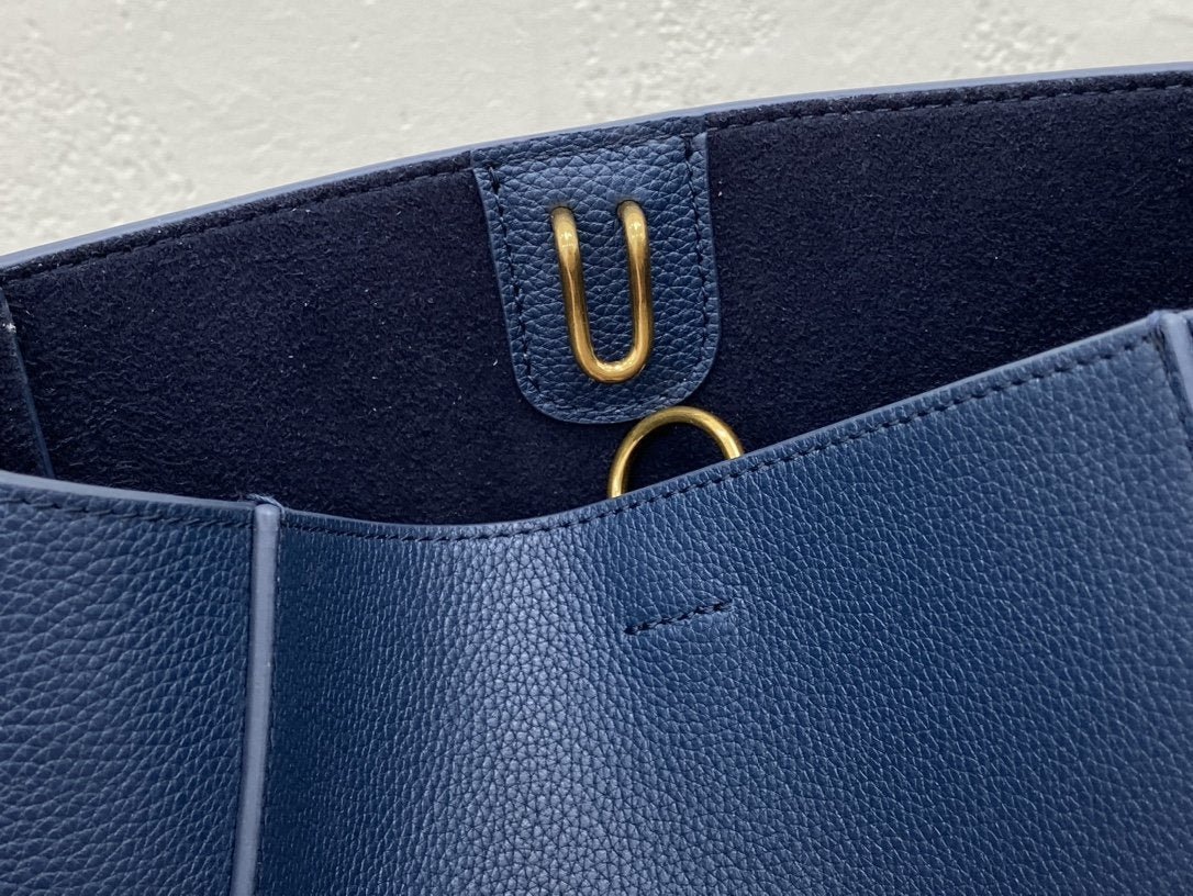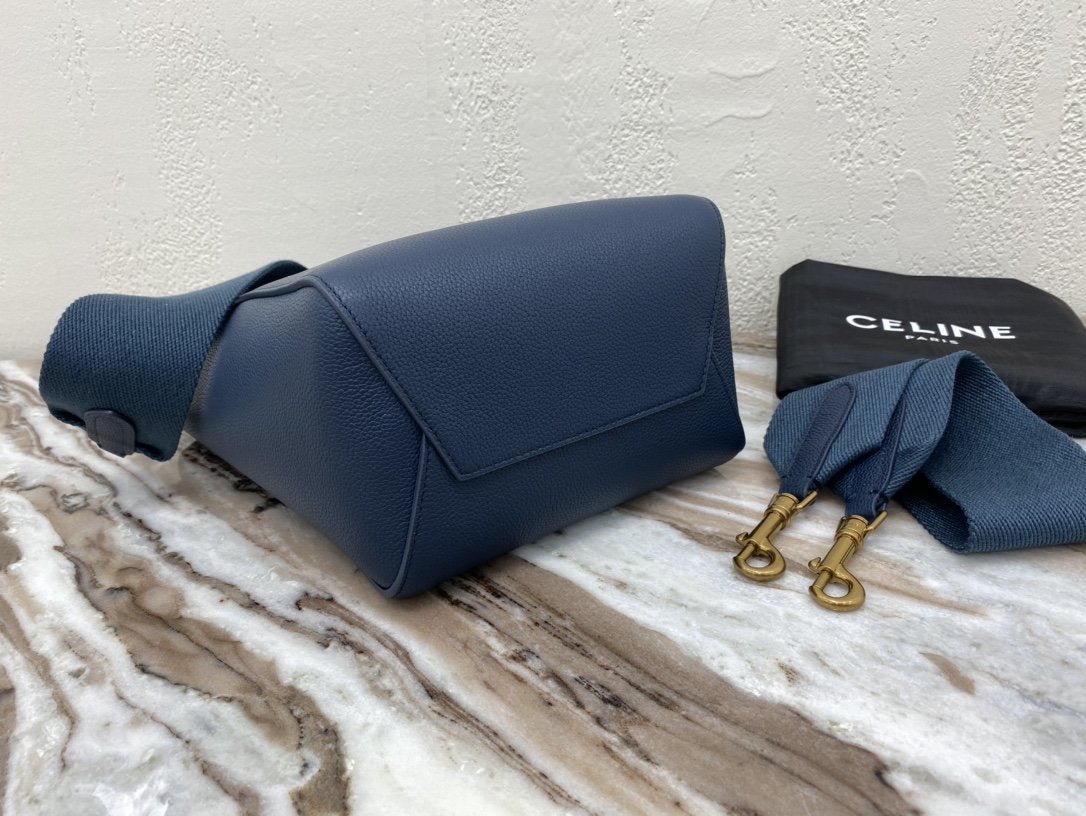 BOLSO CUBO SANGLE PEQUEÑO DE PIEL DE BECERRO SUAVE CON TEXTURA GRANULADA, BANDOLERA DE LANA DESMONTABLE Y CIERRE MOSQUETÓN INTERIOR.