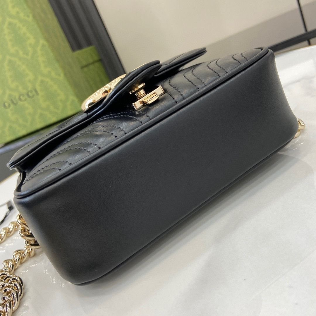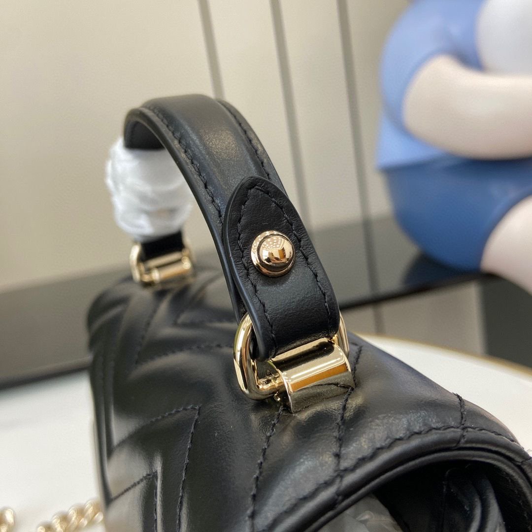 • Piel matelassé con motivo chevron y GG