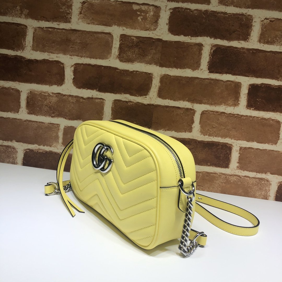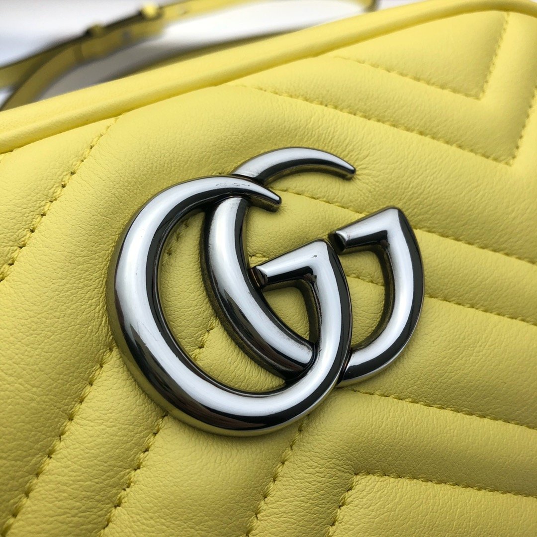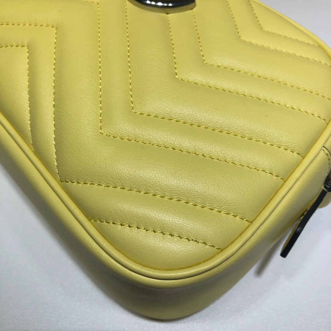 • Piel matelassé con motivo chevron y GG en la parte trasera