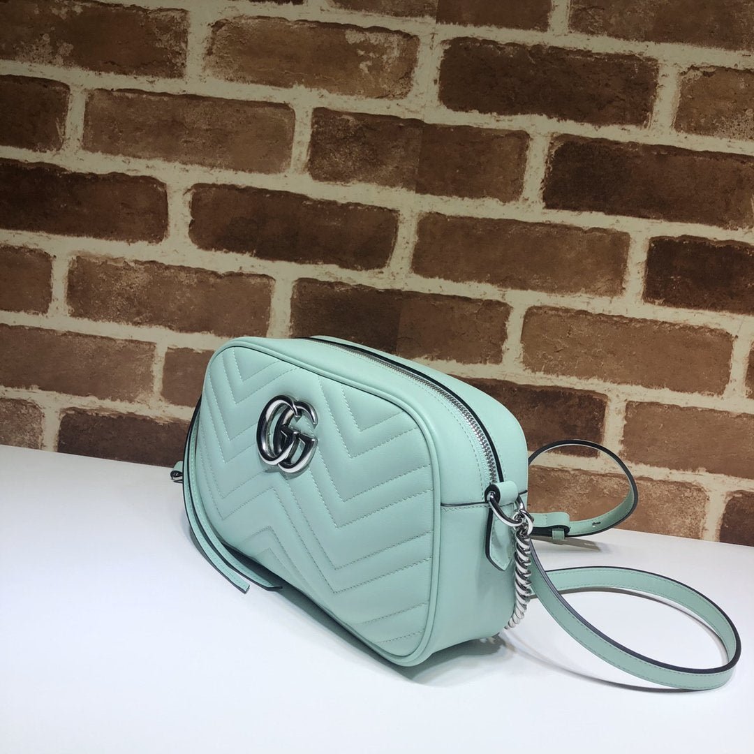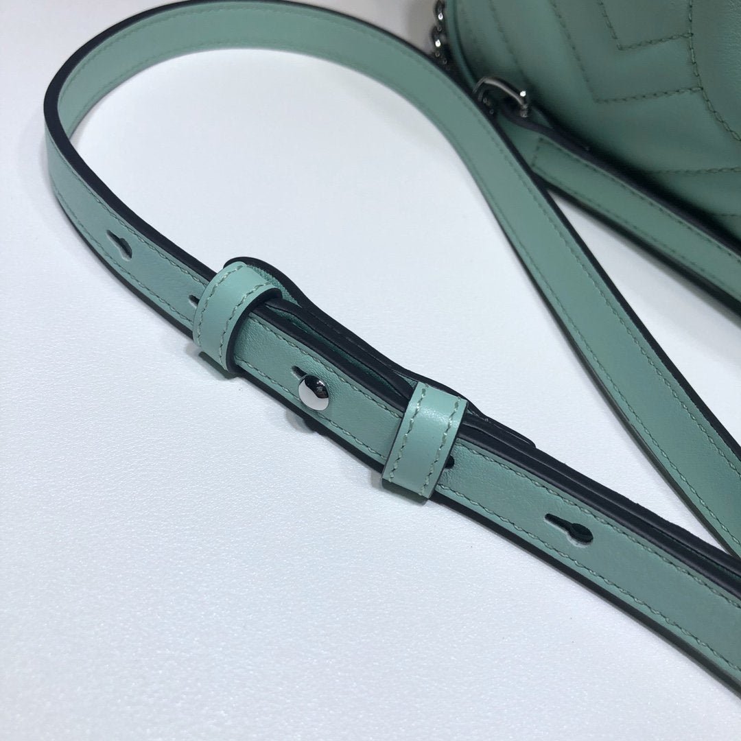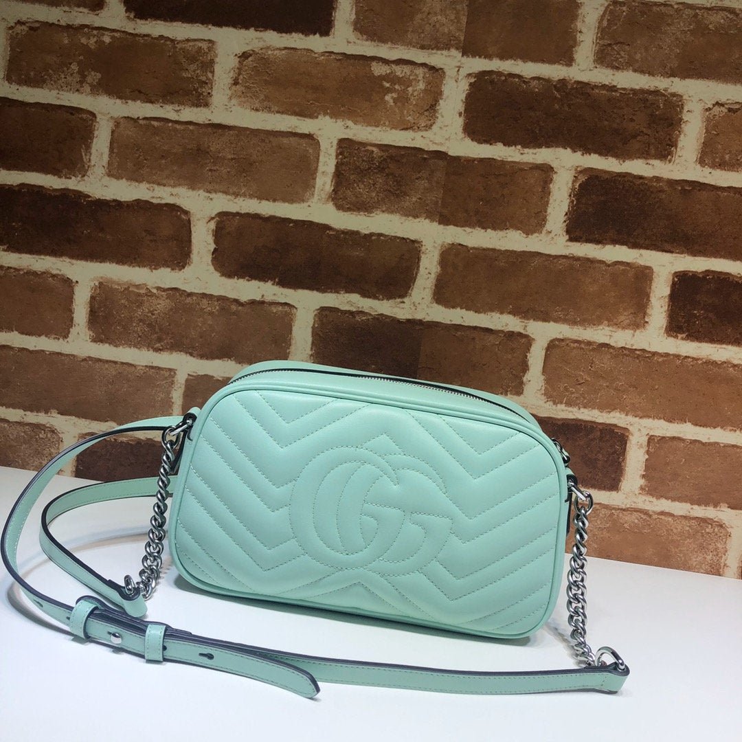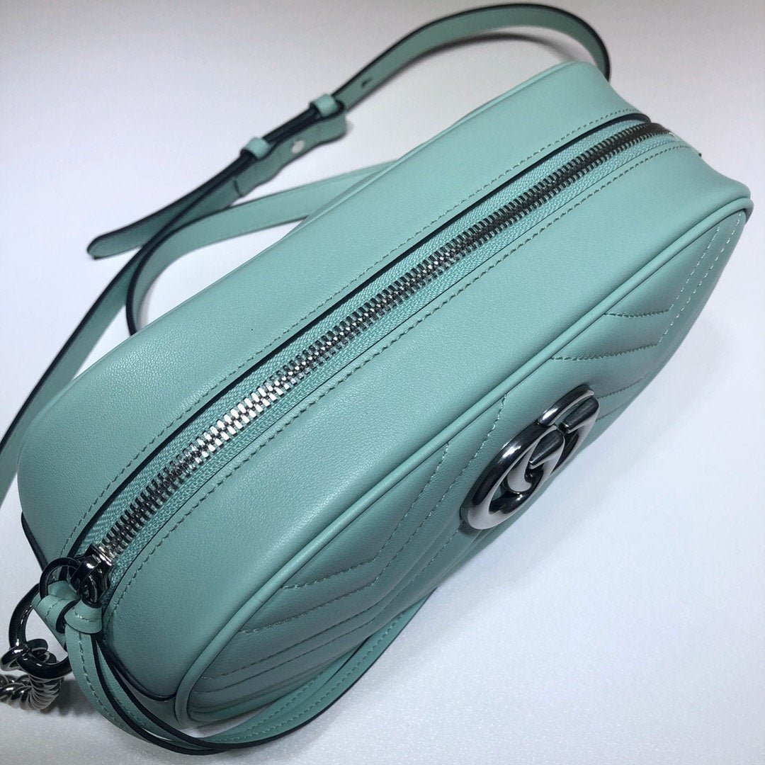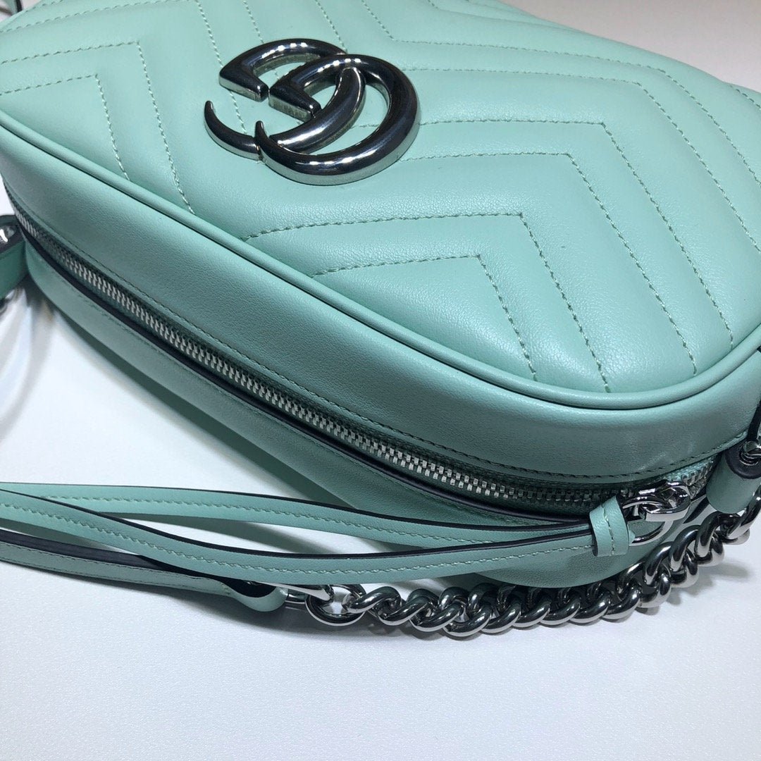 • Piel matelassé con motivo chevron y GG en la parte trasera