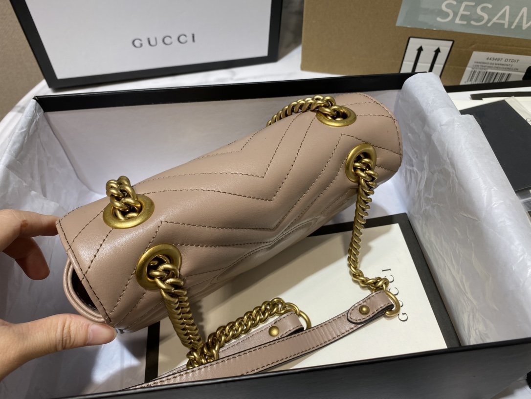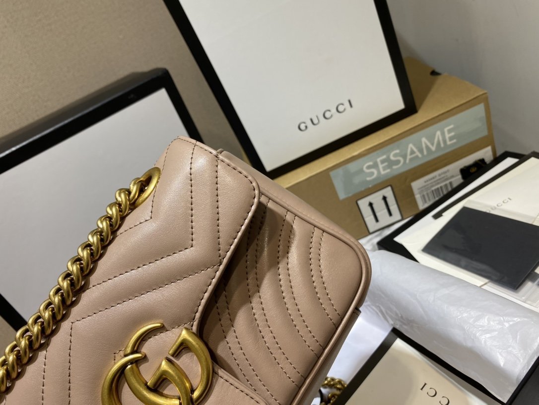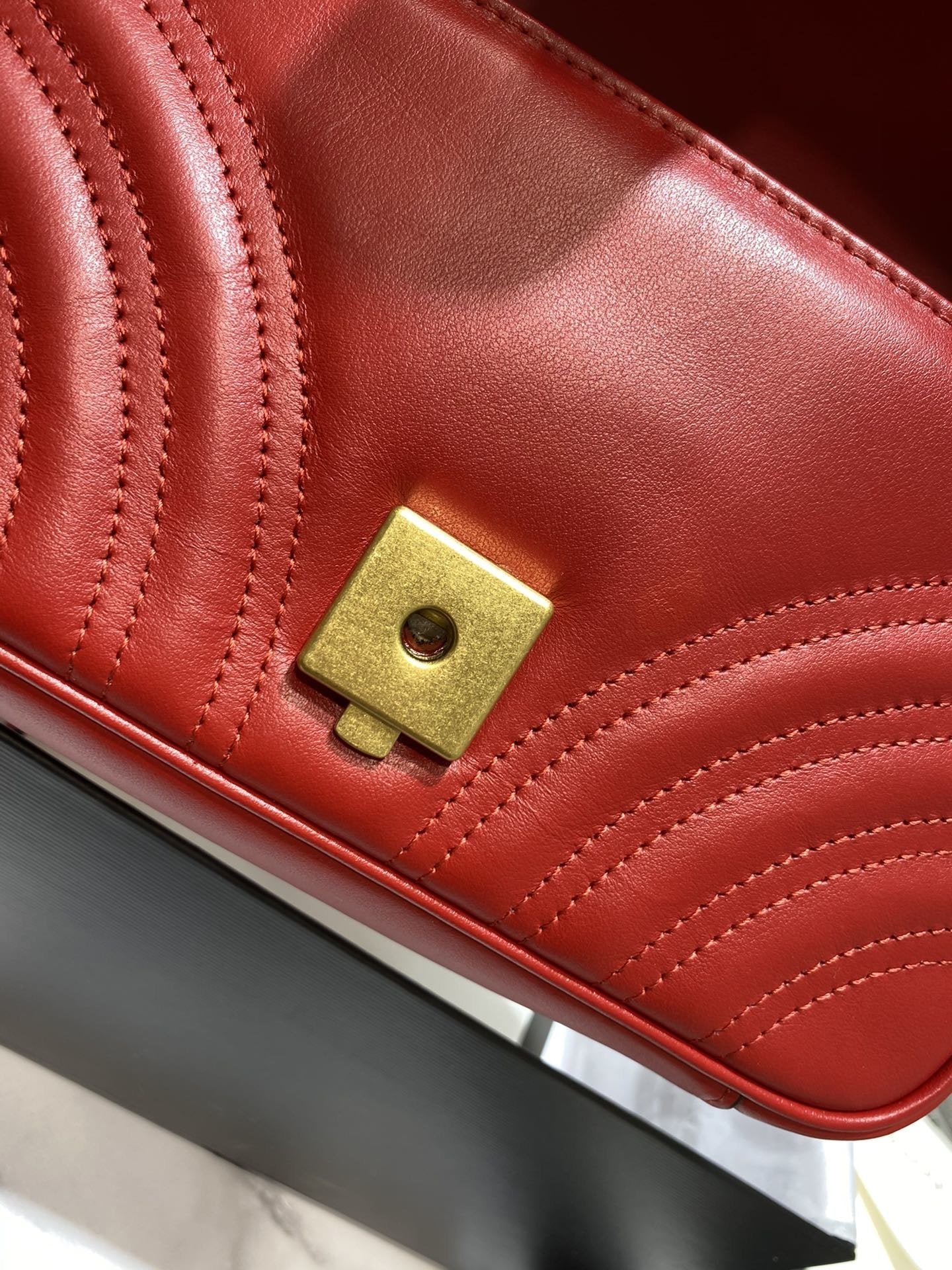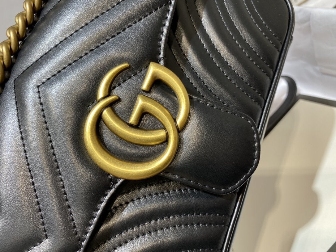 - Piel matelassé con motivo chevron y GG