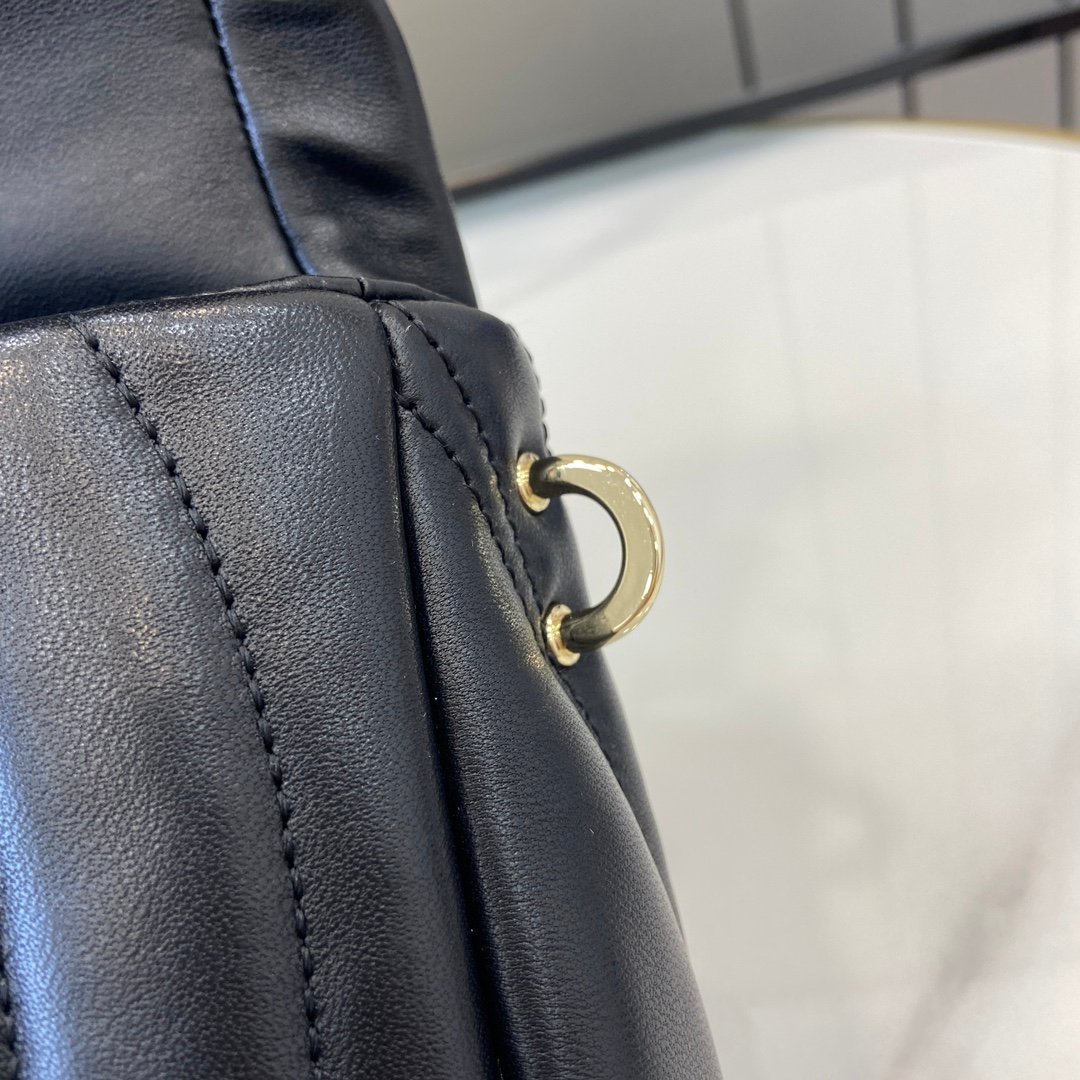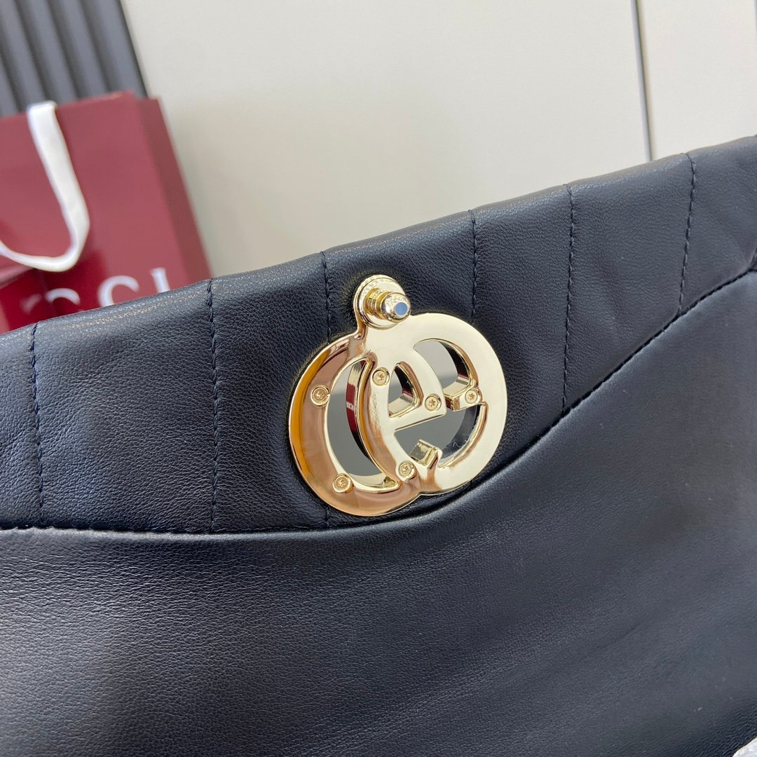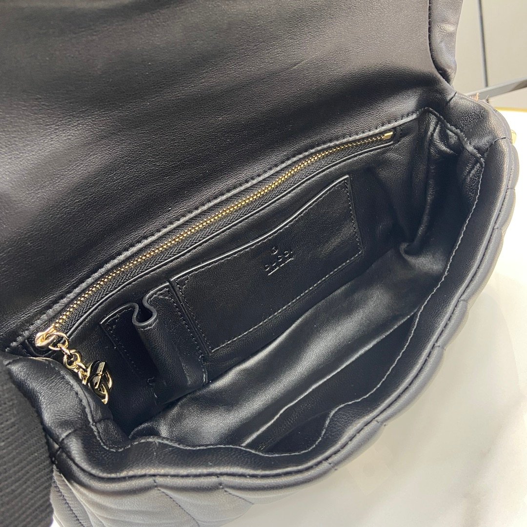 • 1 bolsillo con cremallera y adorno GG, 1 bolsillo abierto y 1 compartimento para el lápiz de labios
