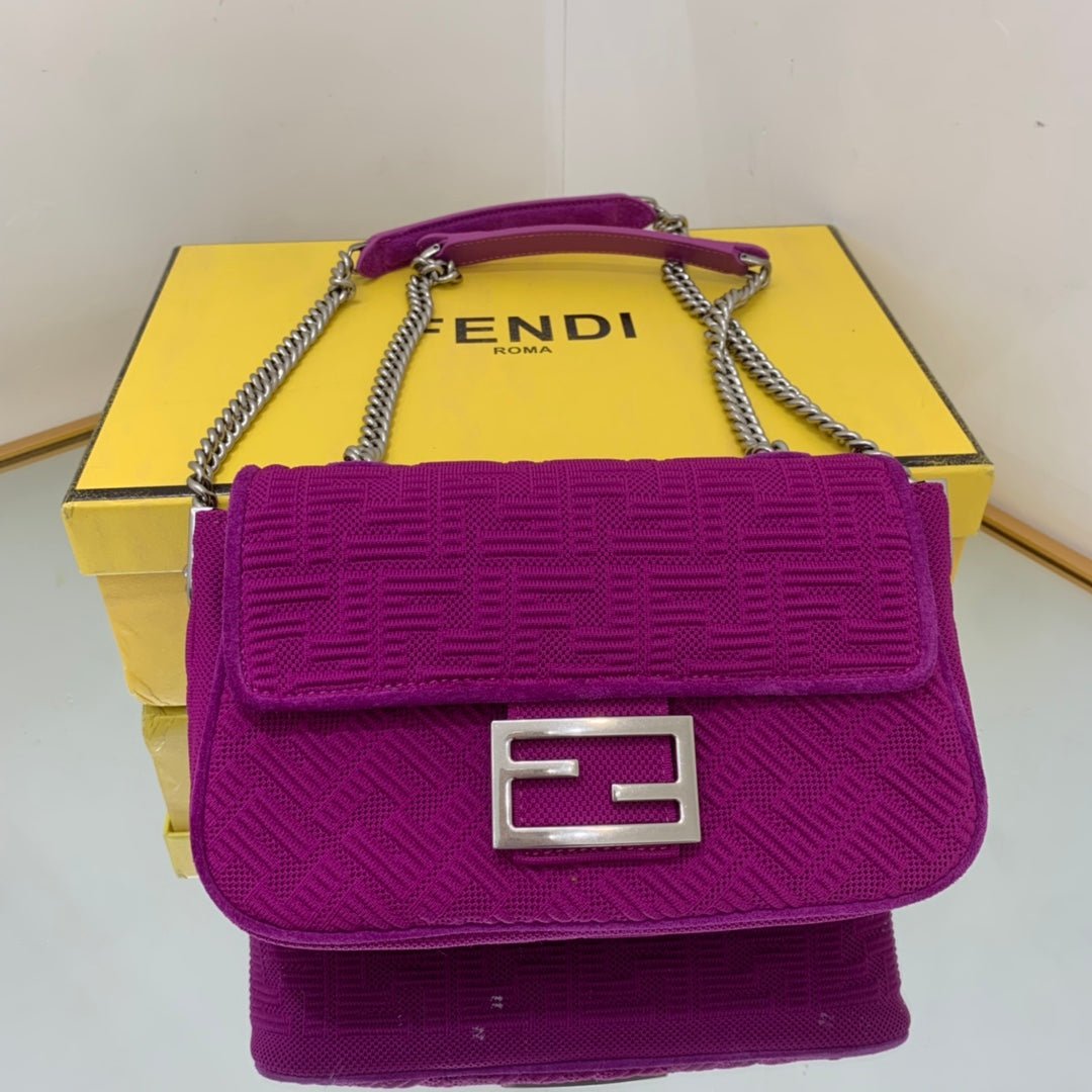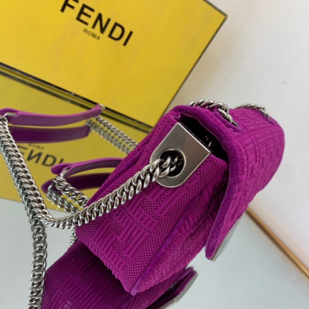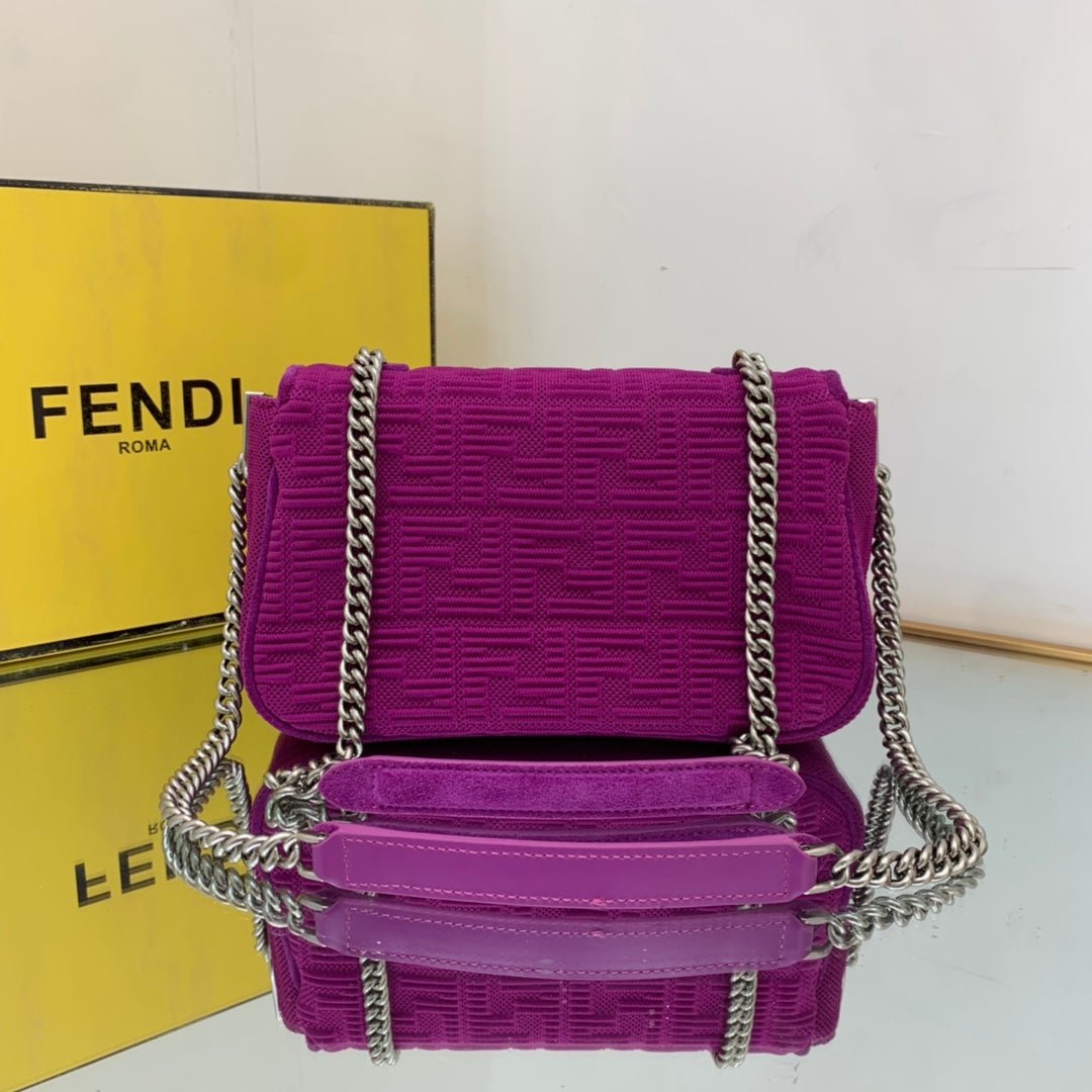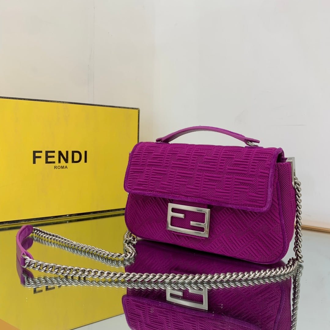 • Icónico bolso Baguette tamaño mediano con cadena. Decorado con cierre FF.