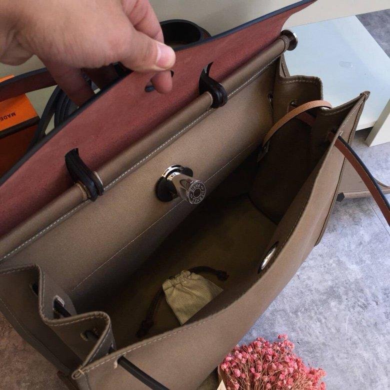 Bolso en tela Officier y piel, adornos, pochette plana interior extraíble con cremallera, bolsillo trasero exterior con cremallera, asa plegable, bandolera