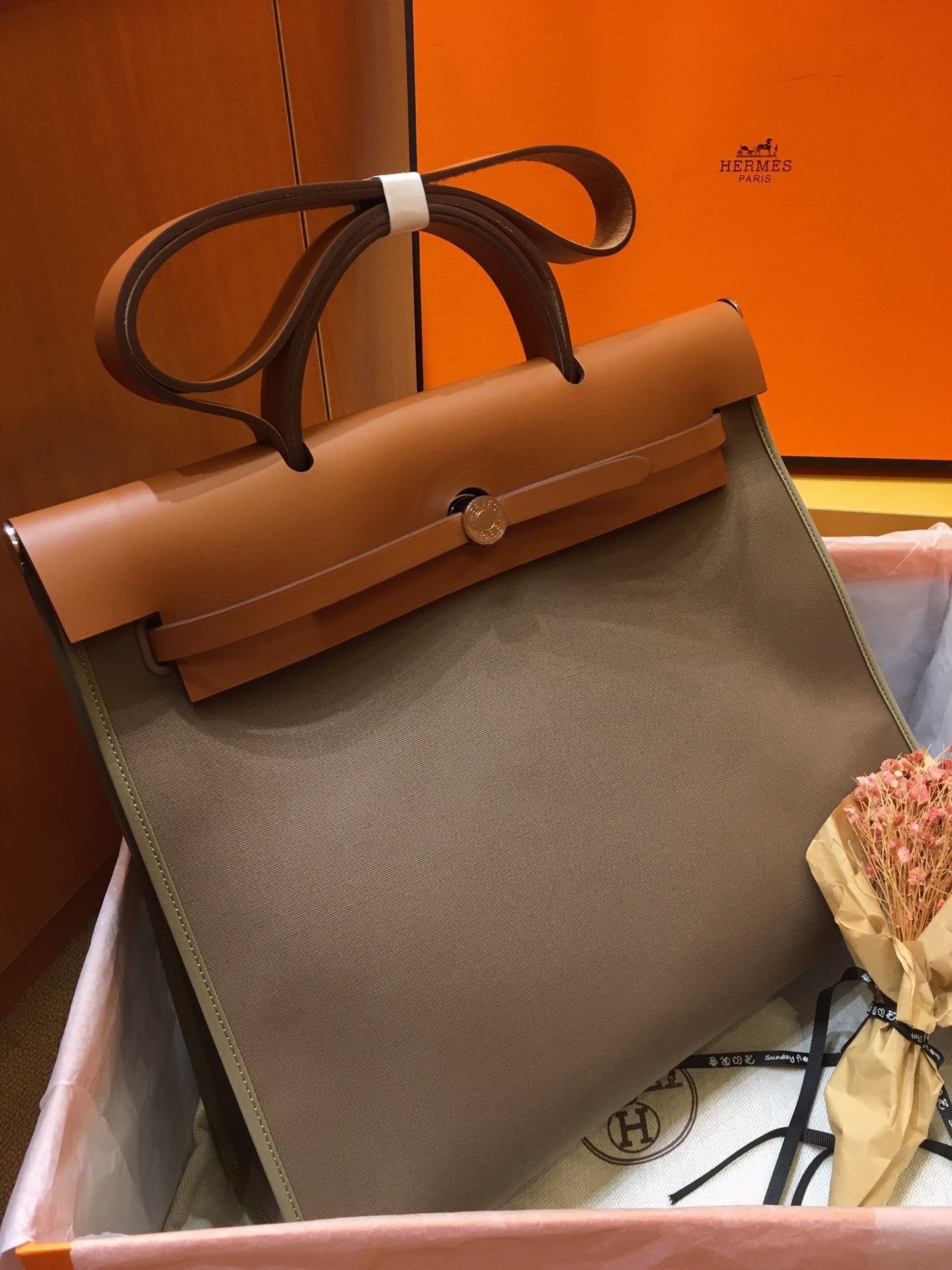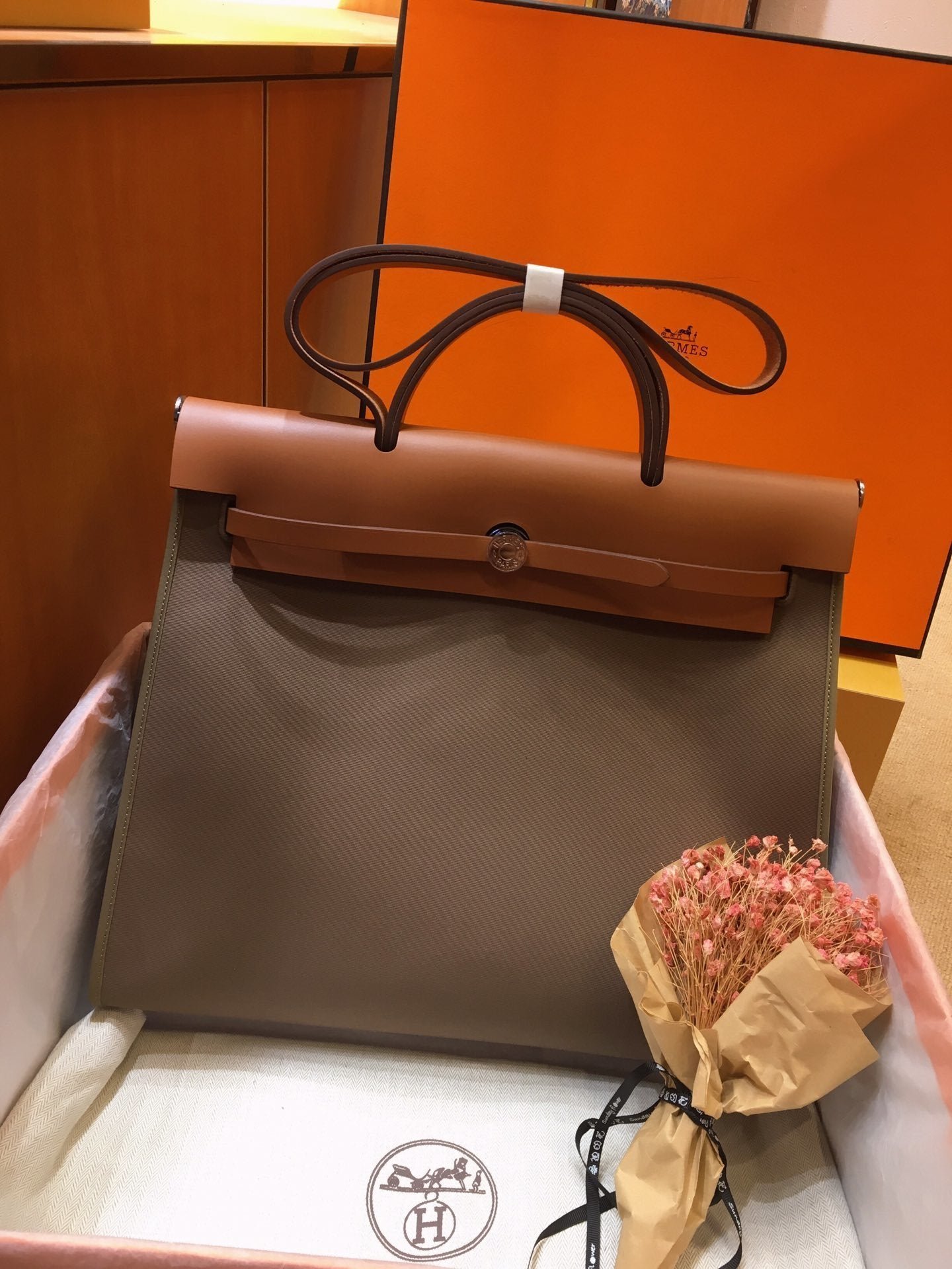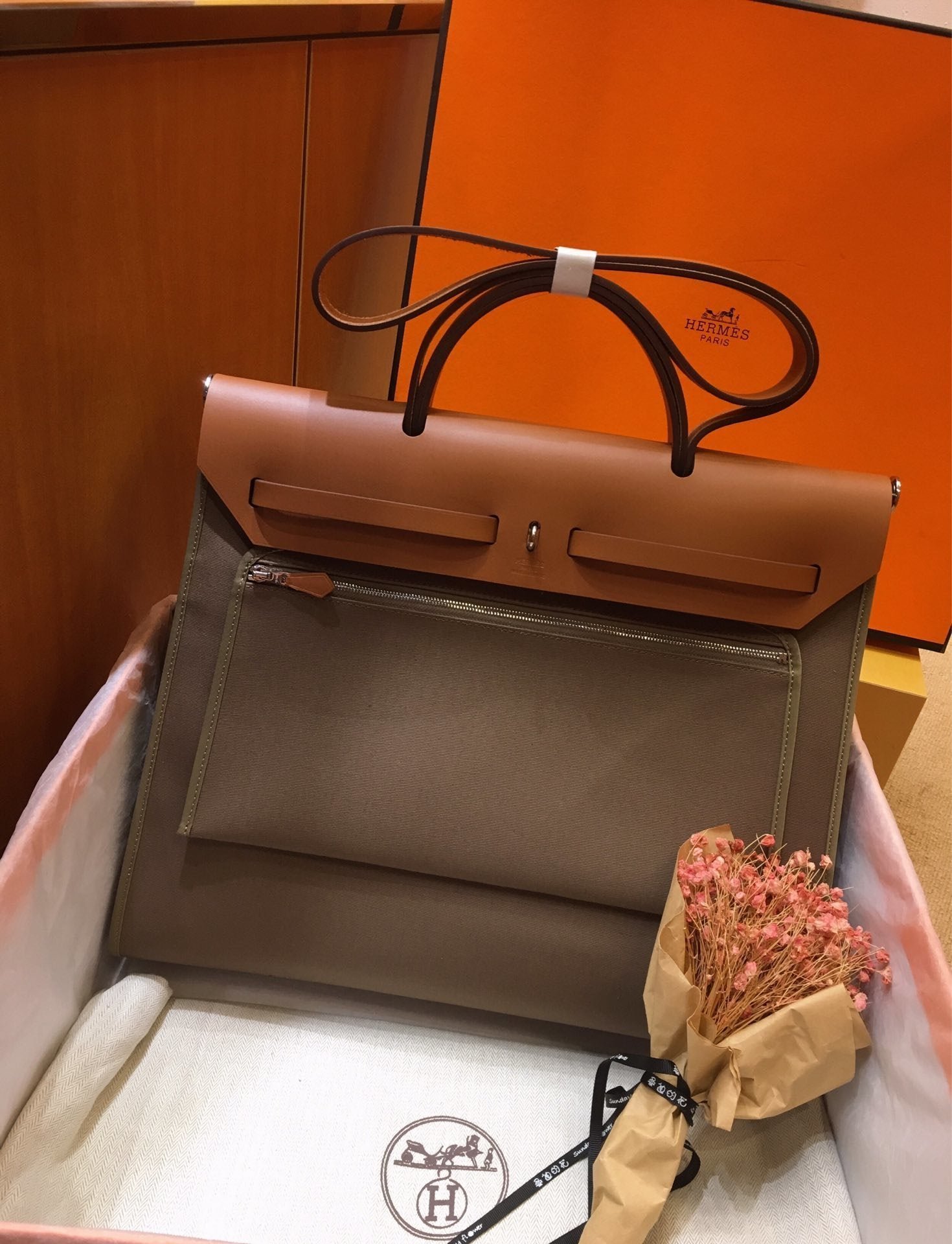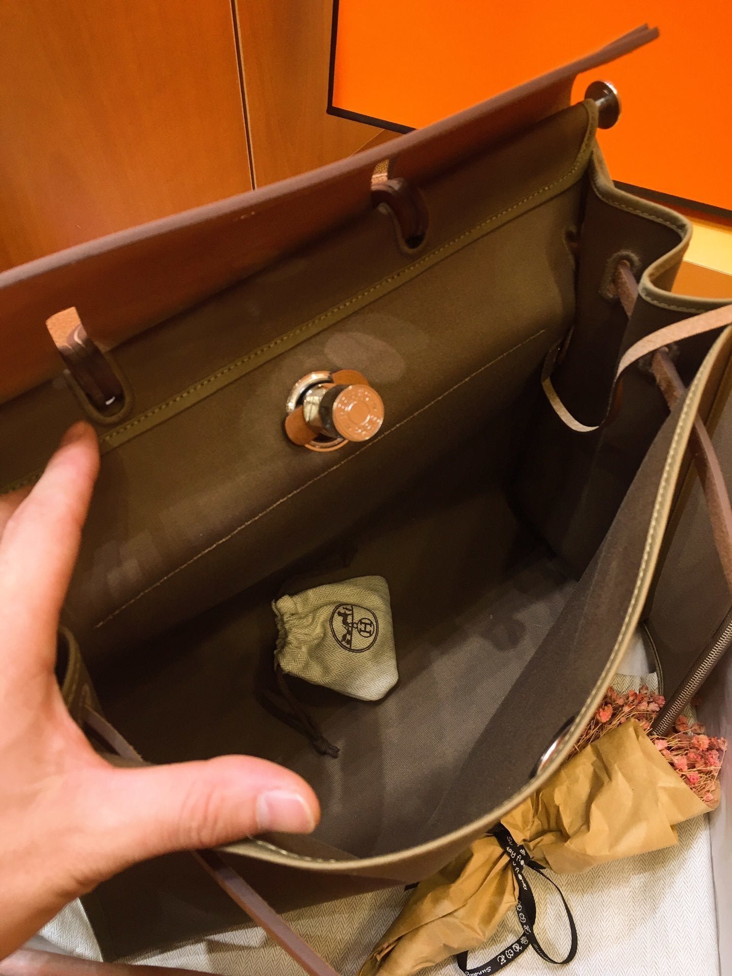 Bolso en tela Officier y piel, adornos, pochette plana interior extraíble con cremallera, bolsillo trasero exterior con cremallera, asa plegable, bandolera