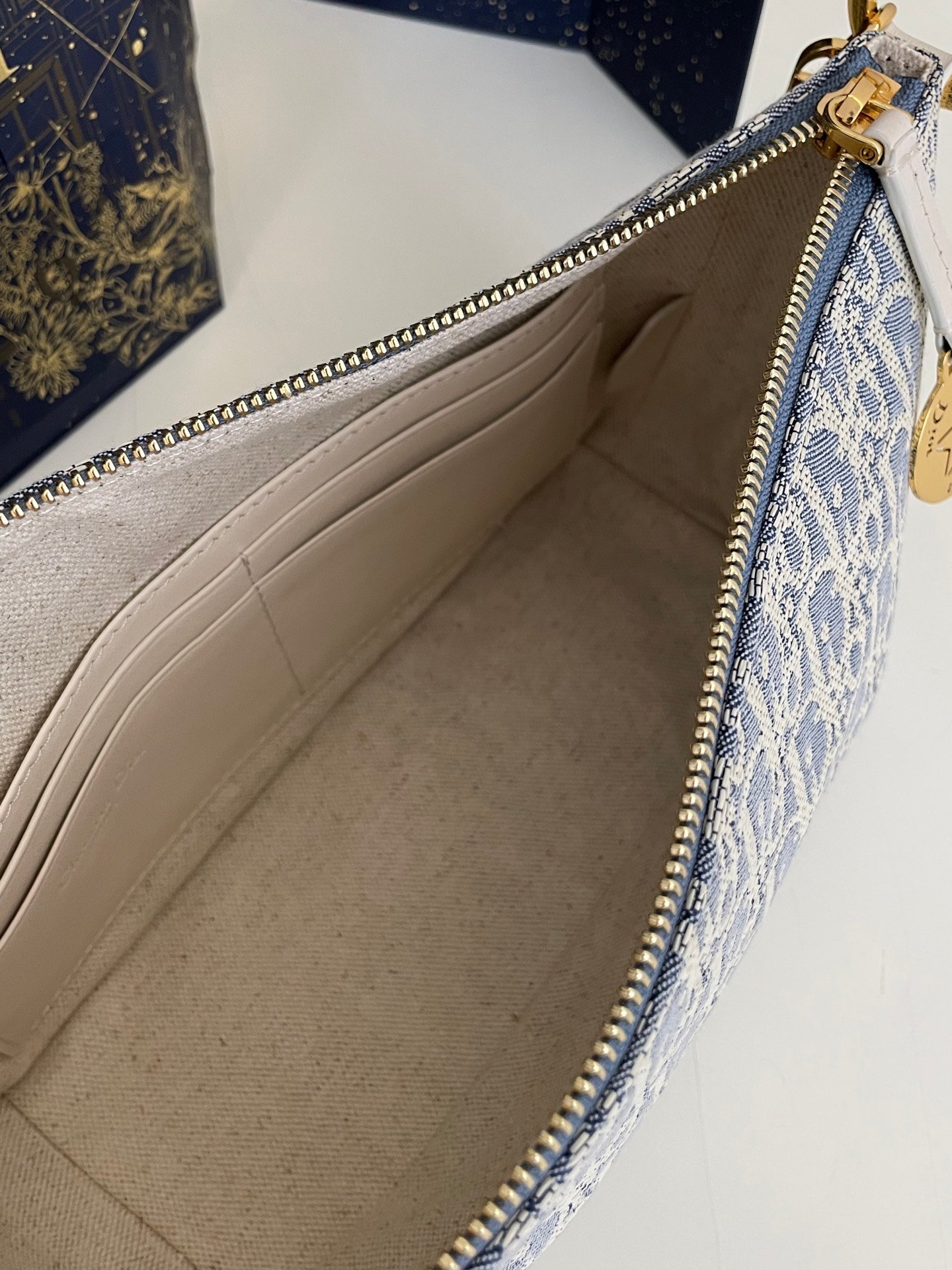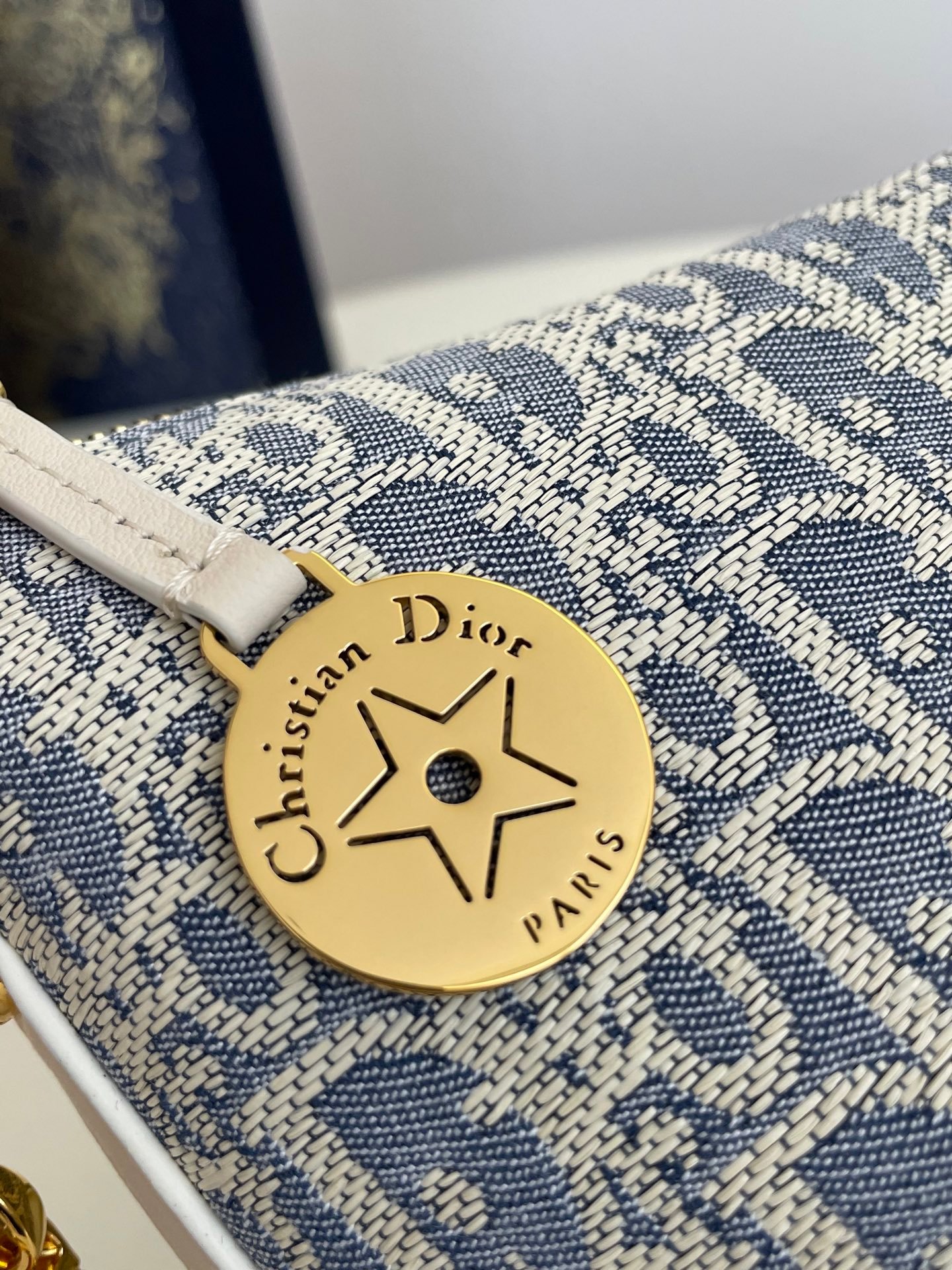 Cierre de cremallera con medallón grabado con la firma Christian Dior Paris y una estrella