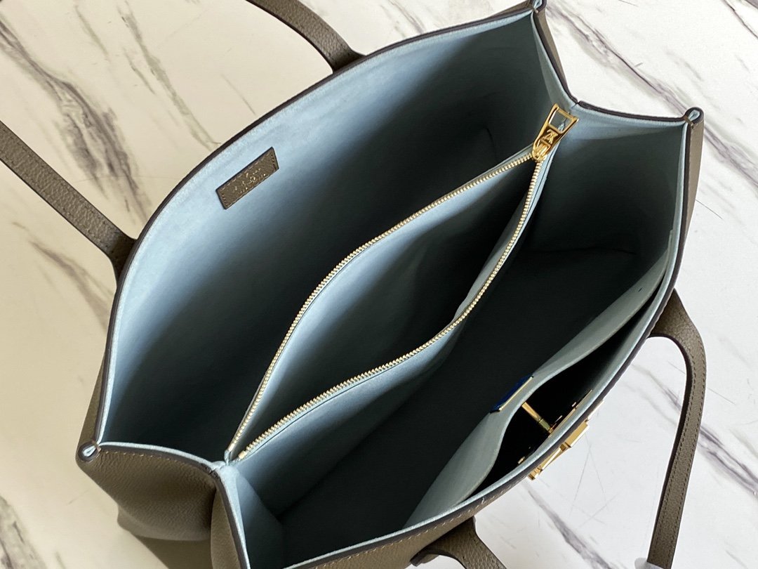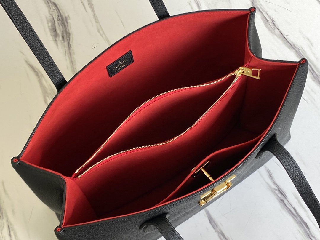 - Bolsillo interior plano con cierre LV para asegurar las pertenencias