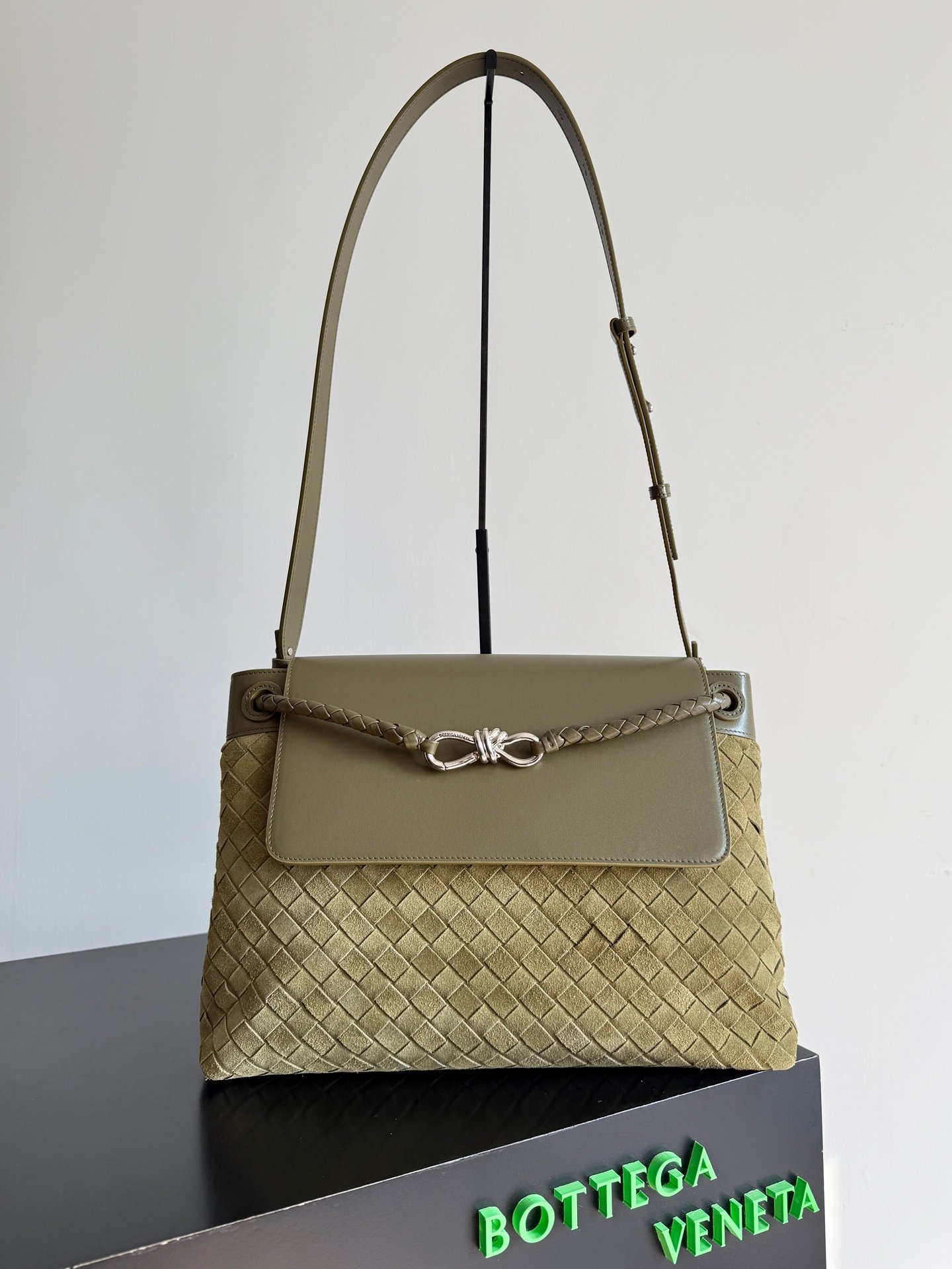 Bolso messenger de piel y ante con motivo Intrecciato con correa cruzada extraíble y ajustable