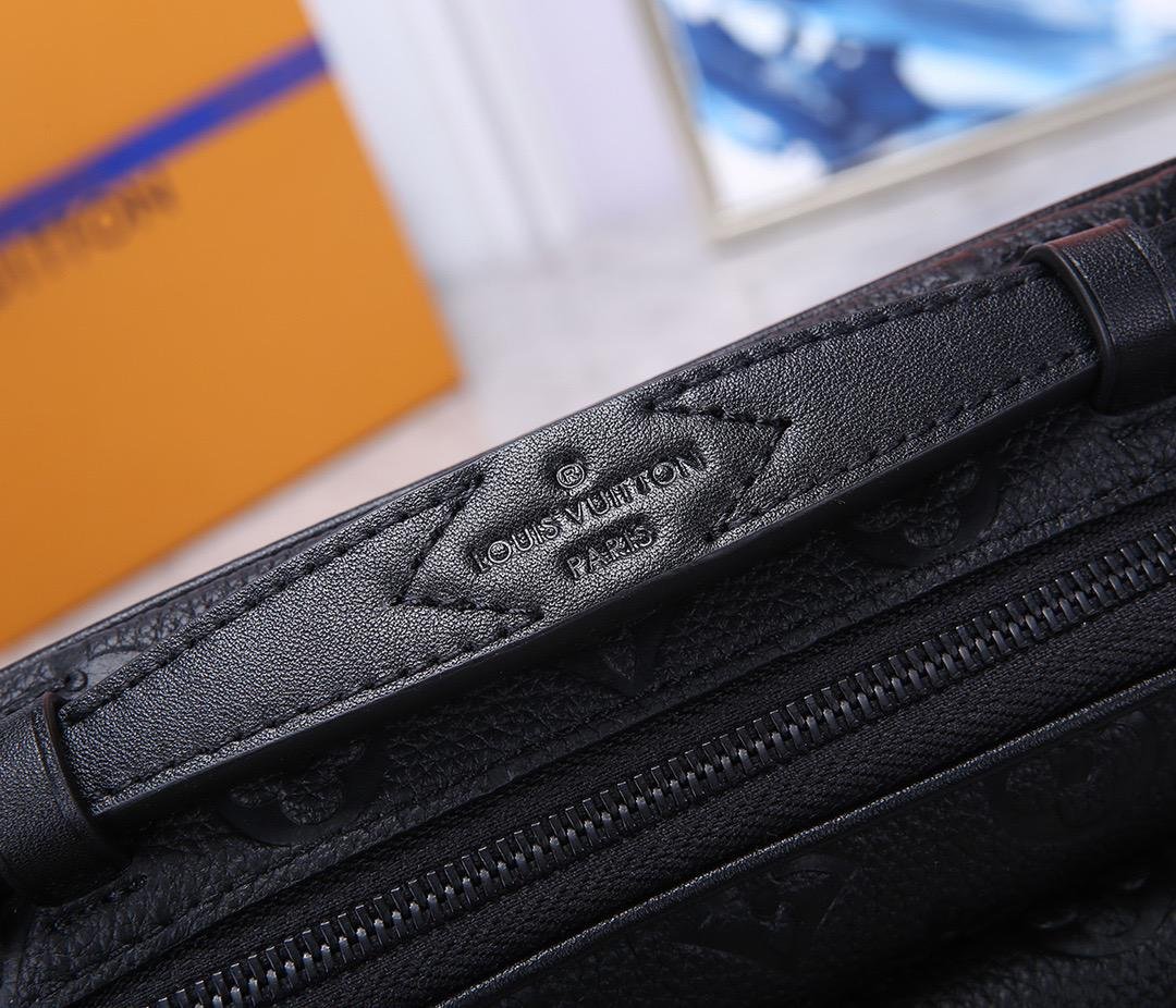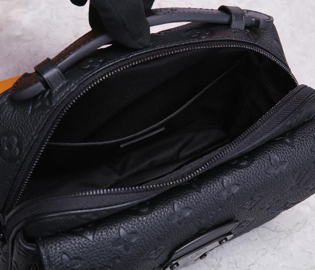 • V realizada con puntadas y logotipo en relieve sobre el asa en piel