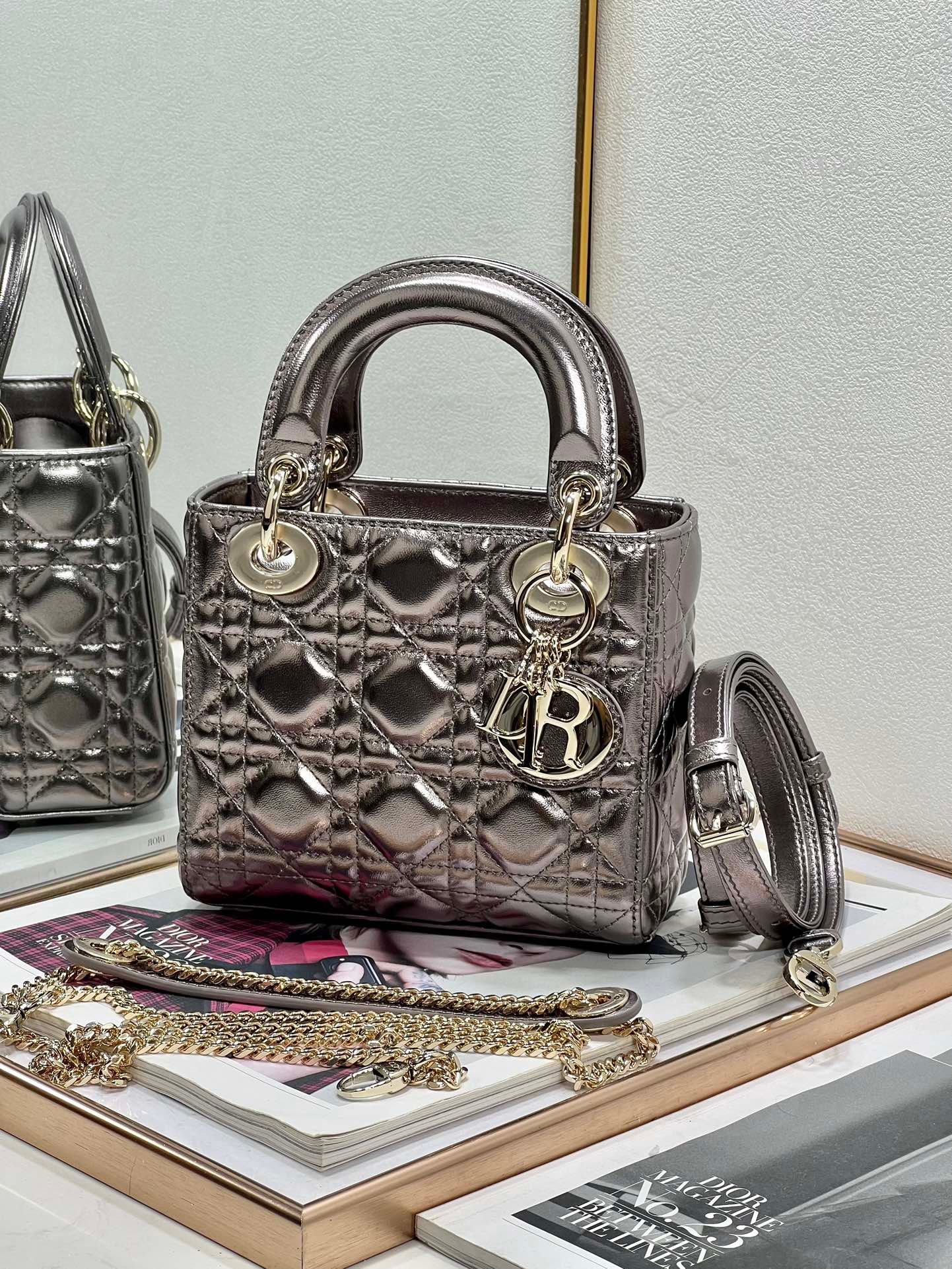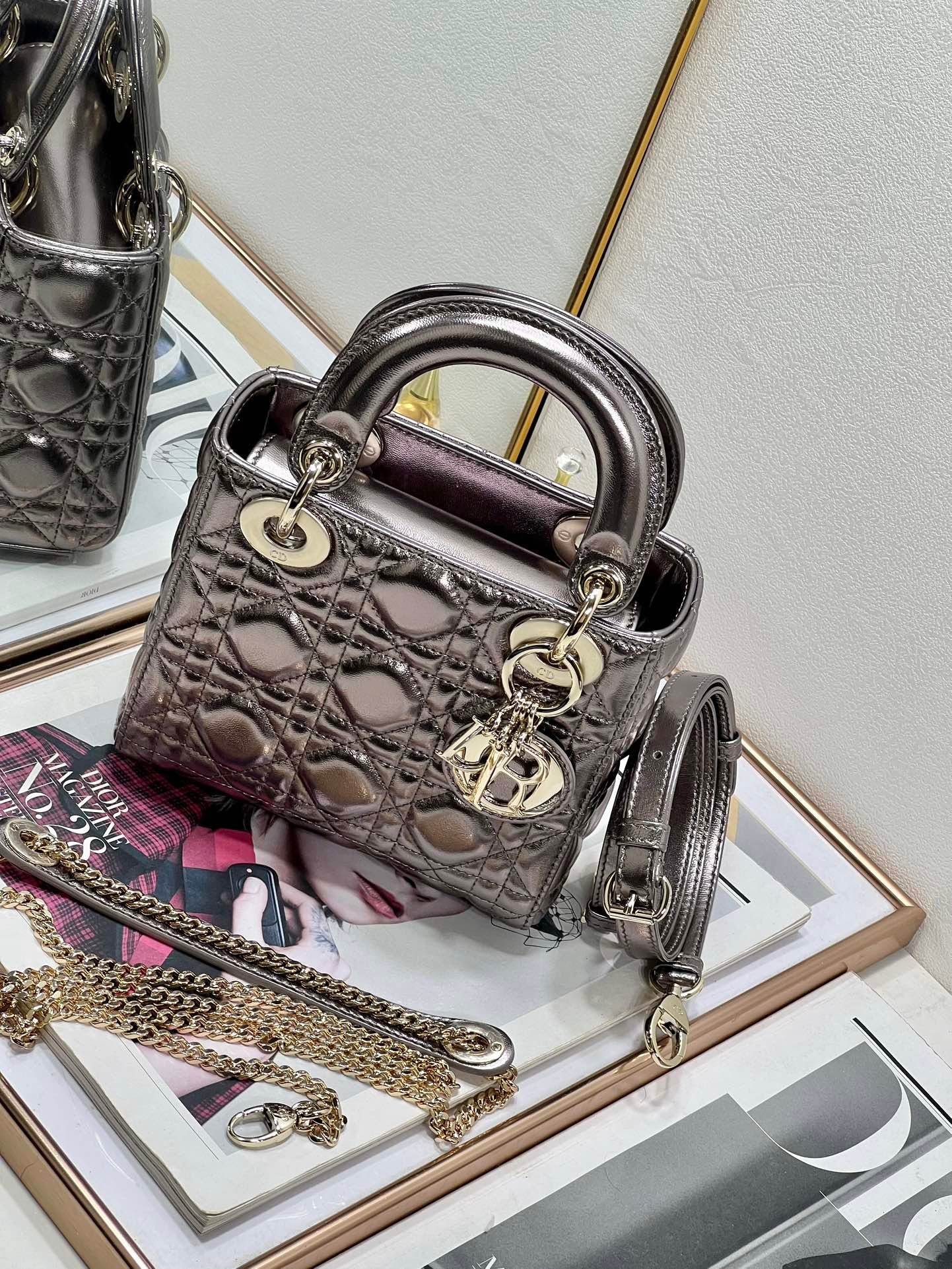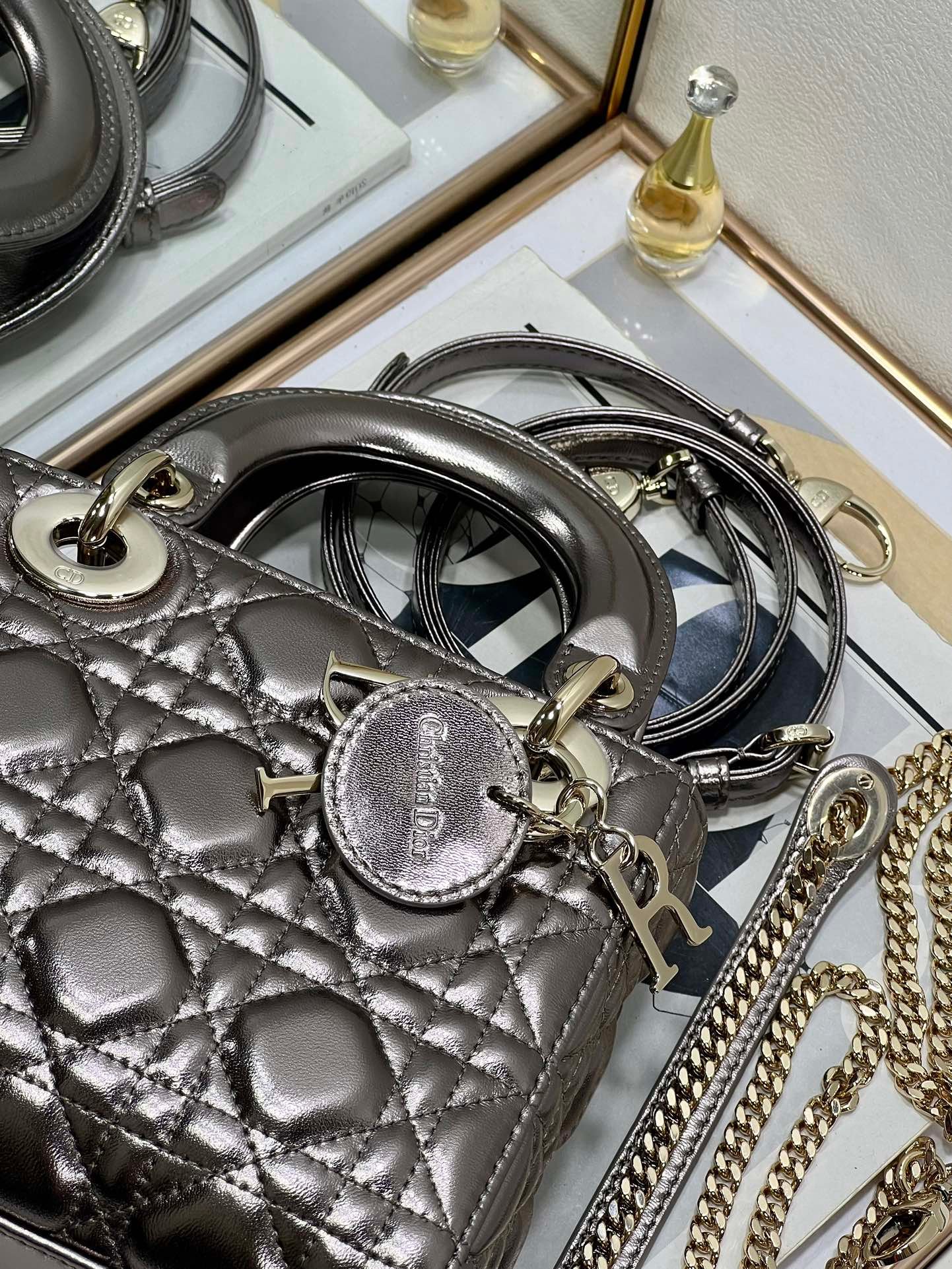 - El bolso puede combinarse con diferentes bandoleras bordadas de la Maison