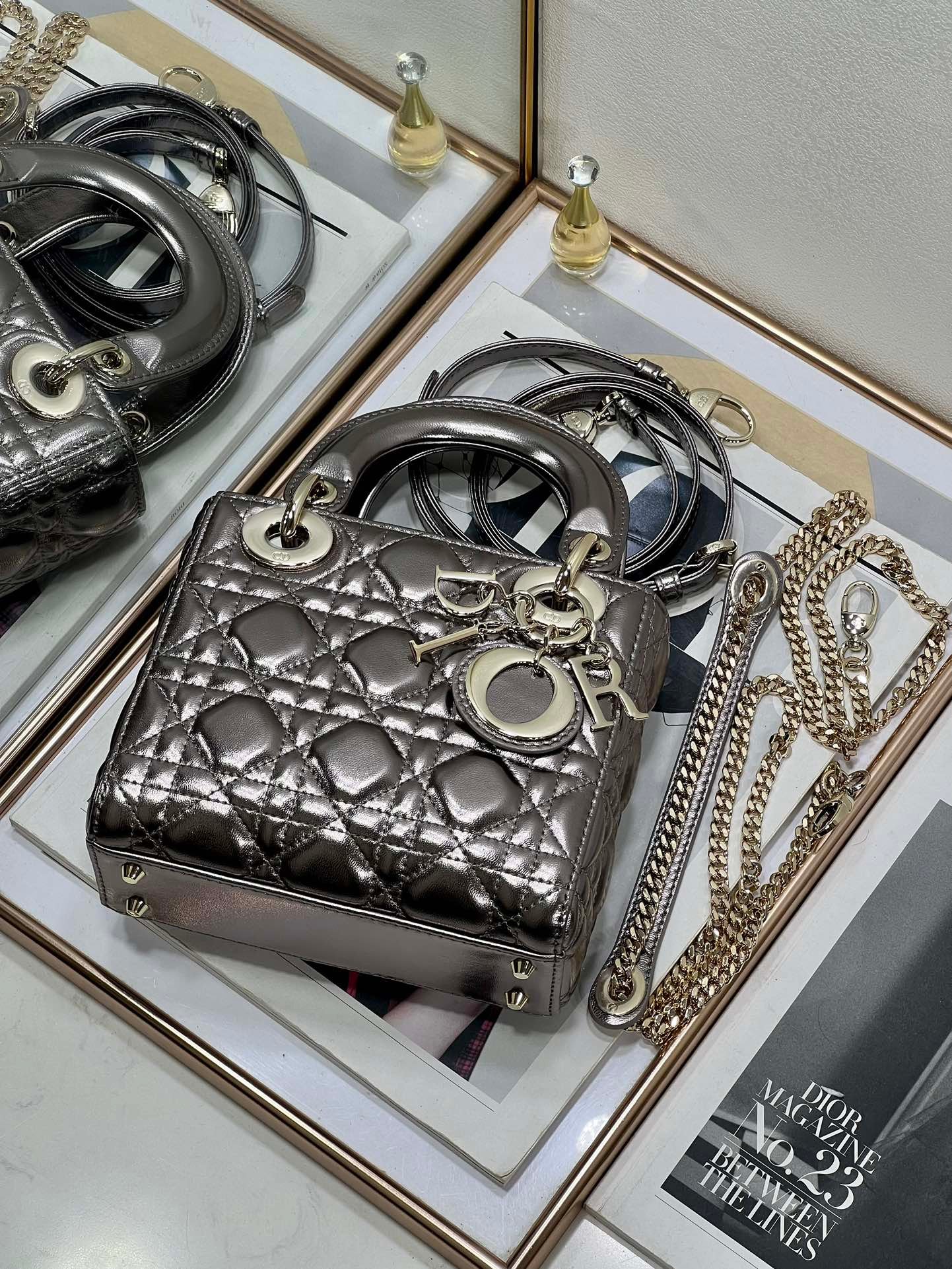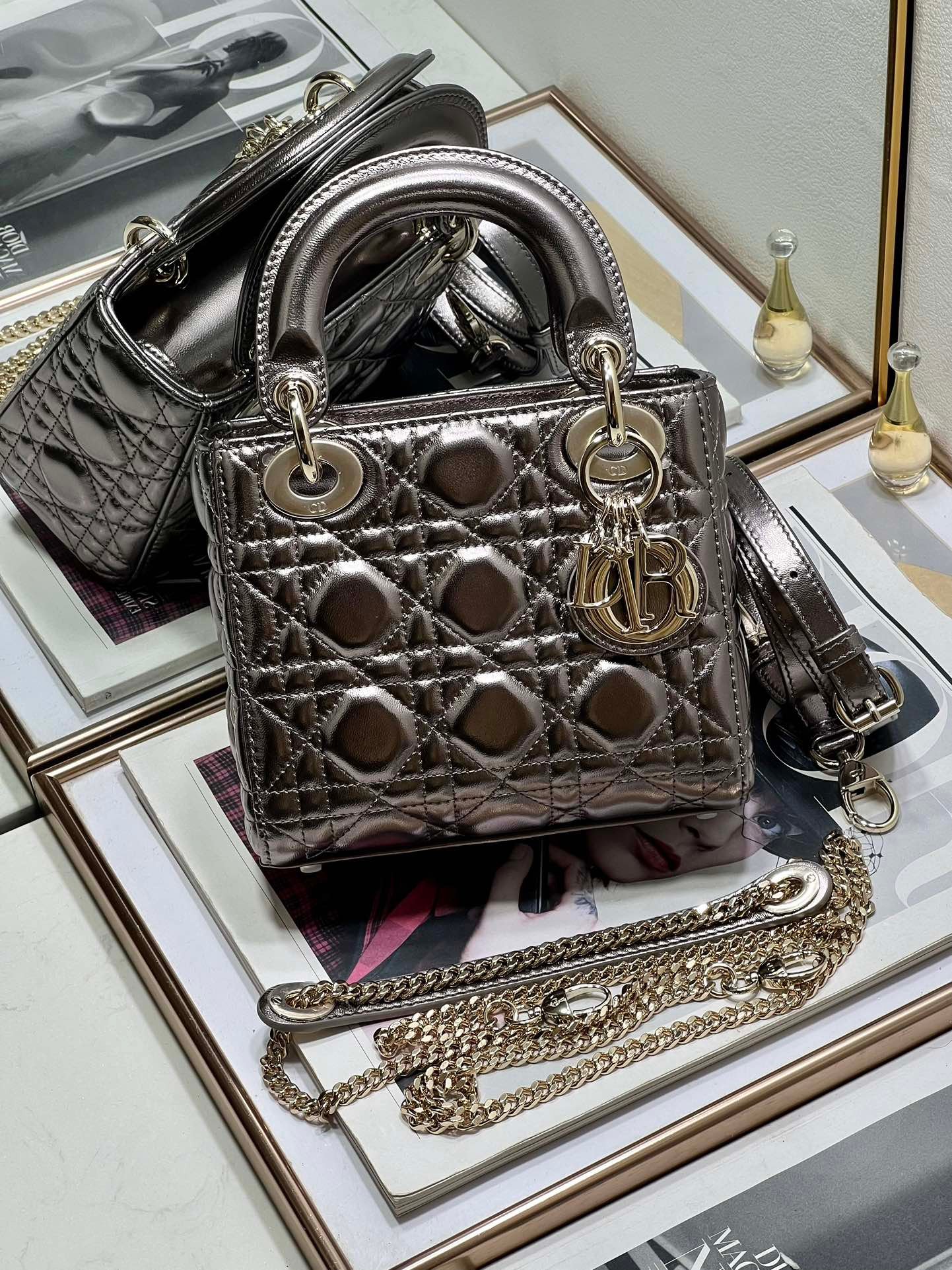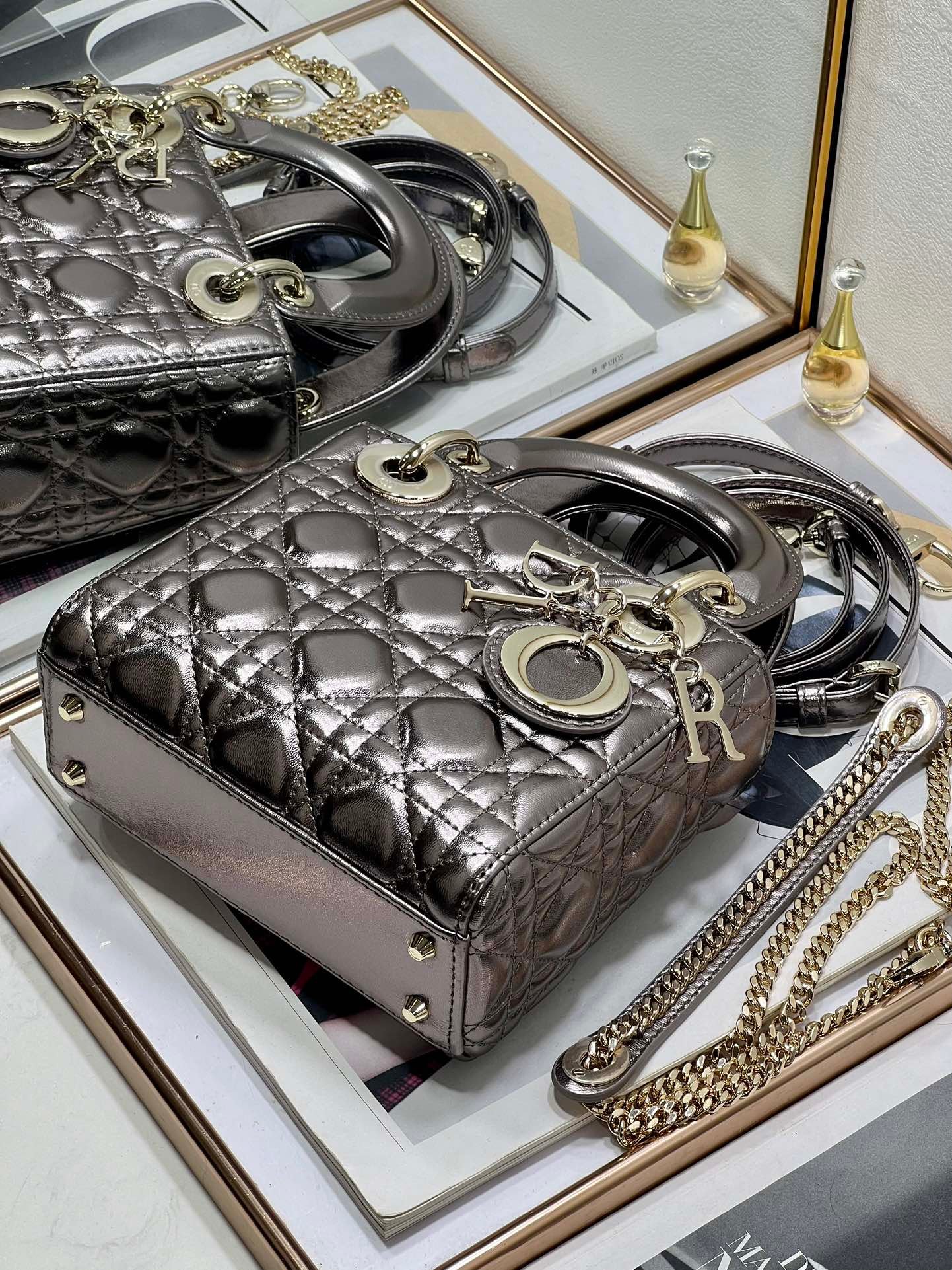 - El bolso puede combinarse con diferentes bandoleras bordadas de la Maison