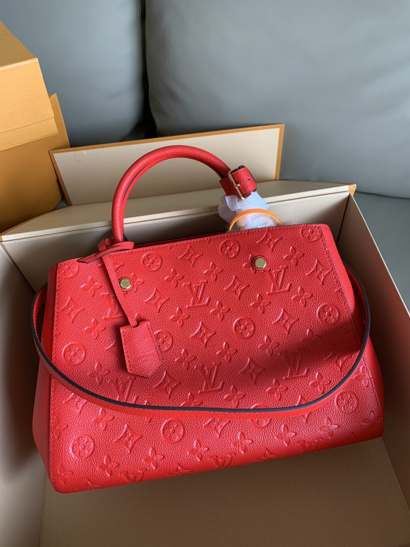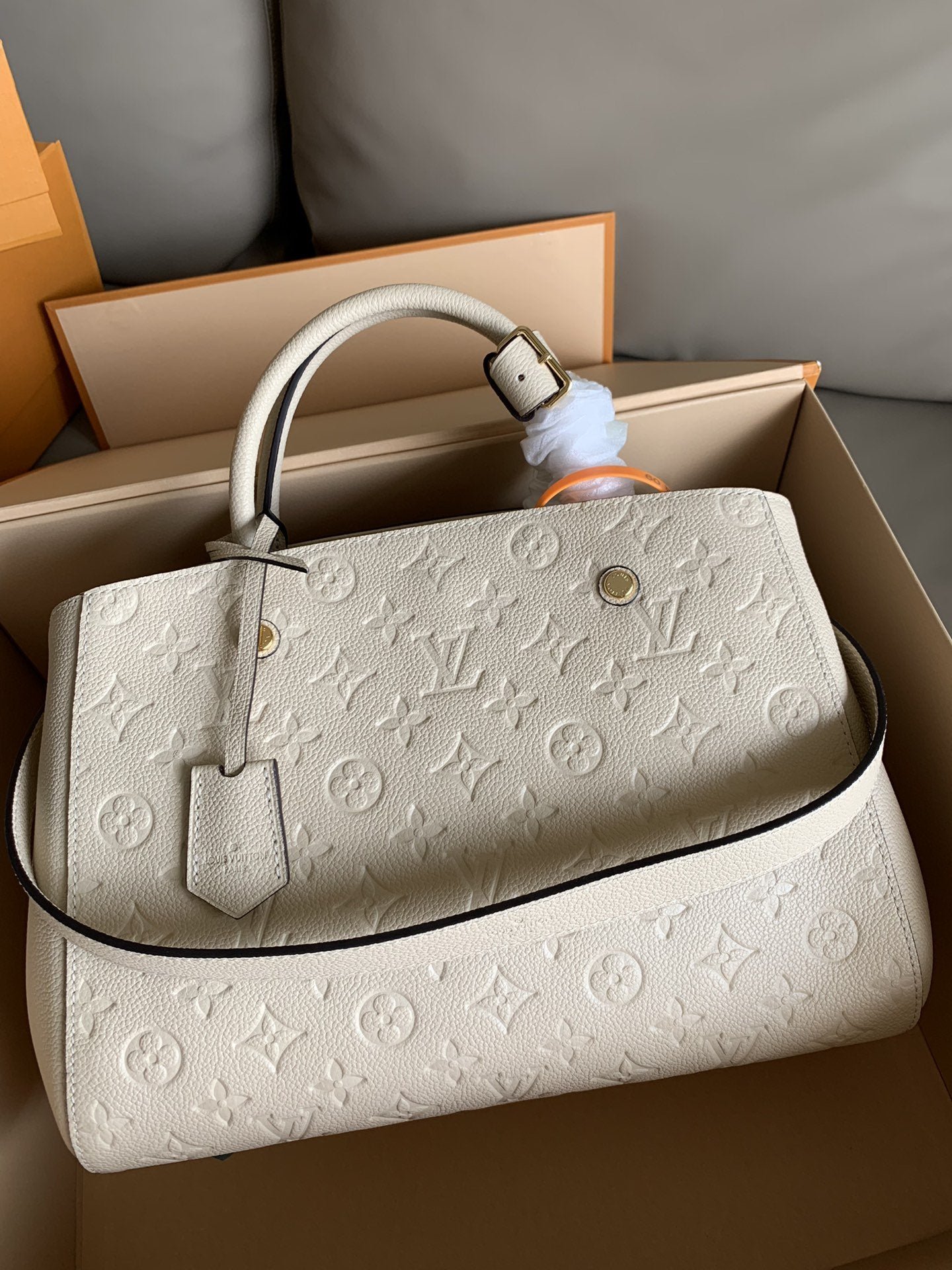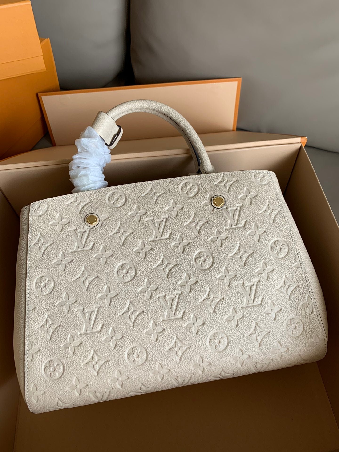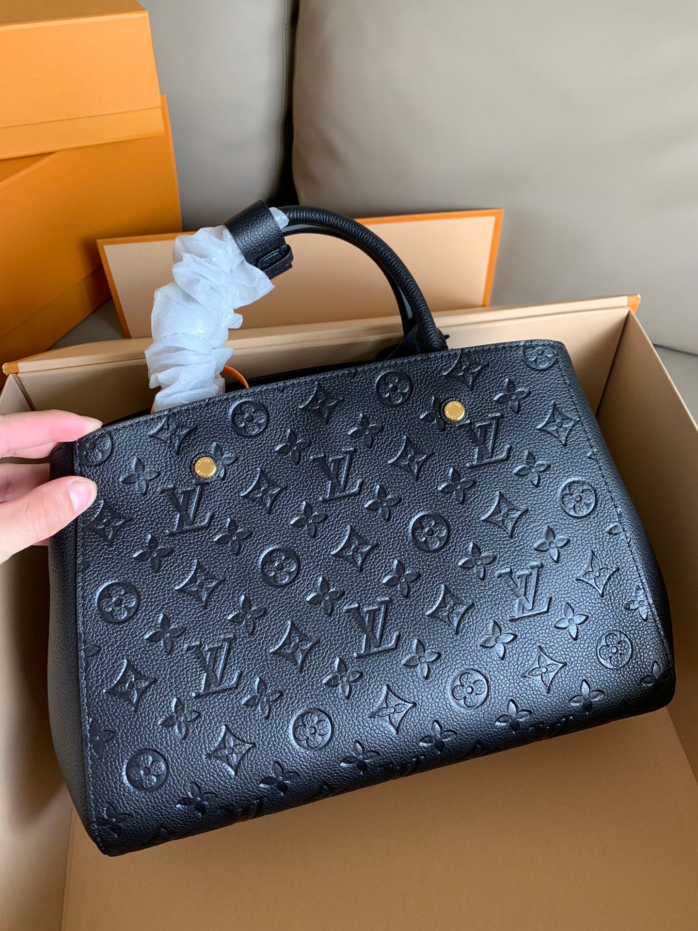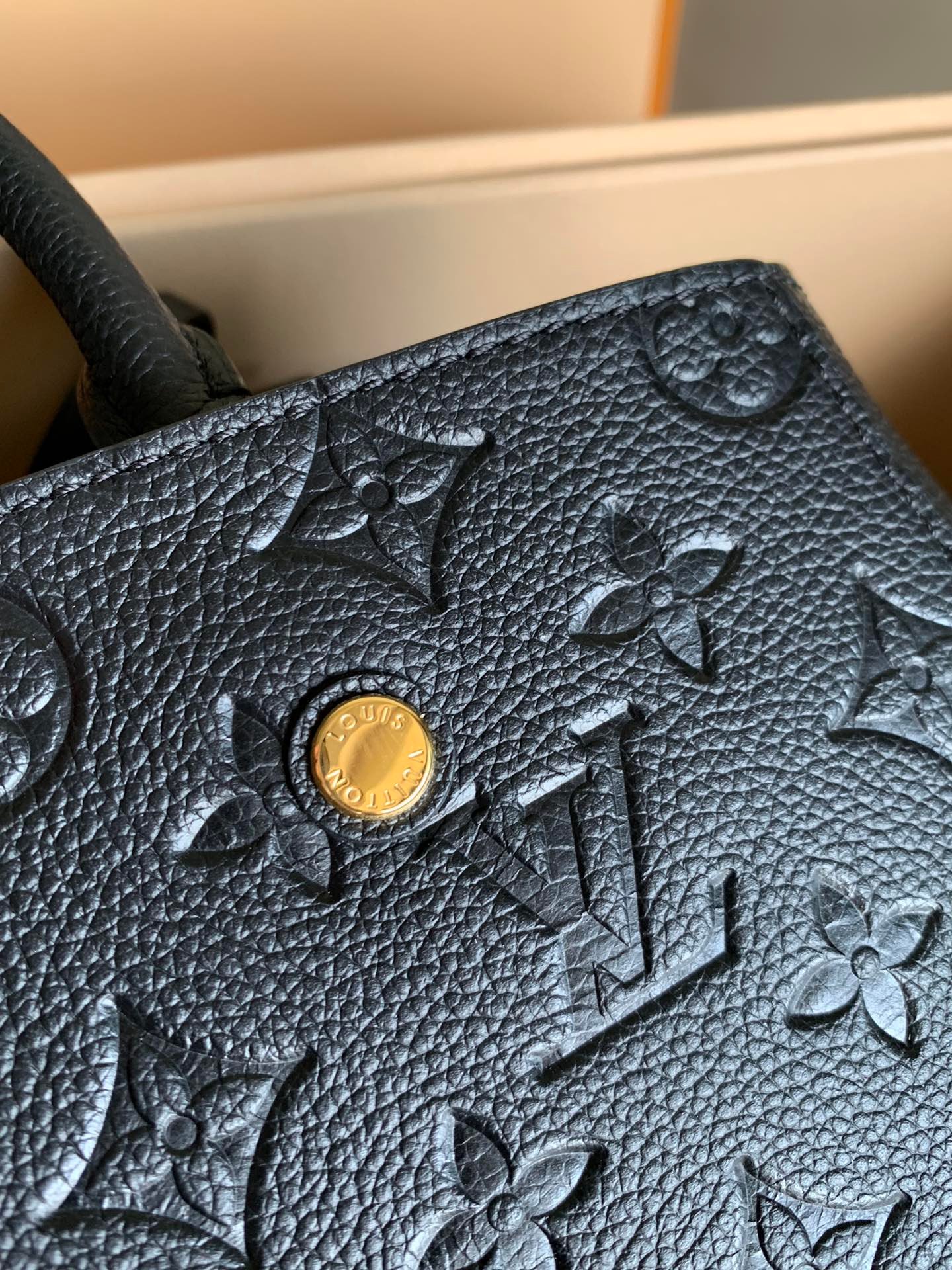 • Piel flexible granulada con motivo Monogram Empreinte grabado y piel flexible granulada