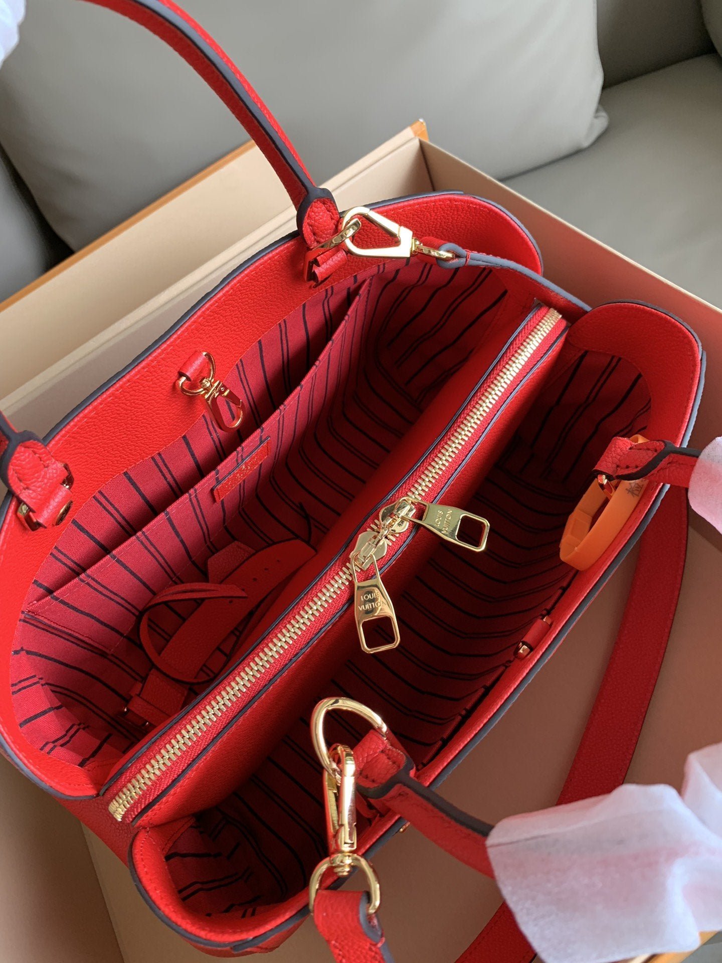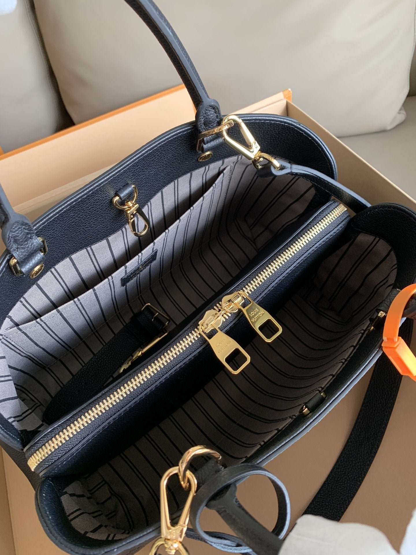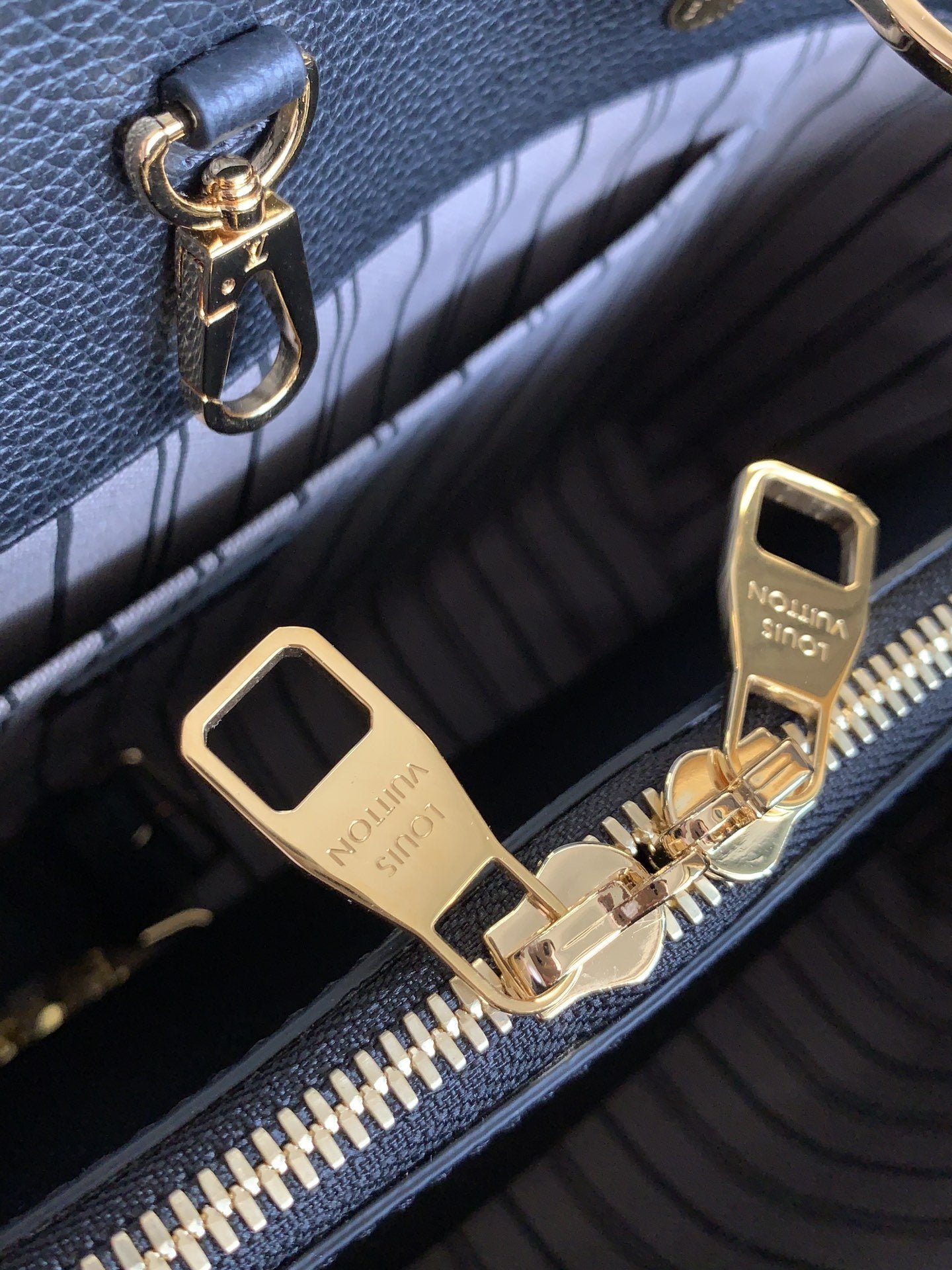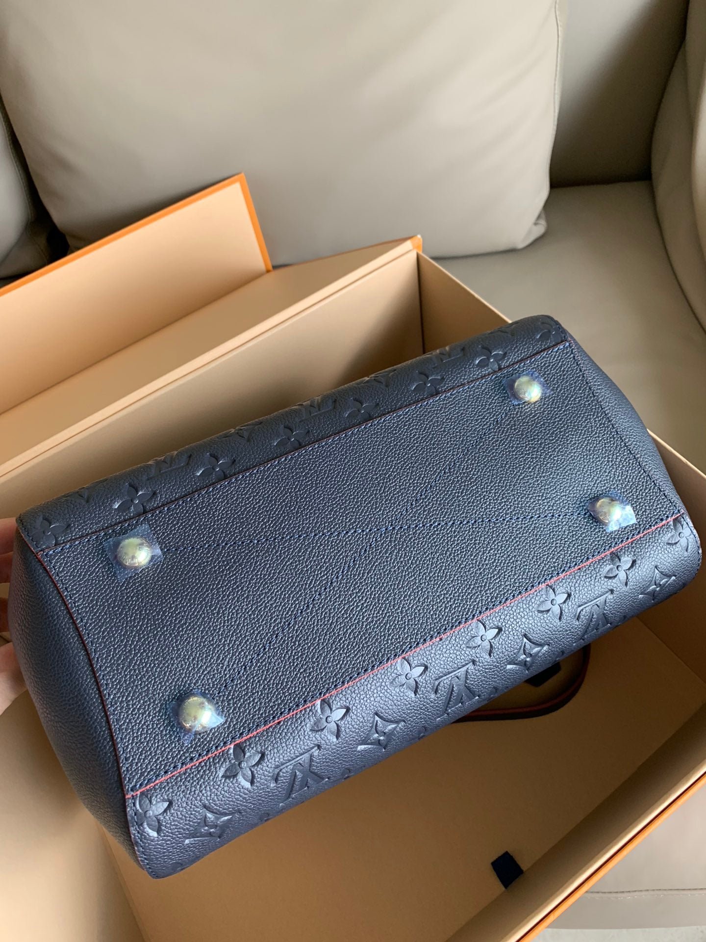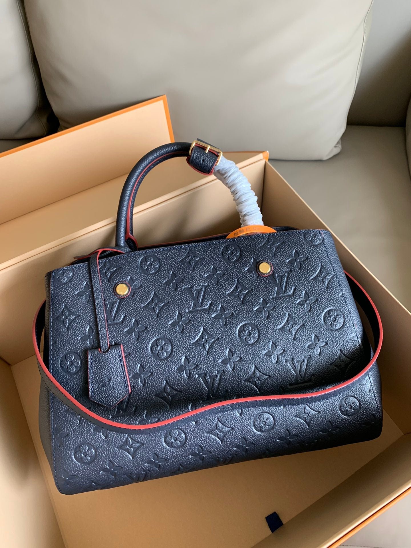 • Piel flexible granulada con motivo Monogram Empreinte grabado y piel flexible granulada