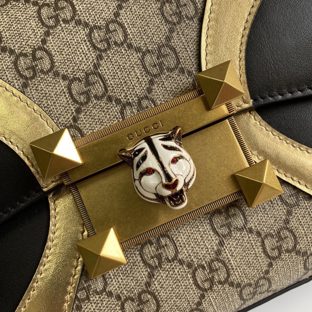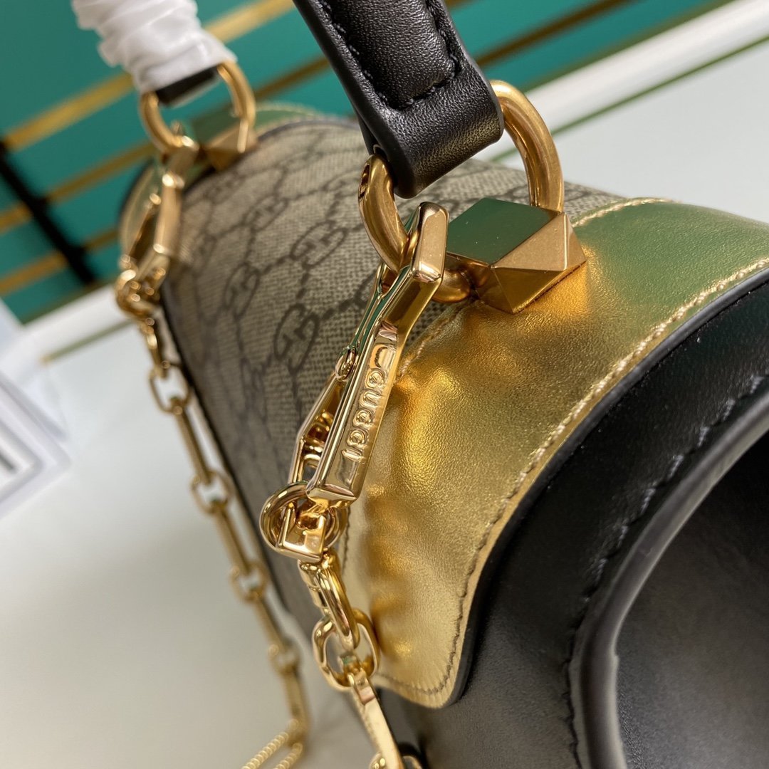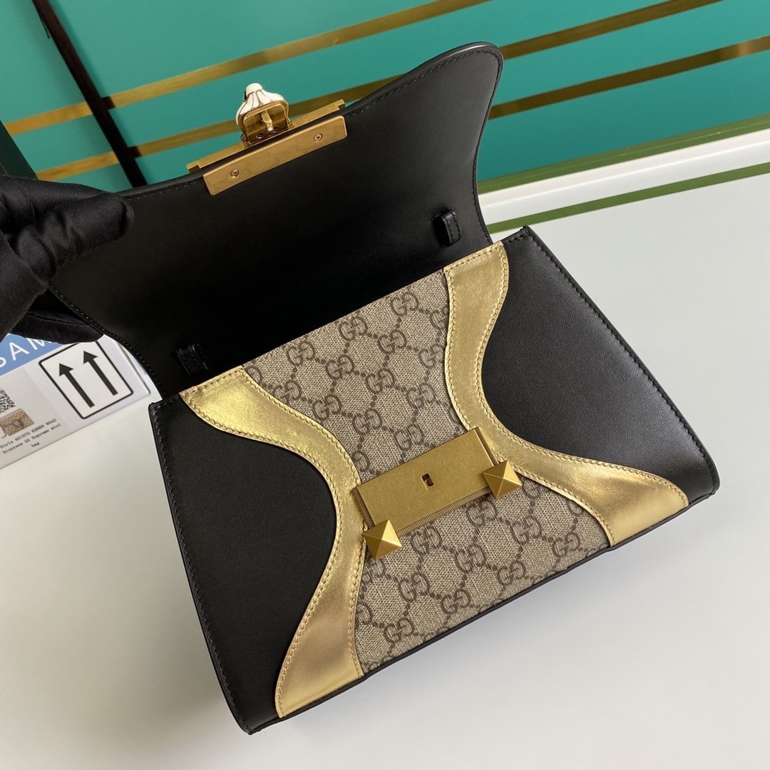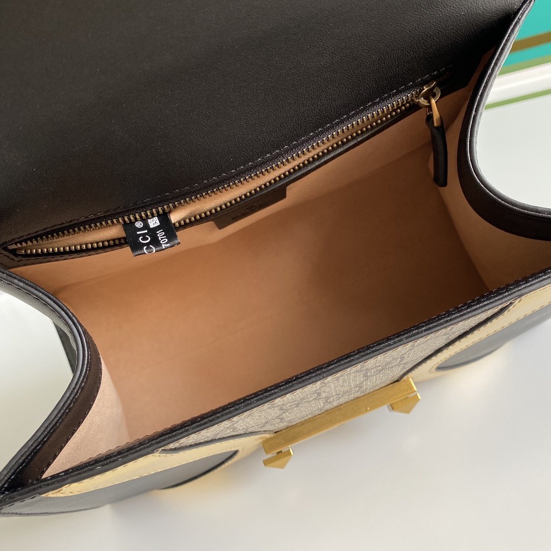 • Bolso Osiride pequeño en lona y piel y tono dorado de Gucci con motivo GG