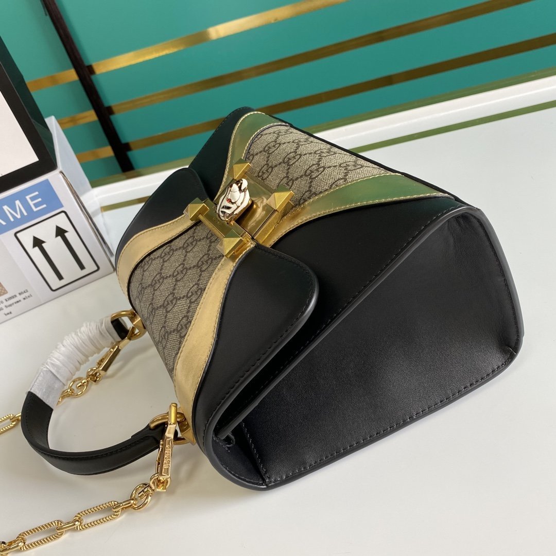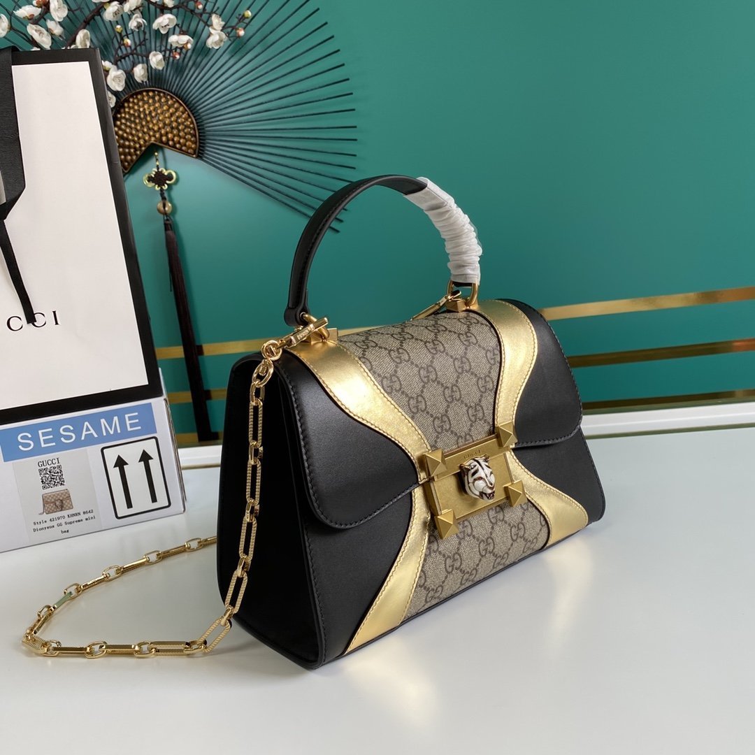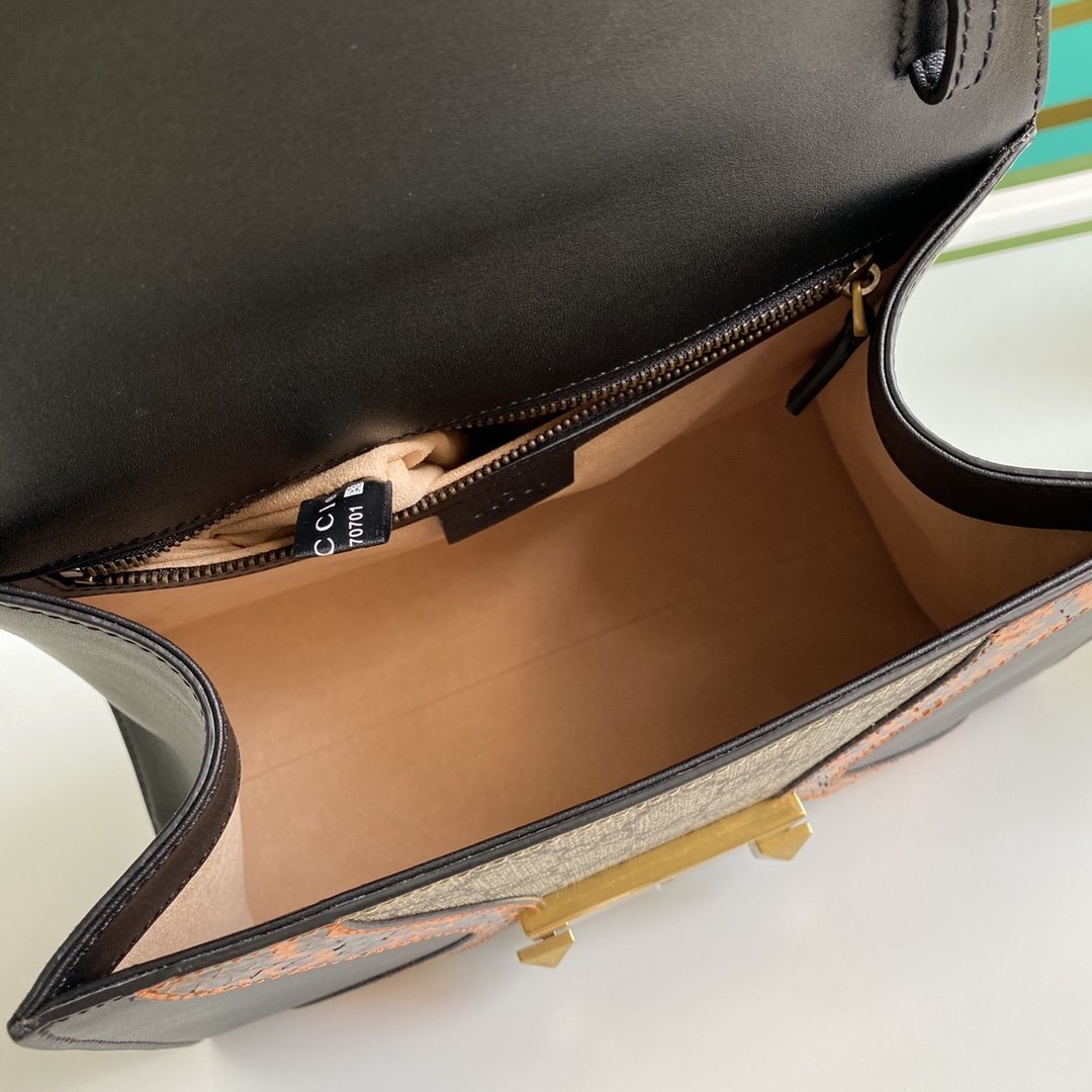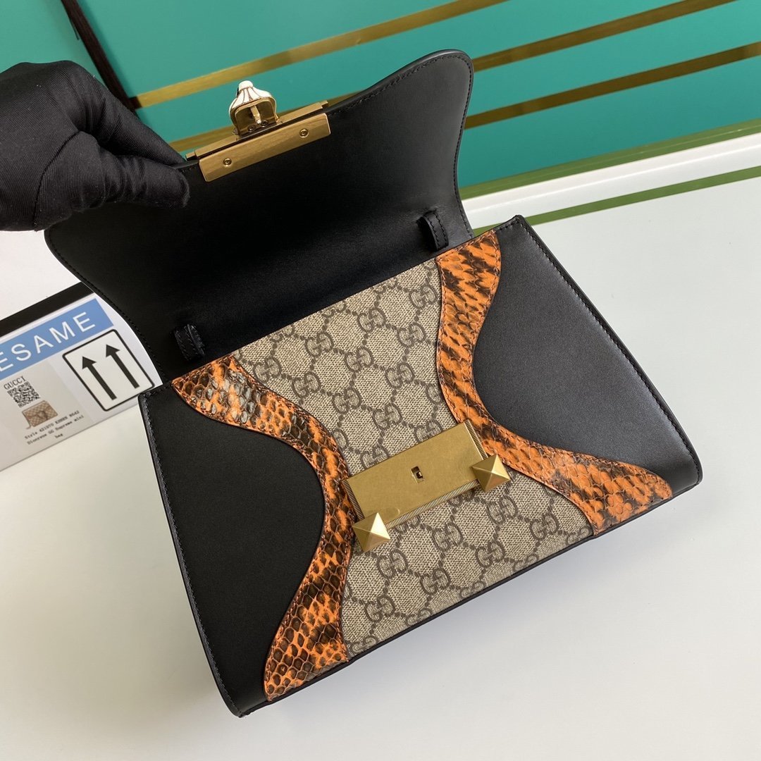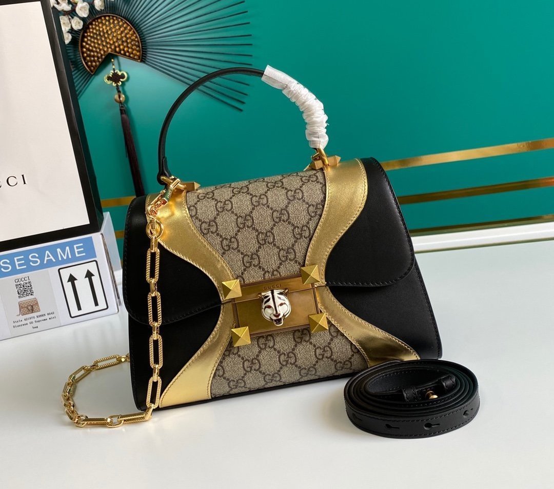 • Bolso Osiride pequeño en lona y piel y tono dorado de Gucci con motivo GG