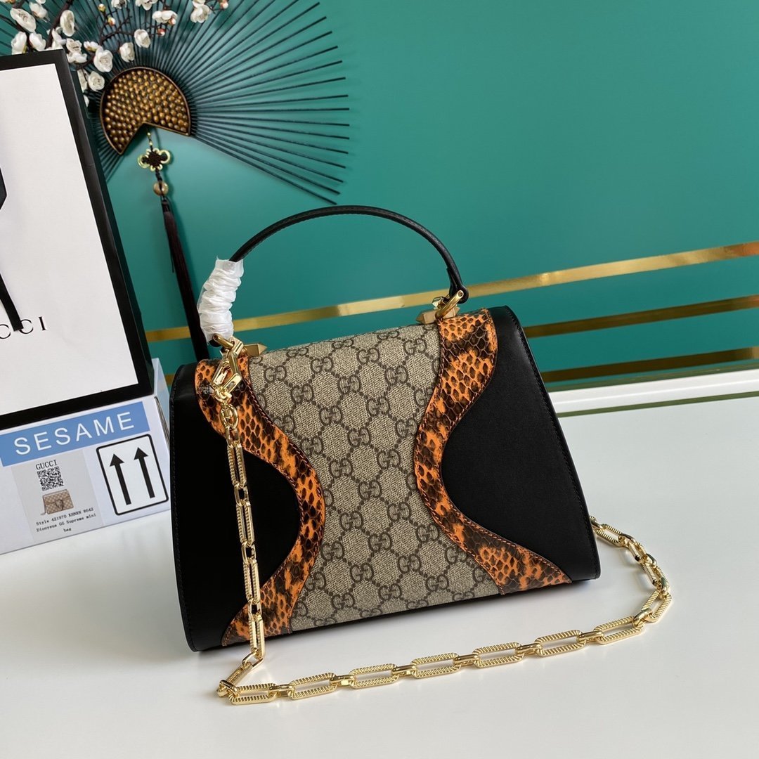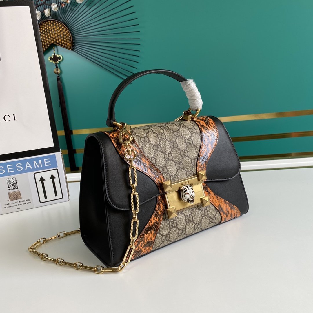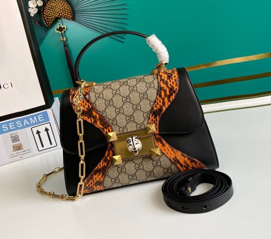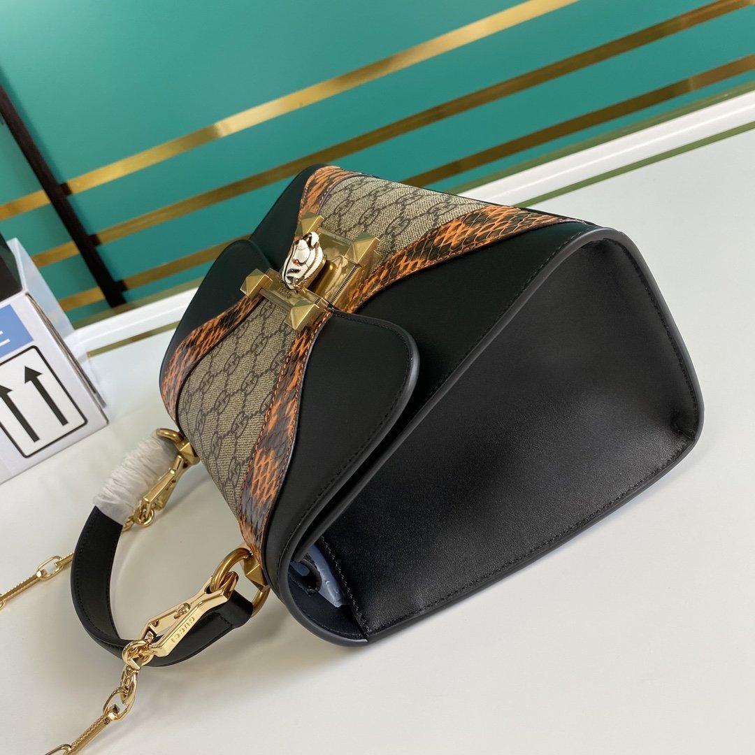 • Bolso Osiride pequeño en lona y piel y tono dorado de Gucci con motivo GG