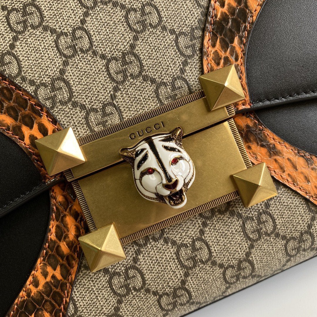 • Cierre metálico con cabeza de felino esmaltada con ojos de cristales Swarovski de color rojo