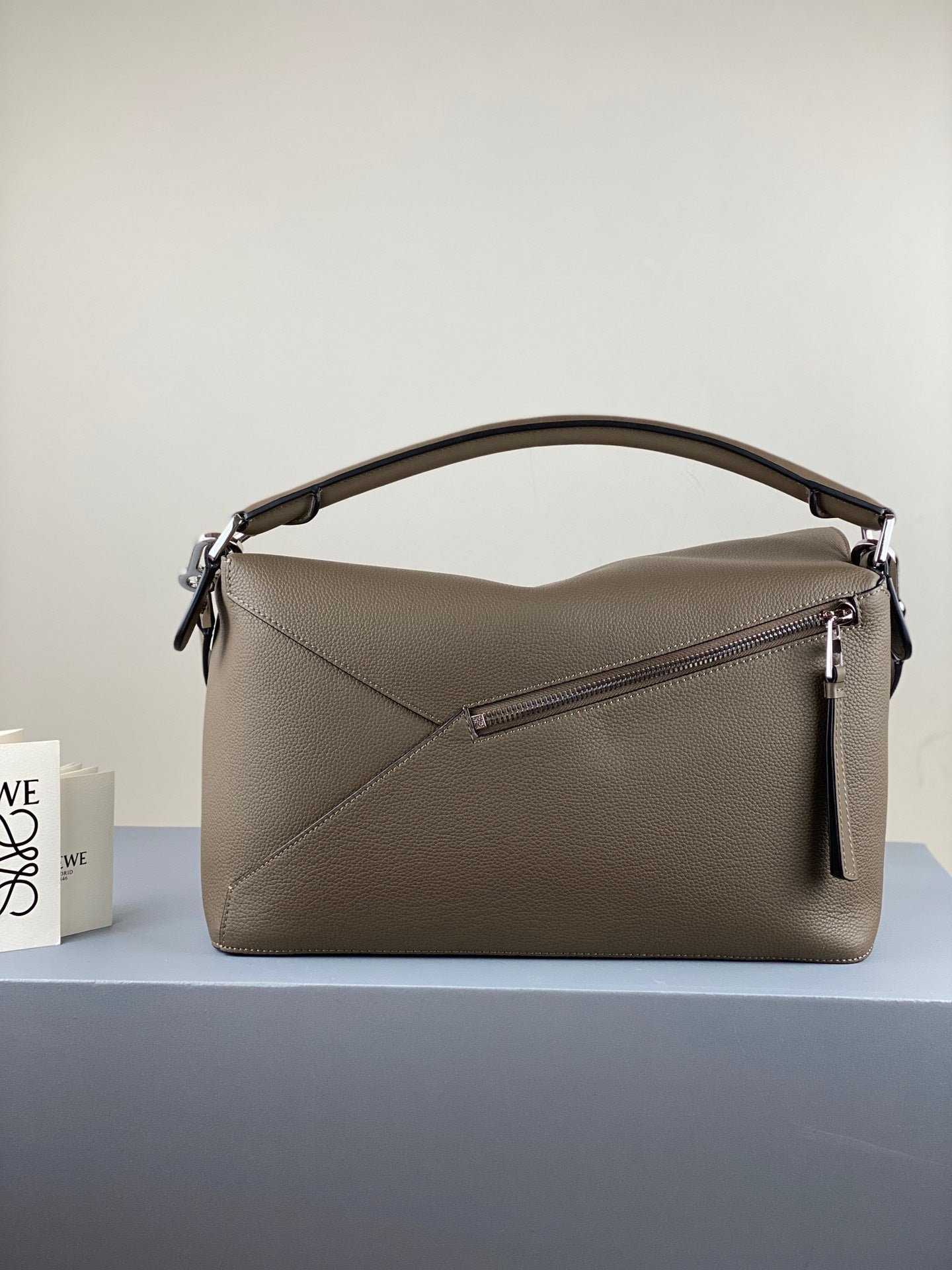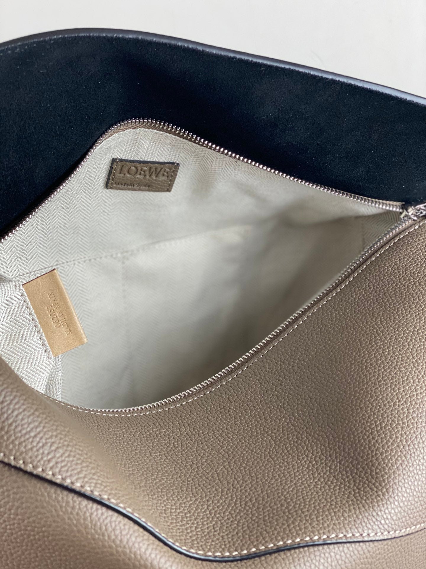 - Cierre de cremallera con tirador en piel de ternera