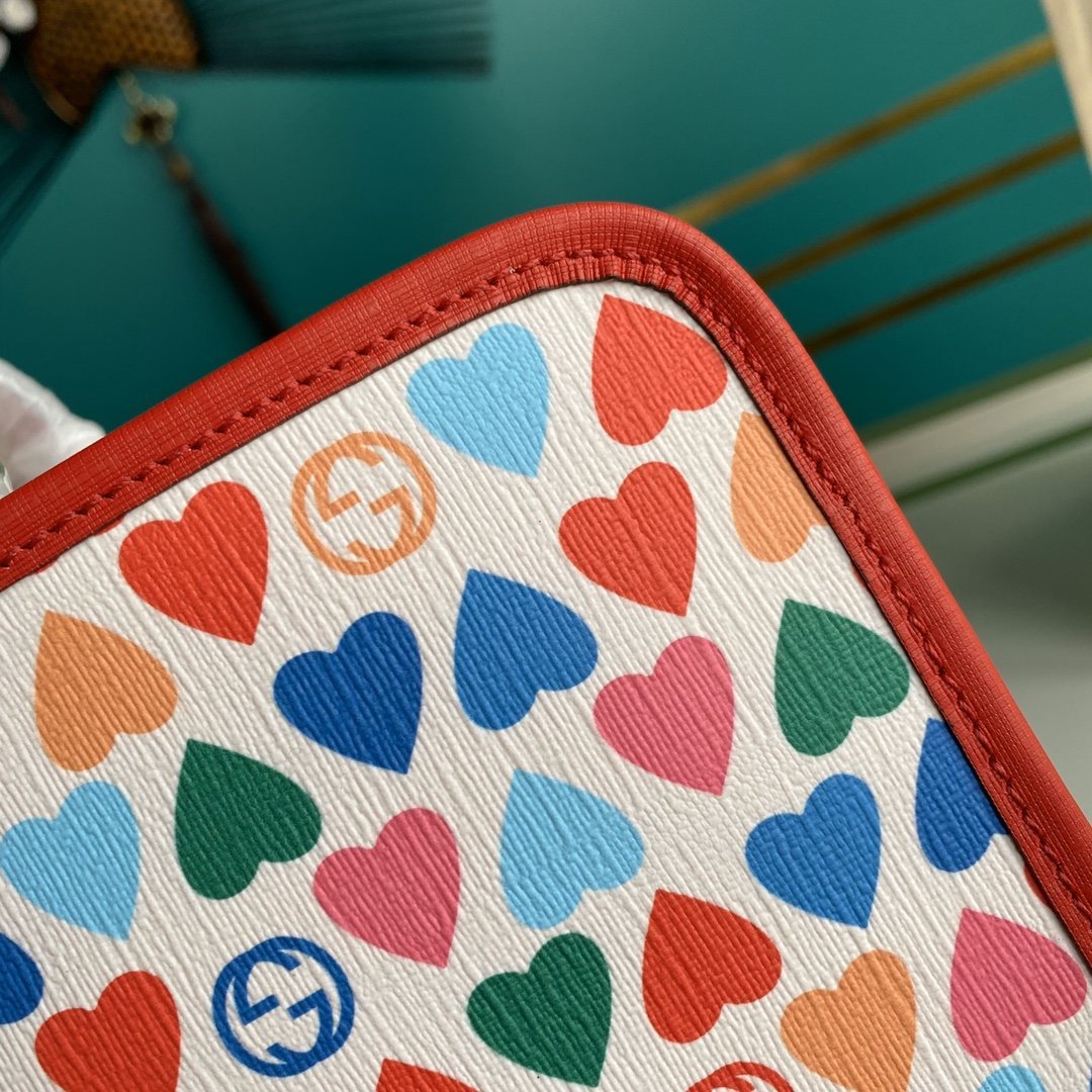 • Lona Supreme marfil con estampado de corazones GG, un material con un impacto medioambiental reducido
