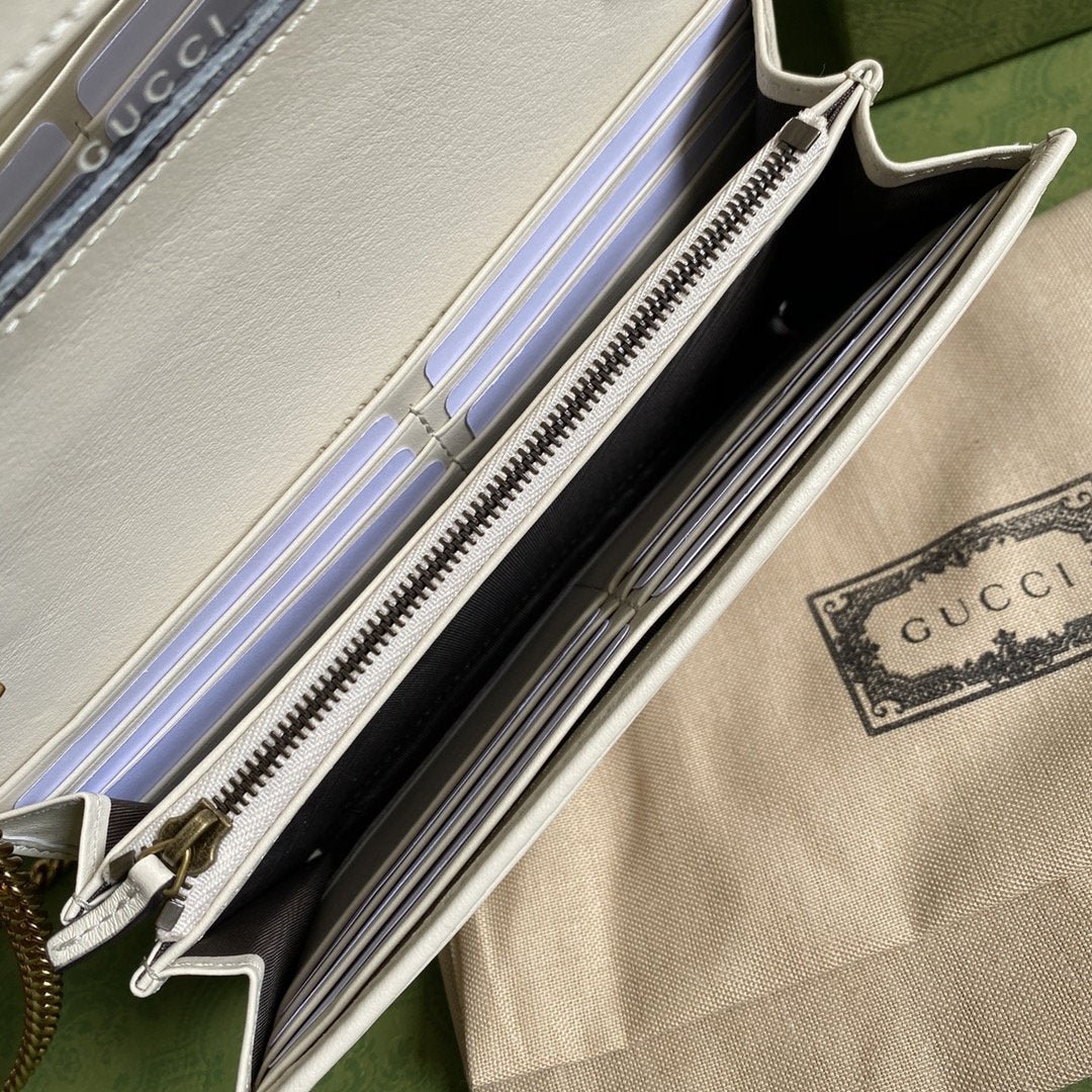 Placa del logo en tono dorado, detalle de bambú, cierre frontal con solapa, correa de cadena removible para el hombro, bolsillos internos con cremallera y compartimentos internos para tarjetas. Material: cuero.