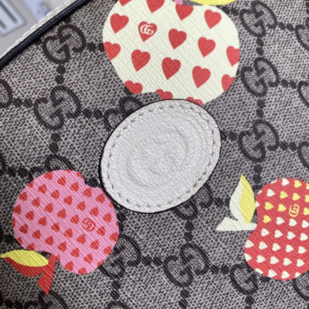- Lona GG Supreme en beige y ébano con estampado de manzana, un material con un impacto medioambiental reducido