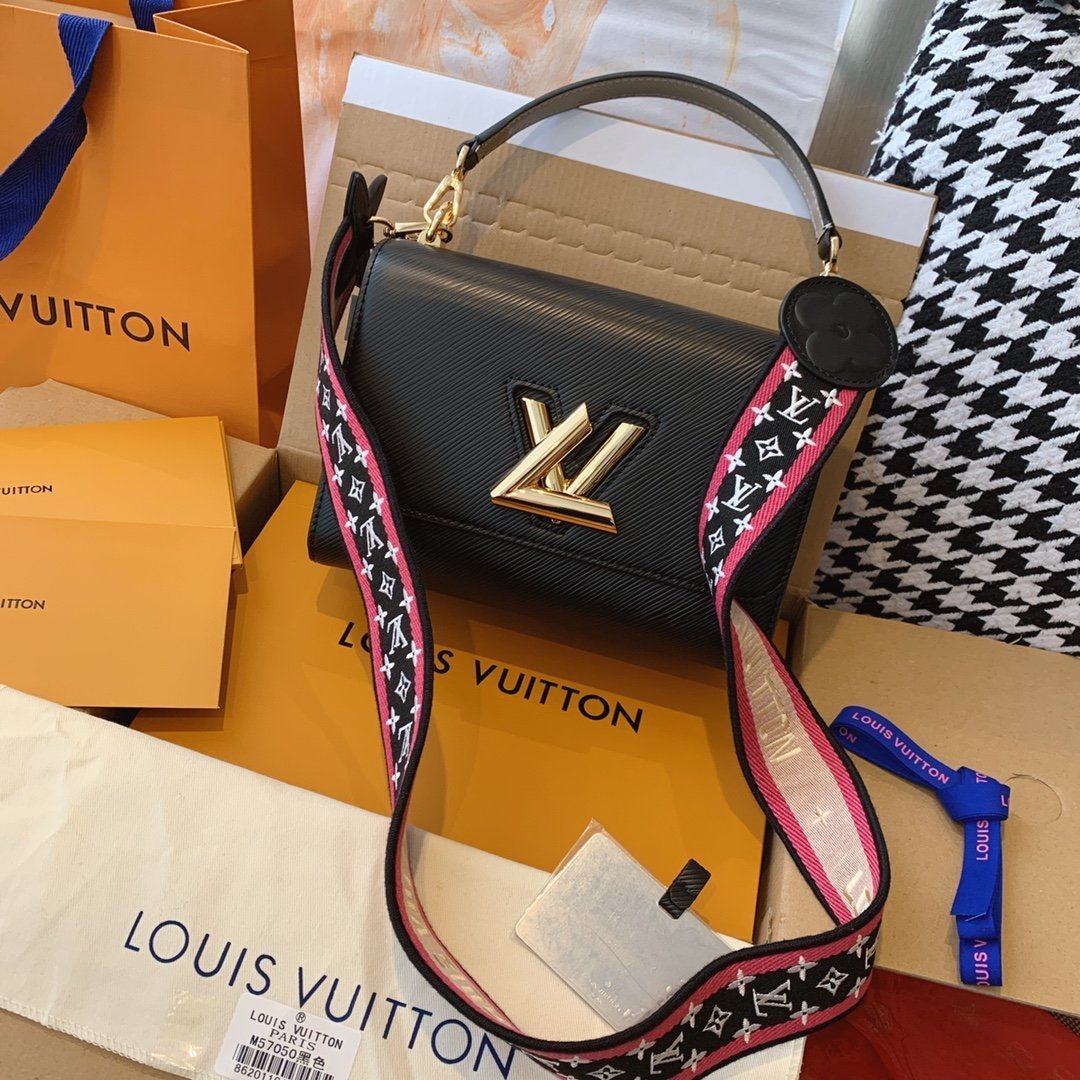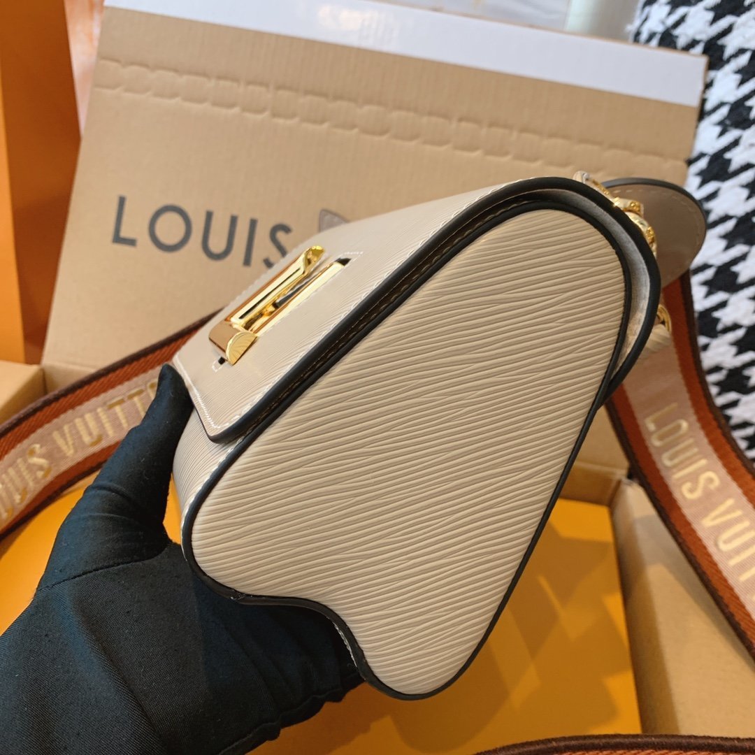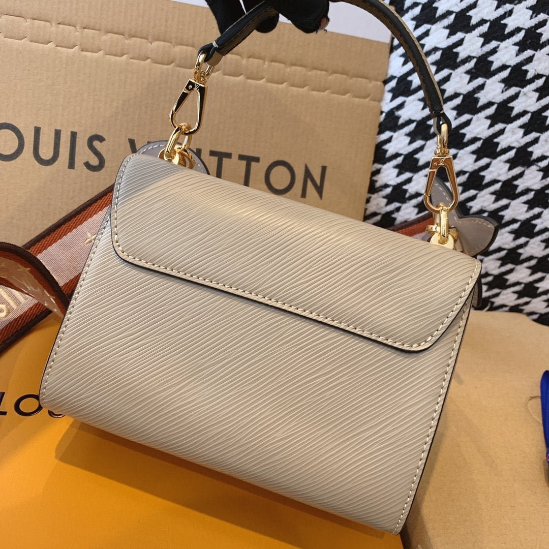 - Ribete en piel lisa, satén bordado y piel Epi