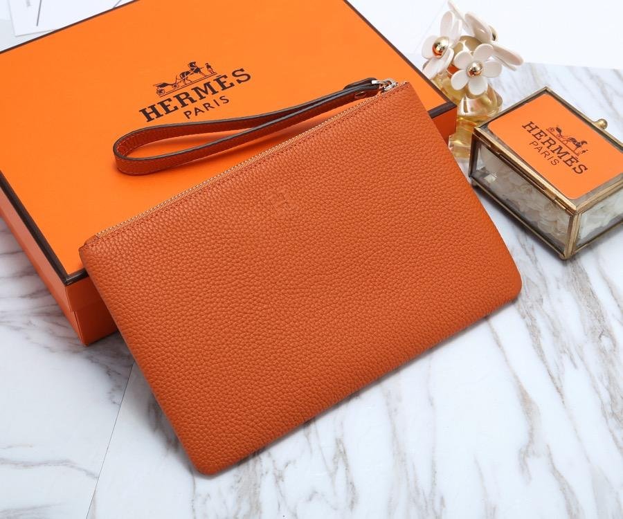 Cartera de mano en ternera, cierre de lámina en piel y hebilla ” H