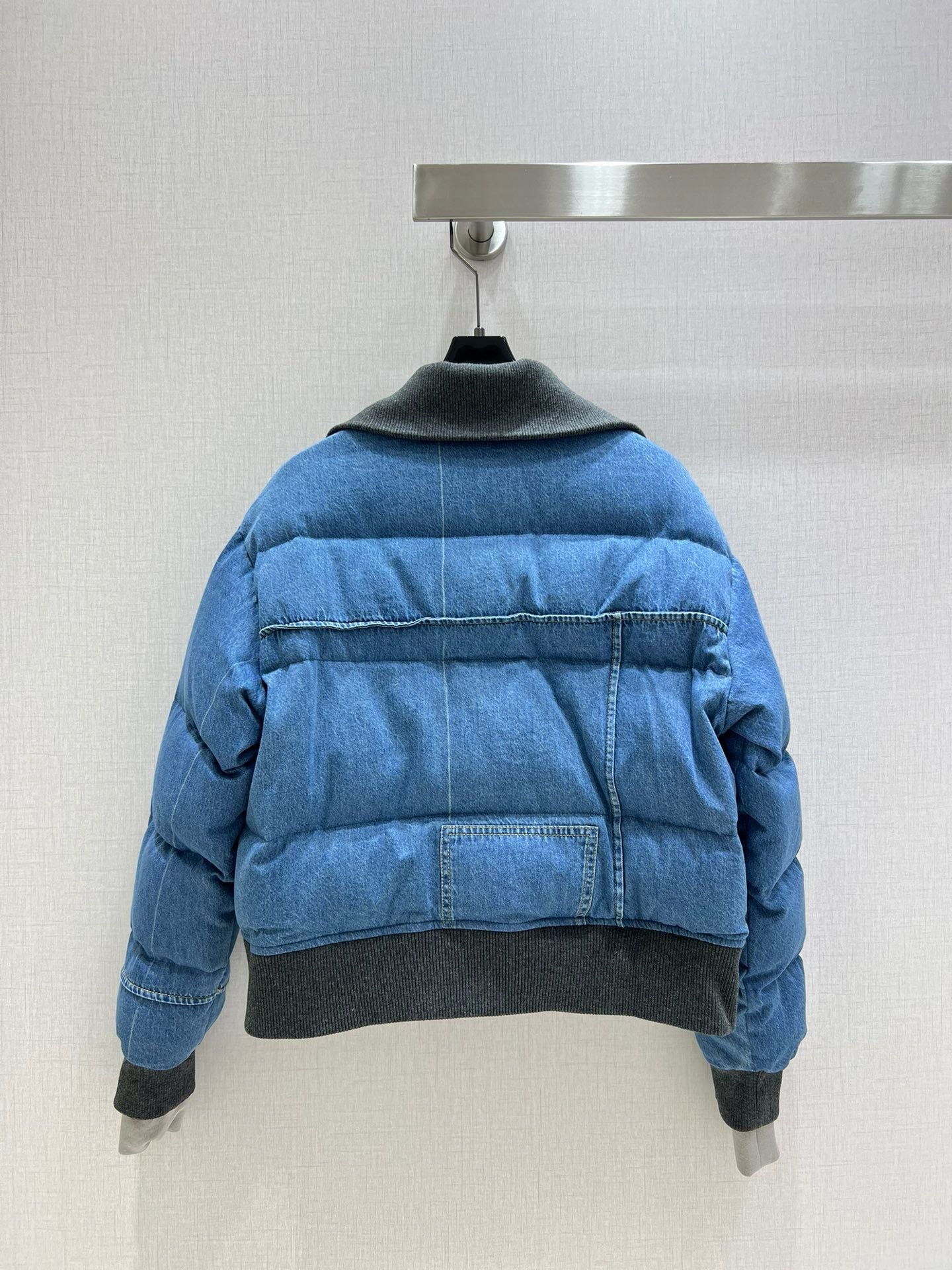 Este elegante modelo incluye un relleno de plumas para brindar volumen y calidez, así como puños, una cintura y un cuello alto de punto elástico para conseguir un ajuste entallado.