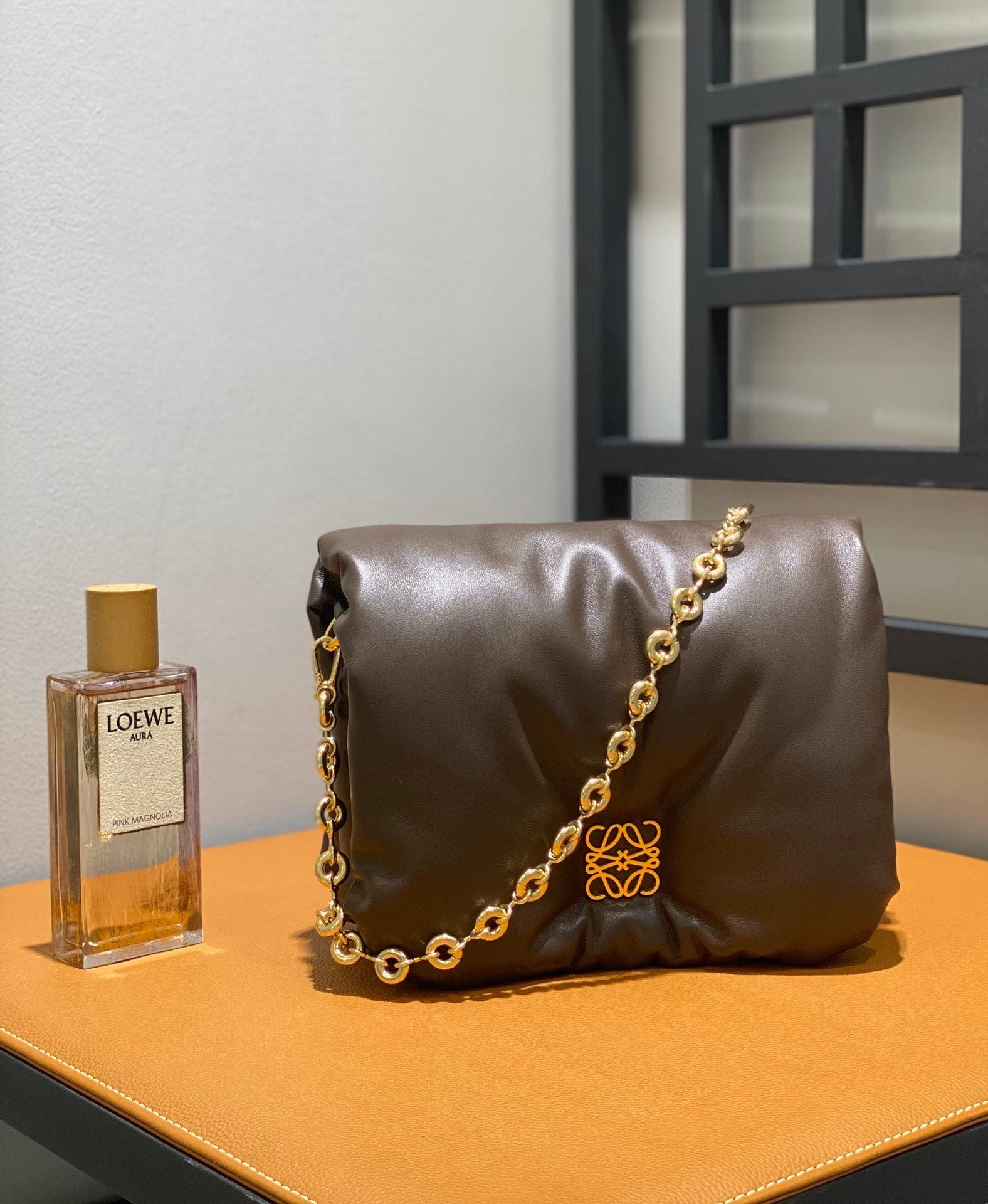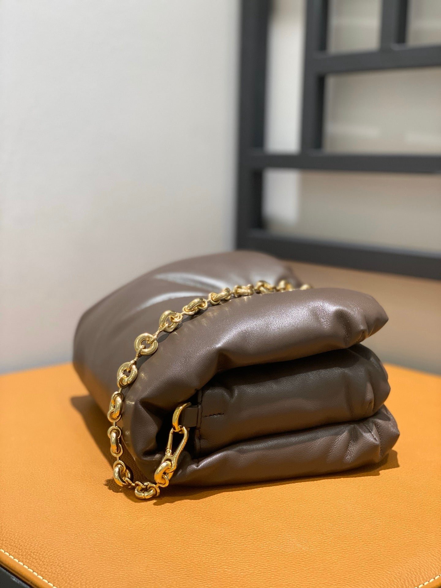 • Este modelo se presenta con una cadena extraíble y una bandolera de piel