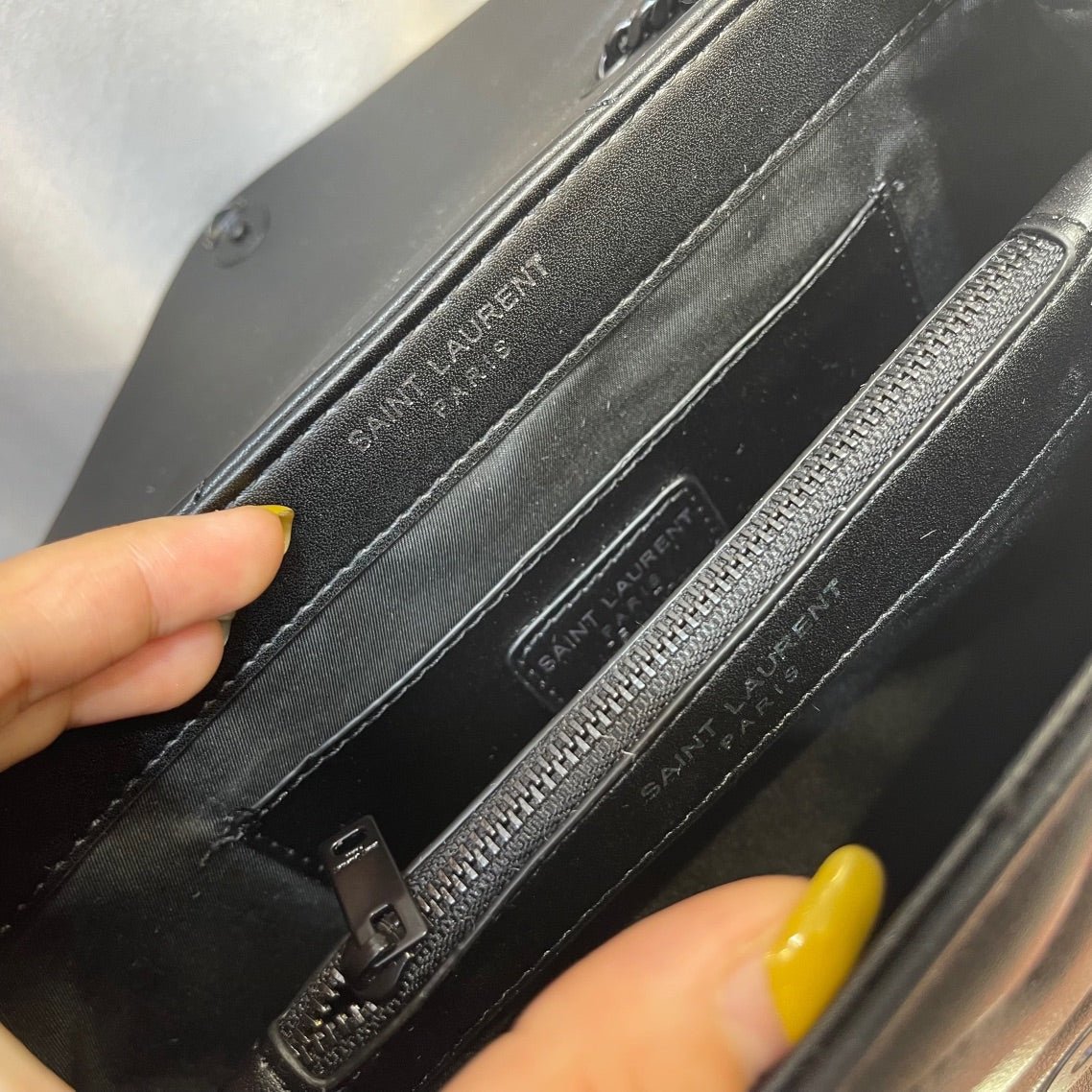 • Interior: 2 compartimentos principales, 1 bolsillo con cremallera, 3 ranuras para tarjetas