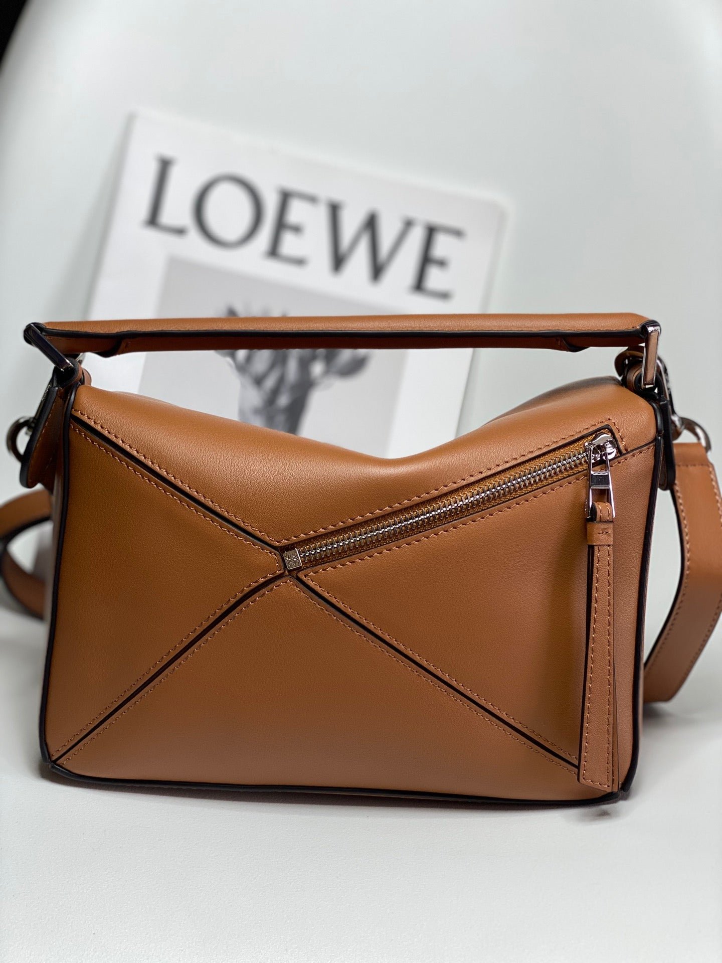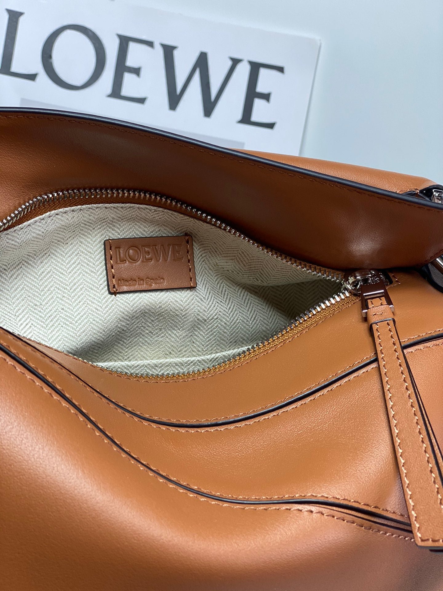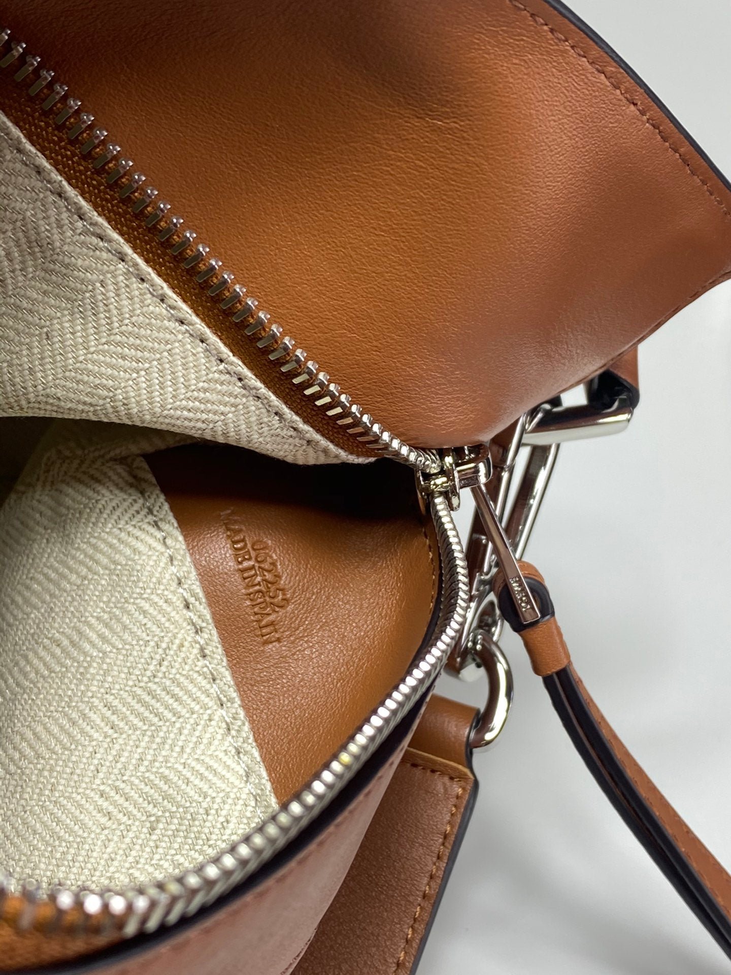 • Cierre de cremallera con tirador de piel de ternera