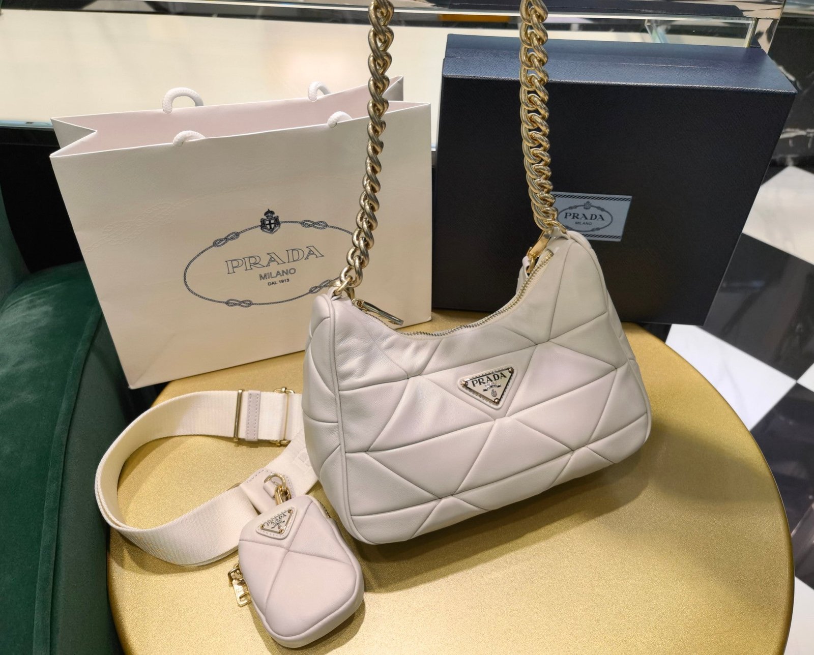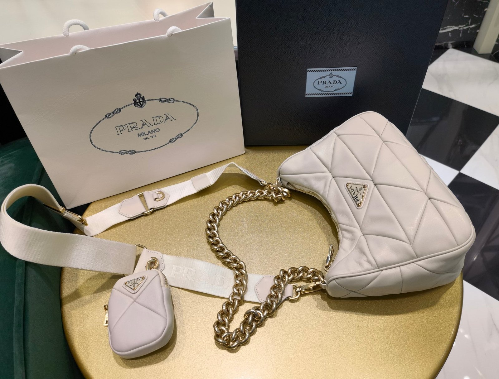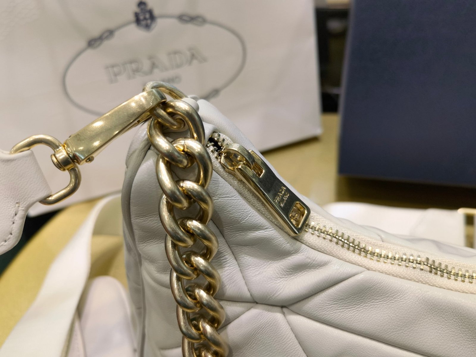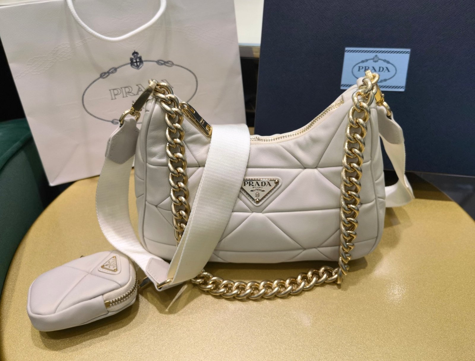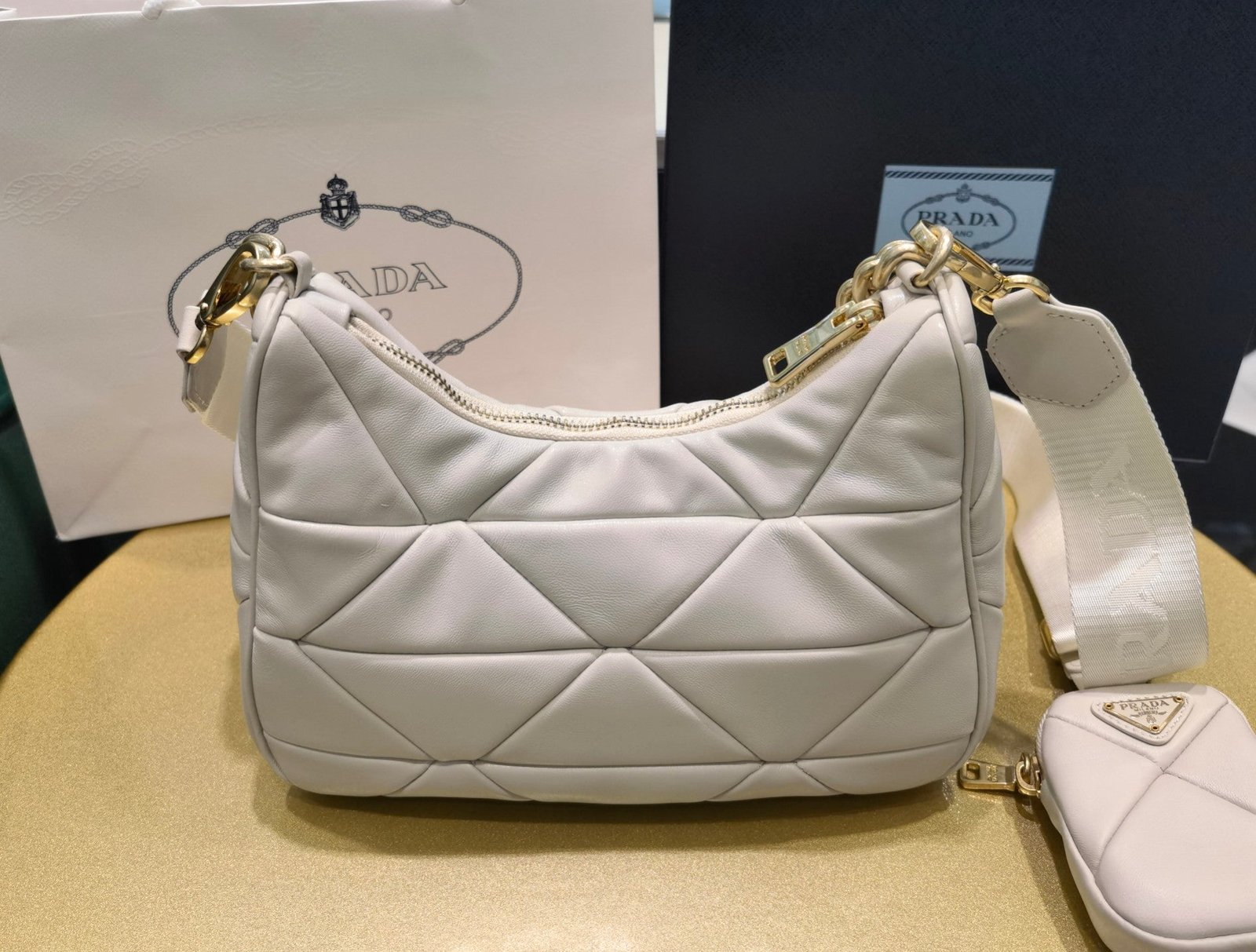 • Forro de Prada Nylon con logo y bolsillo con cremallera