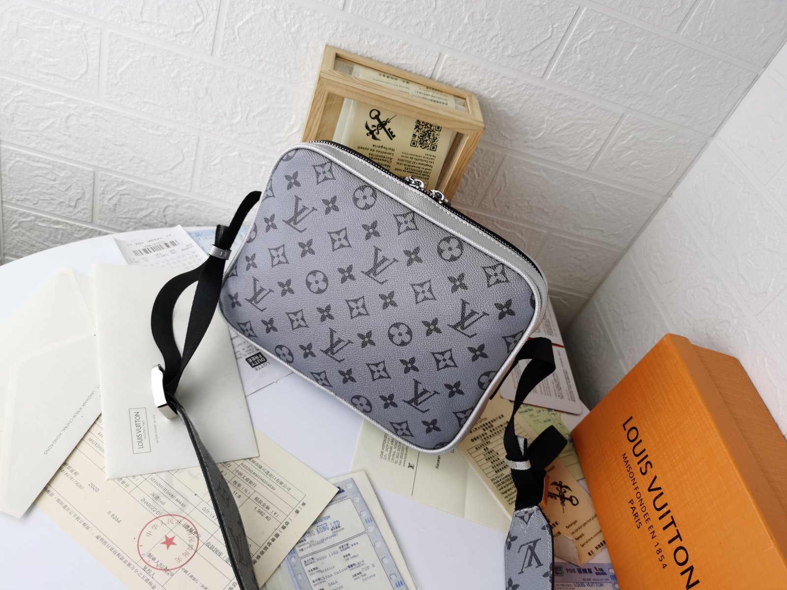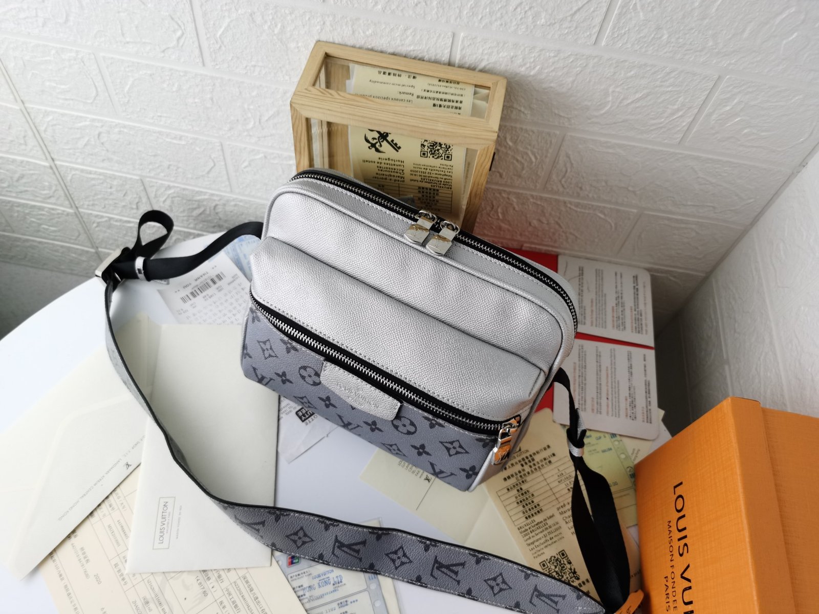 - Piel Taïga y lona Monogram Eclipse revestida