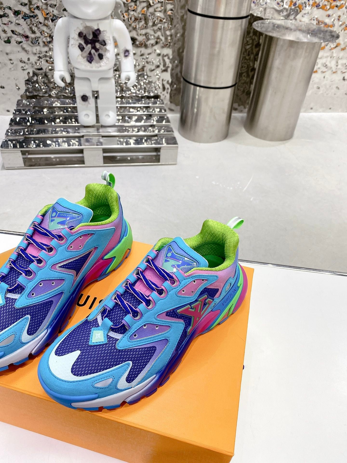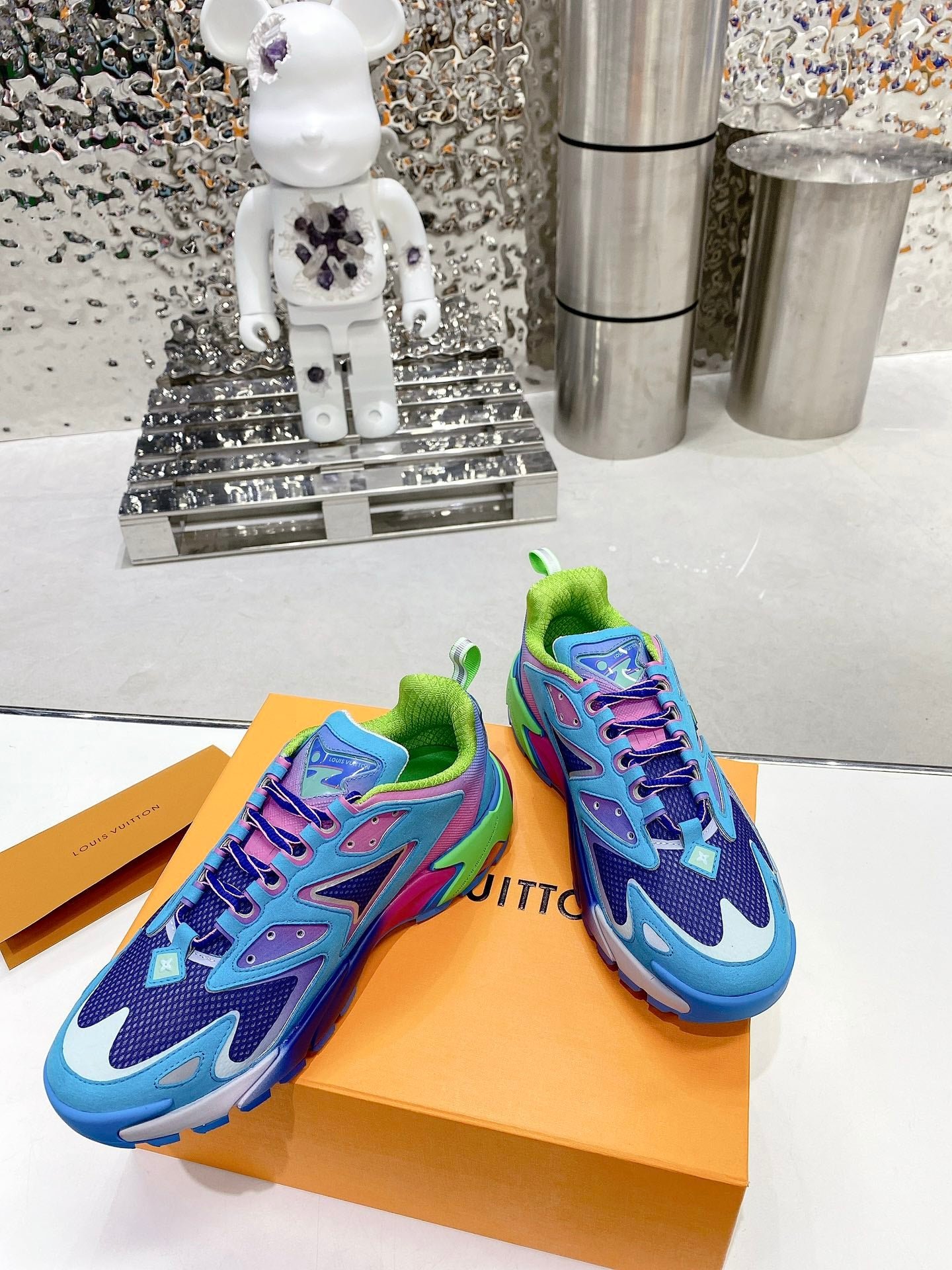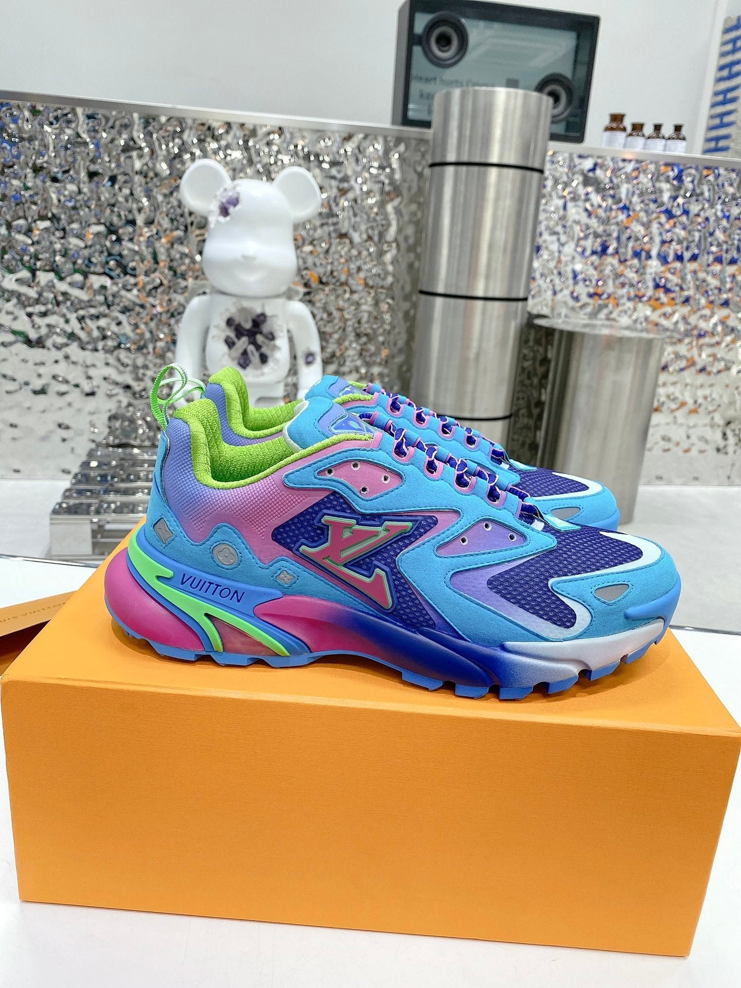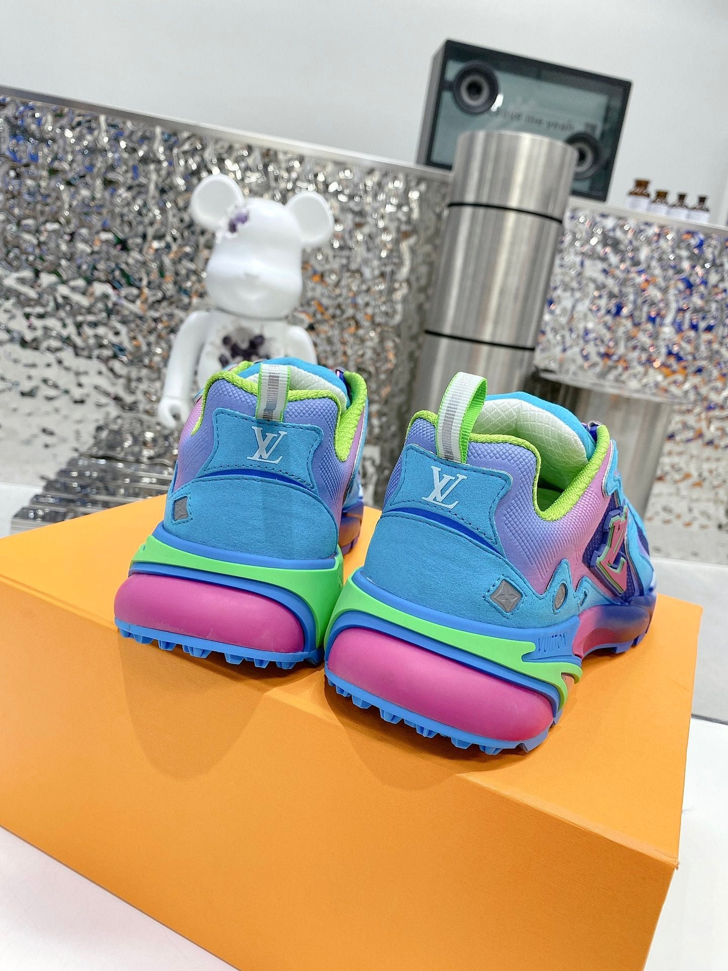 - Logotipo LV Initials y Monogram Flowers reflectantes en el lateral