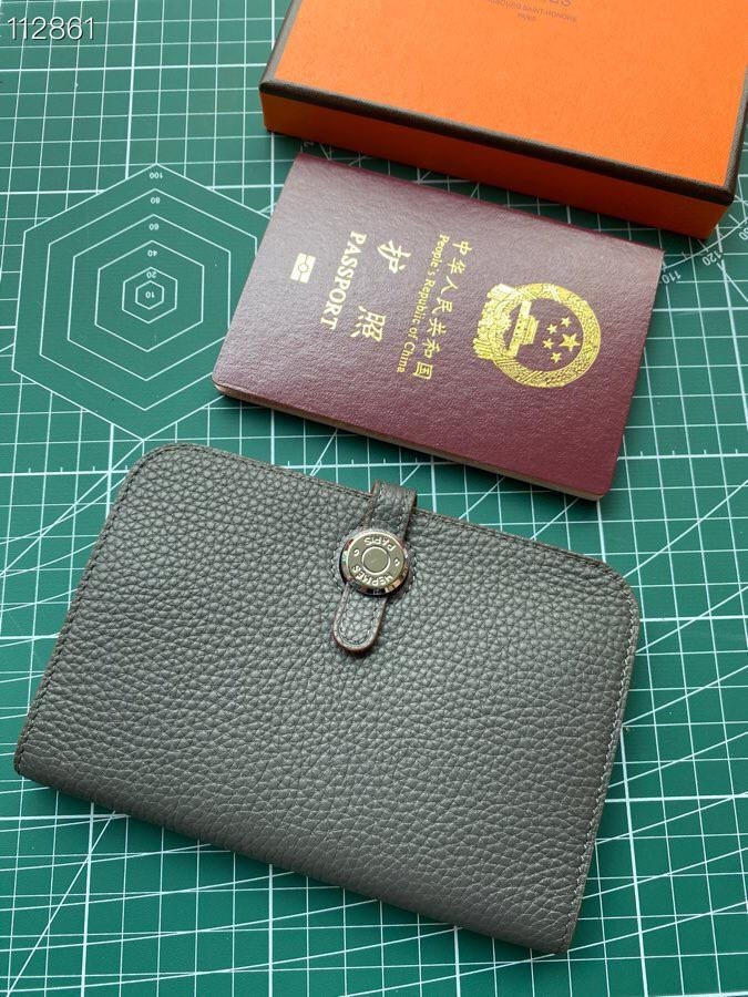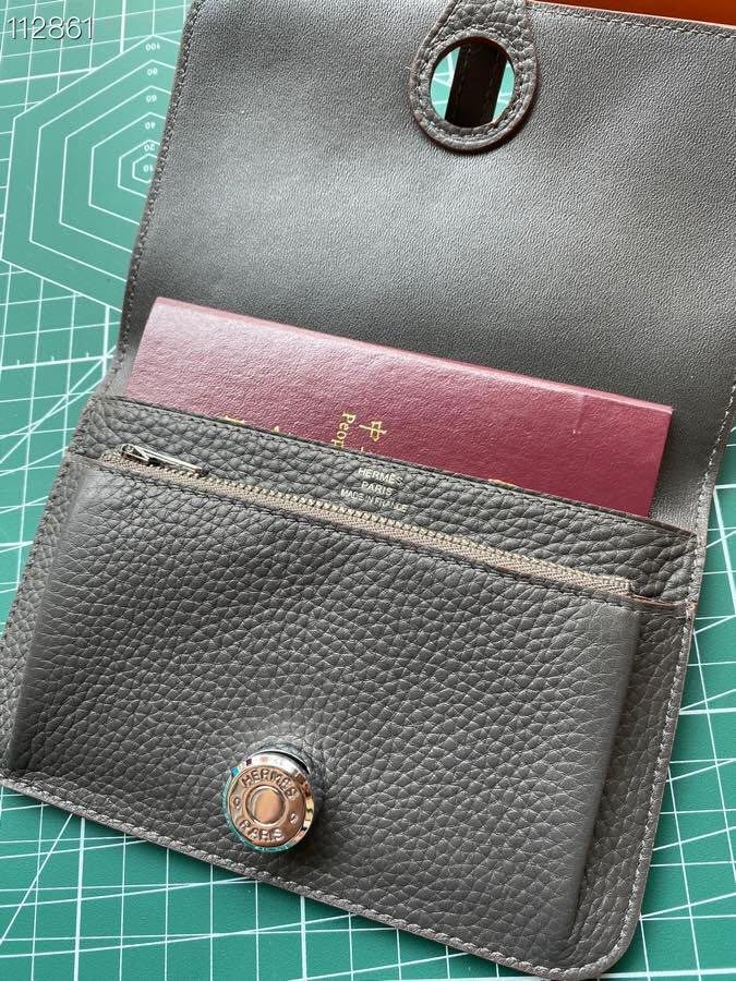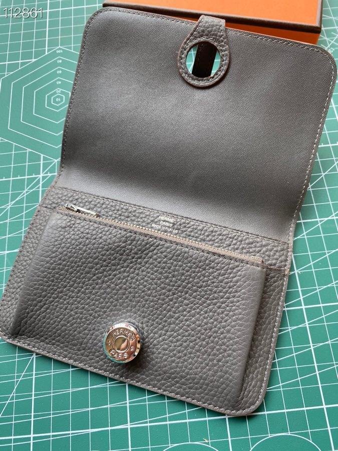 Cartera combinada en ternera Togo, forro en cordero, cierre “Clou de Selle” plateado paladiado