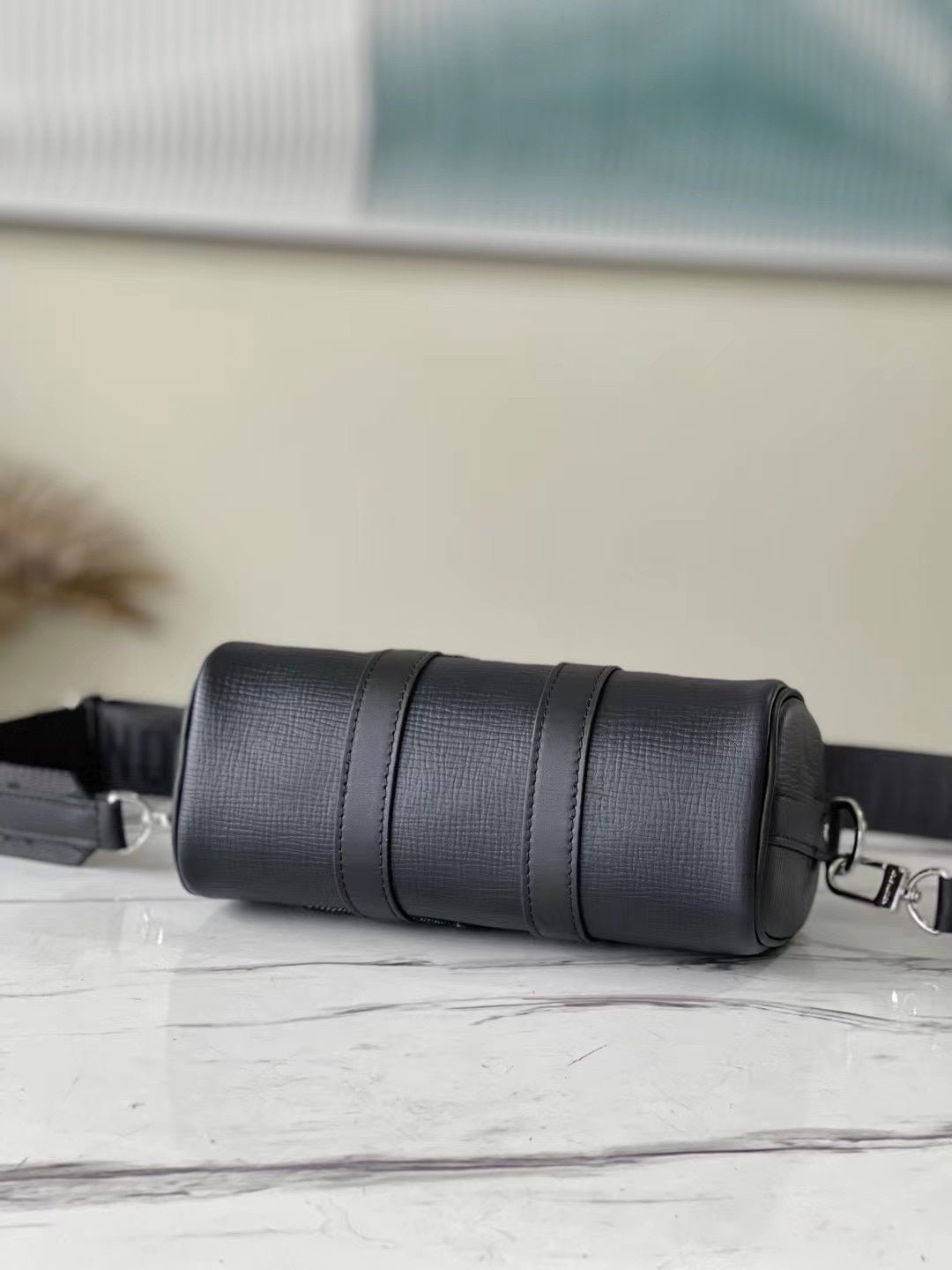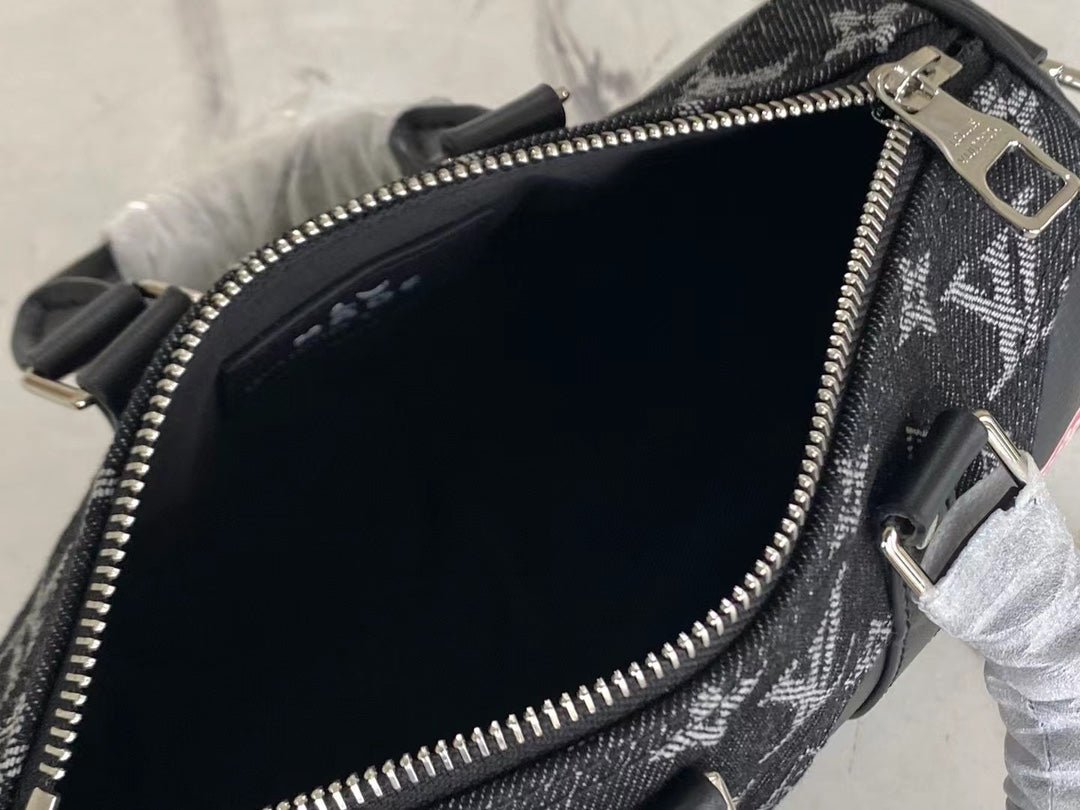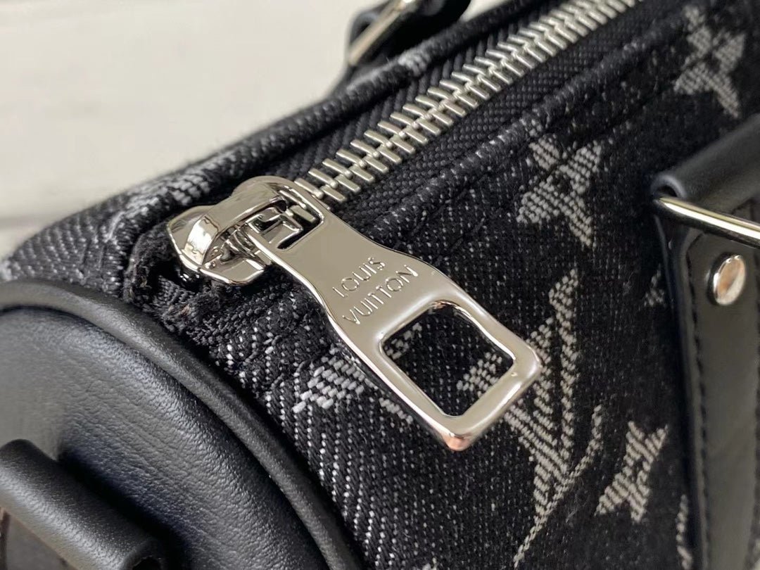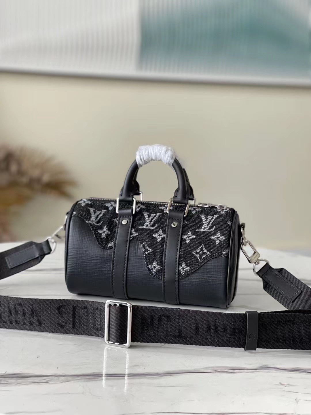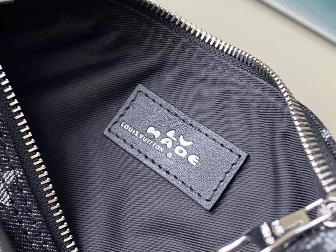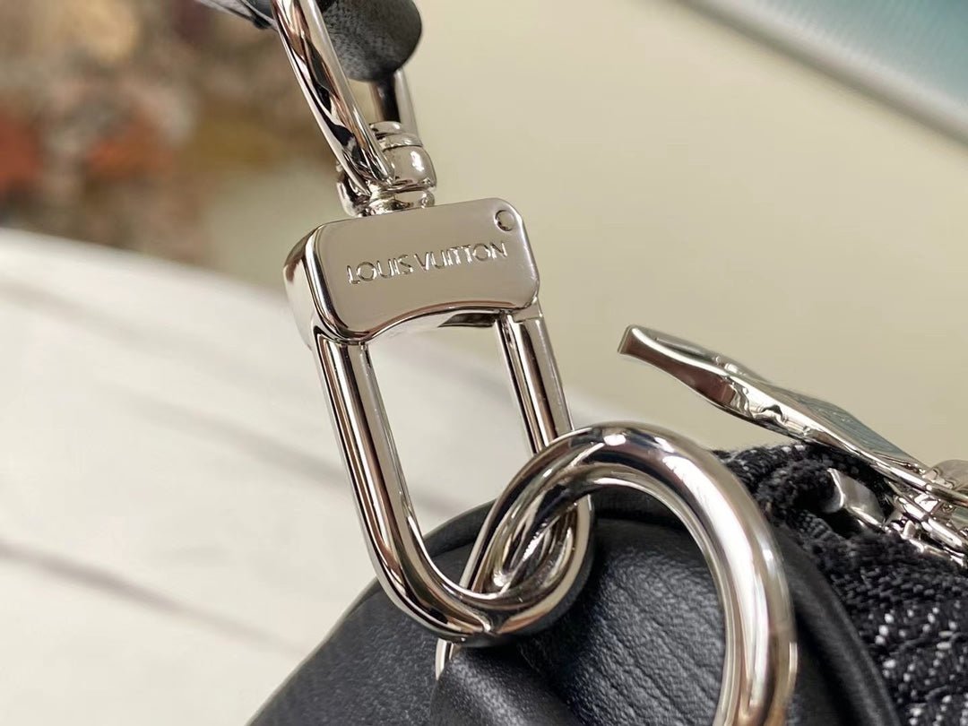 • Tejido denim Monogram y piel Taurillon de color negro