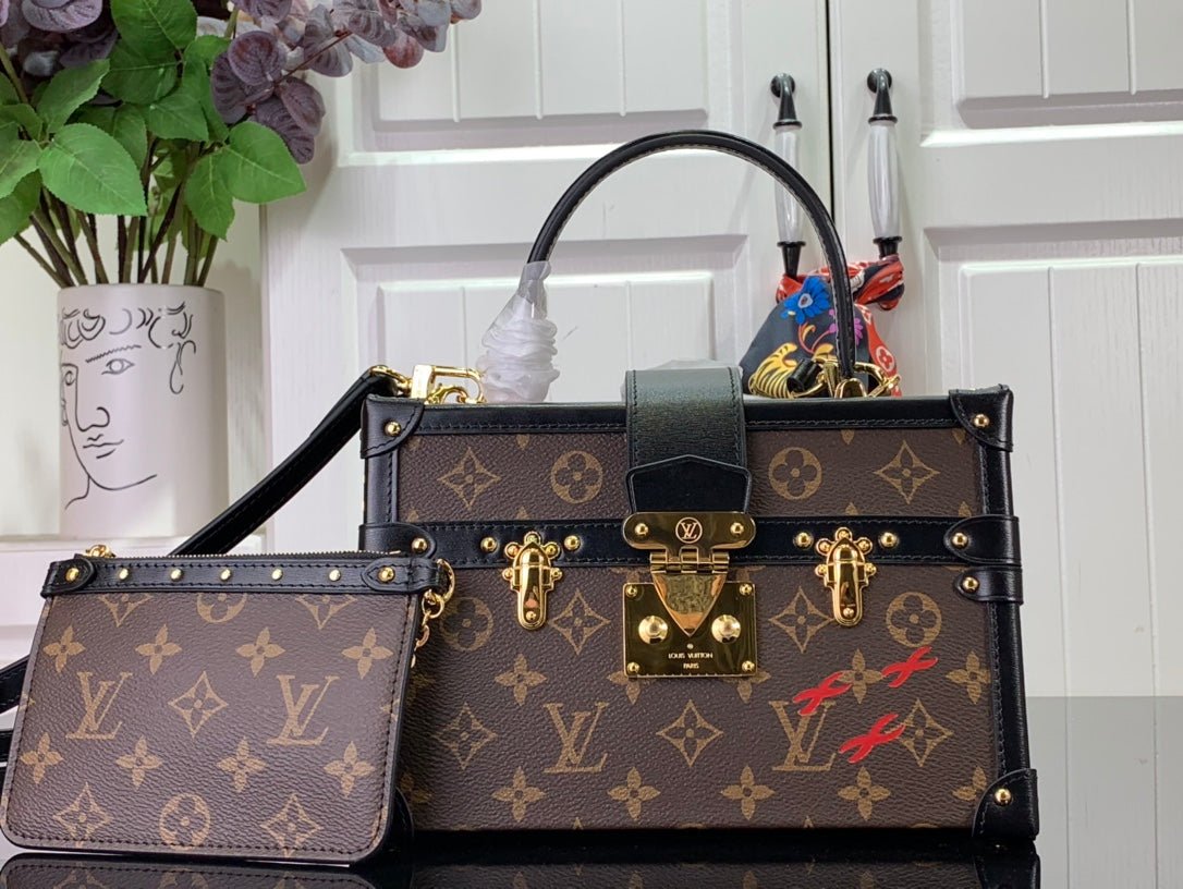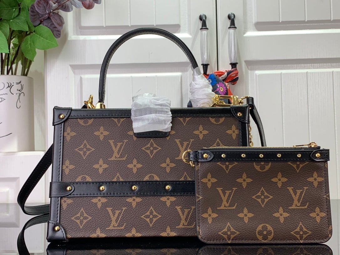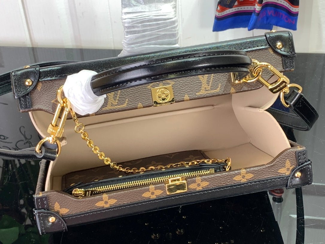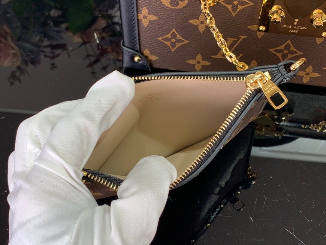 - Cartera plana en el interior con motivo Monogram, cierre de cremallera y cadena de color dorado