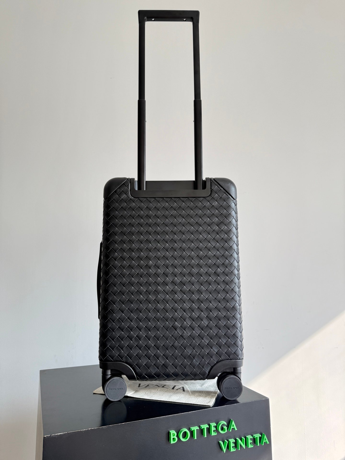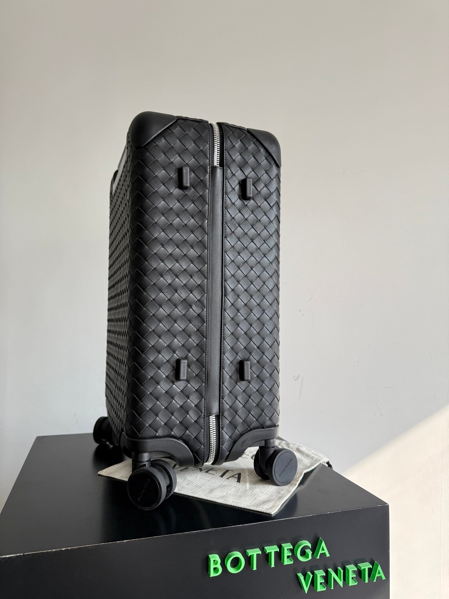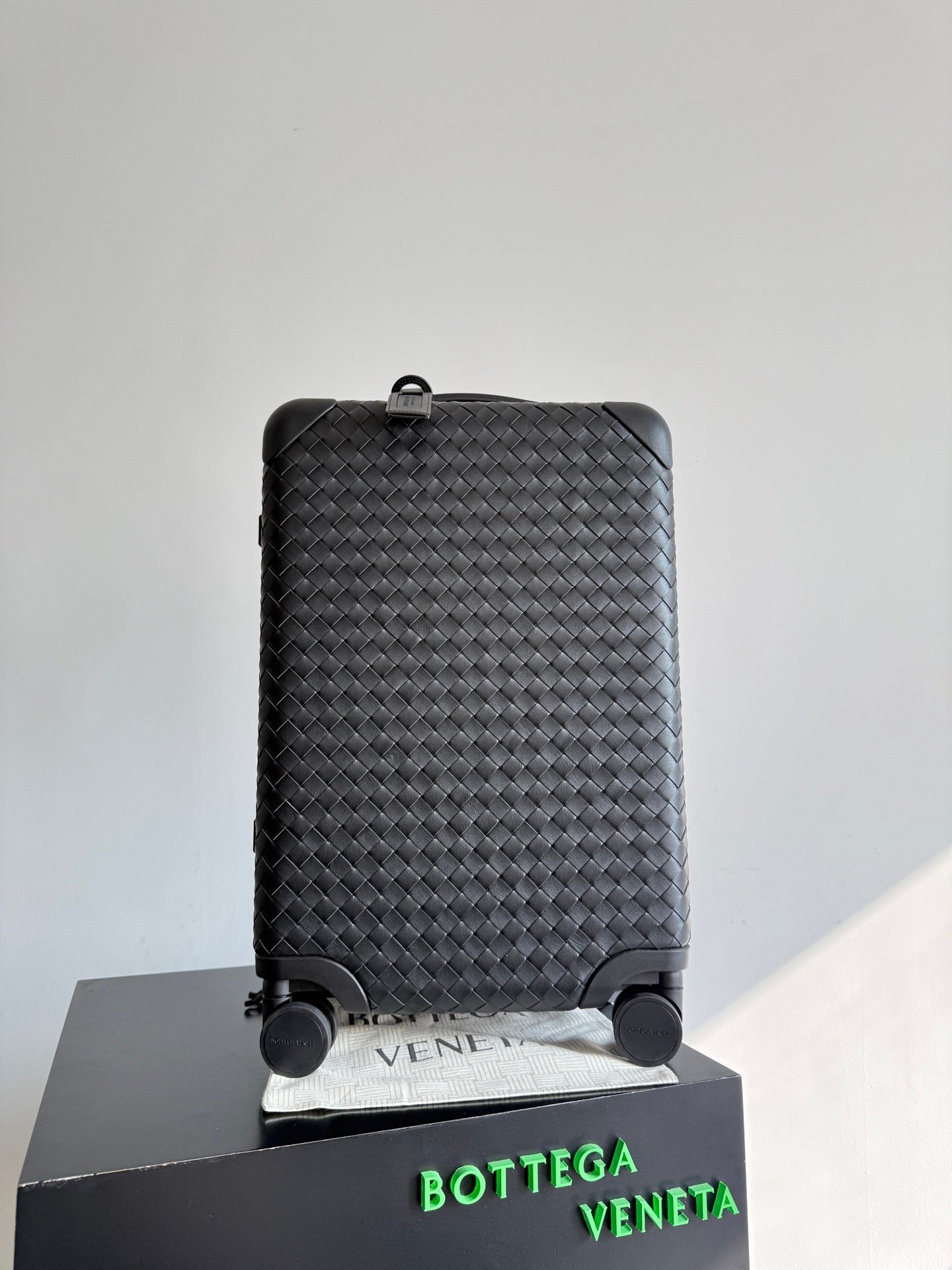Carro de cabina con carcasa de ABS duradera y moldeada a medida envuelta en cuero de becerro Intrecciato flexible