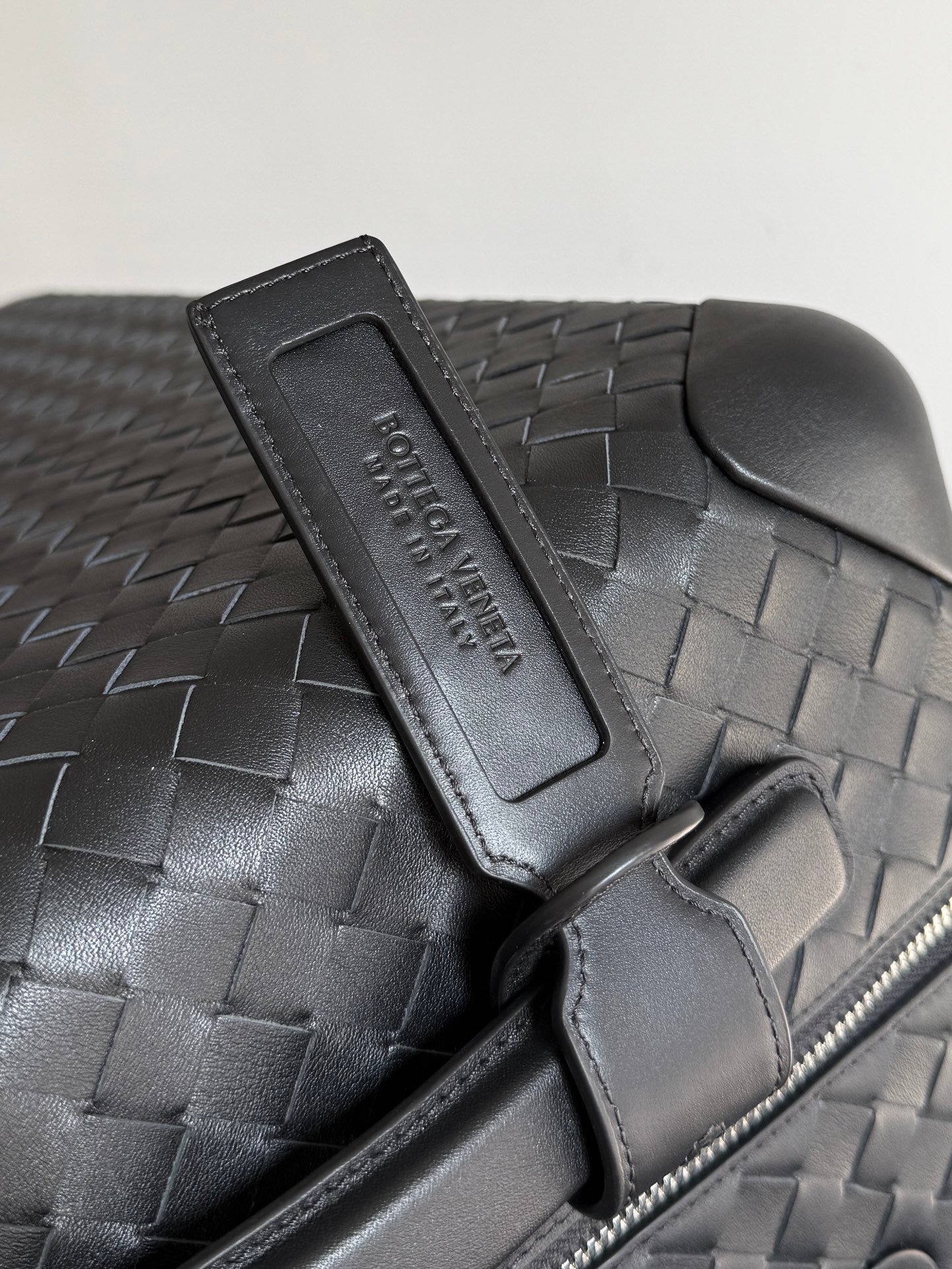 • Soporte de etiqueta de cuero Intrecciato desmontable