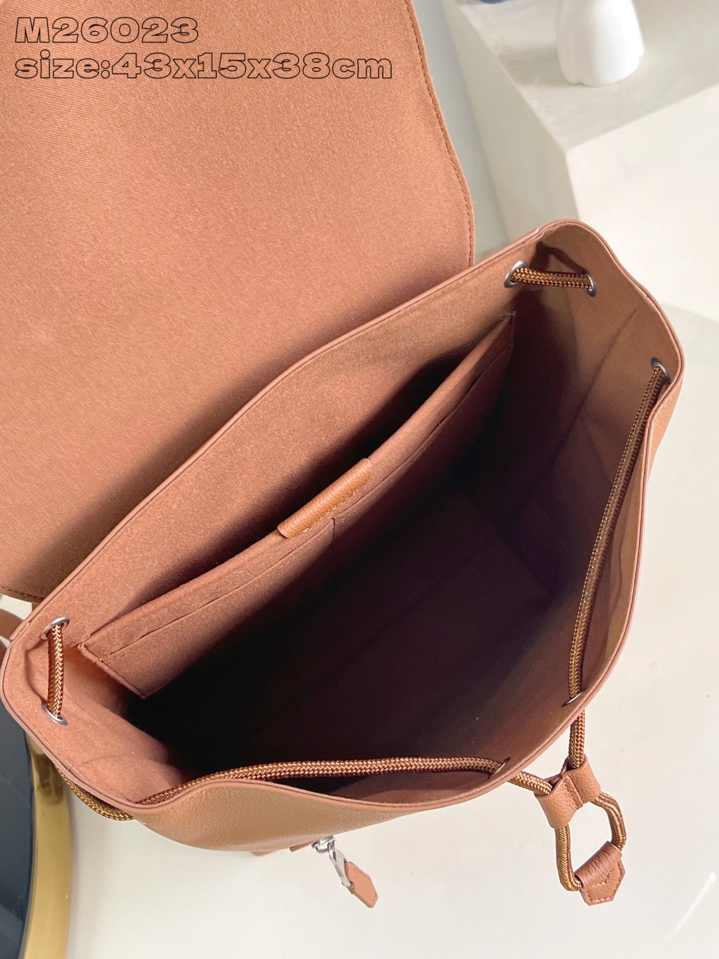 - Tres bolsillos planos acolchados en el interior con capacidad para un ordenador portátil de 16″