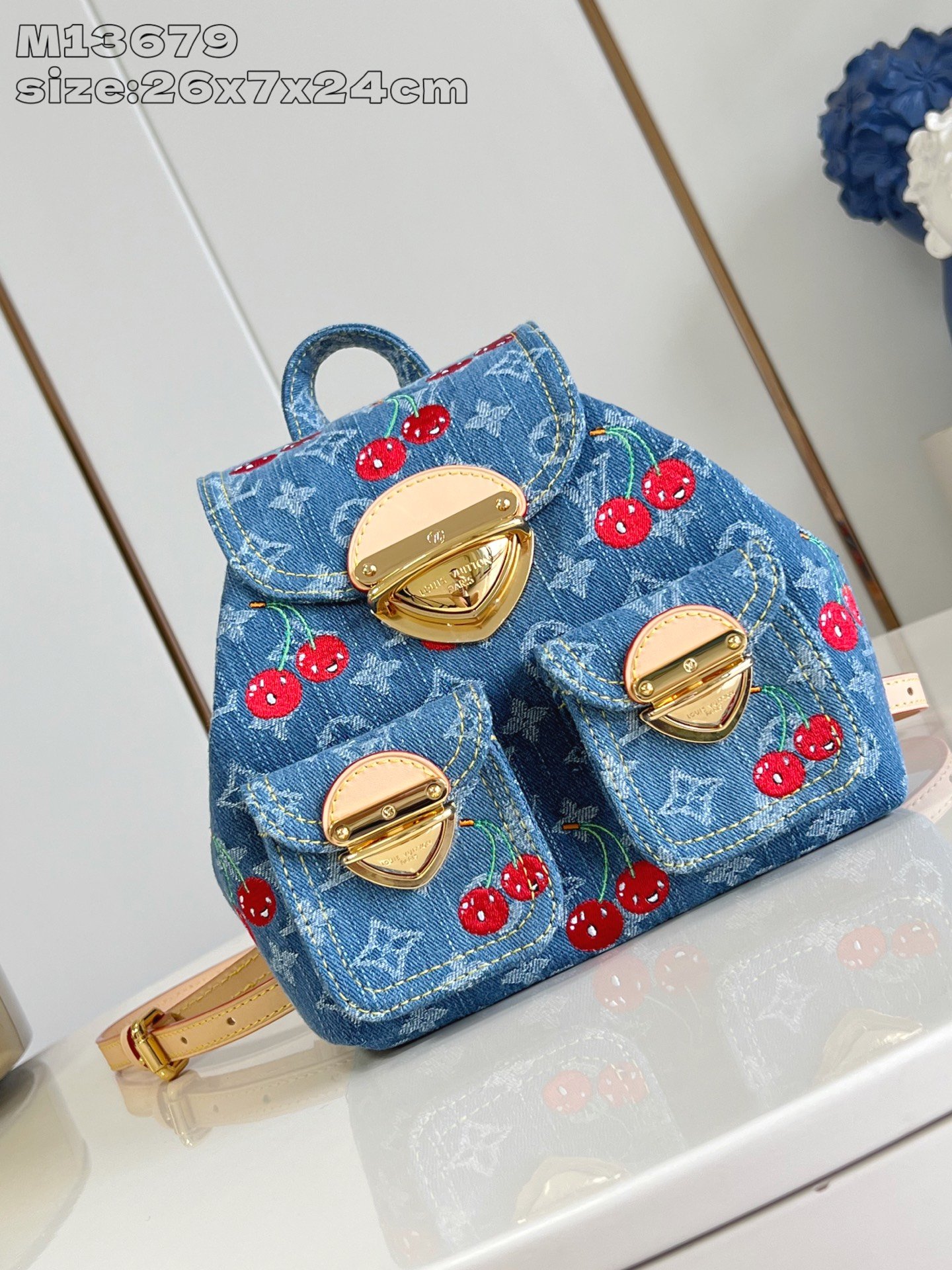 - Tejido denim con motivo Monogram Cherry
